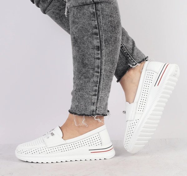 Białe skórzane mokasyny damskie sportowe półbuty Jezzi