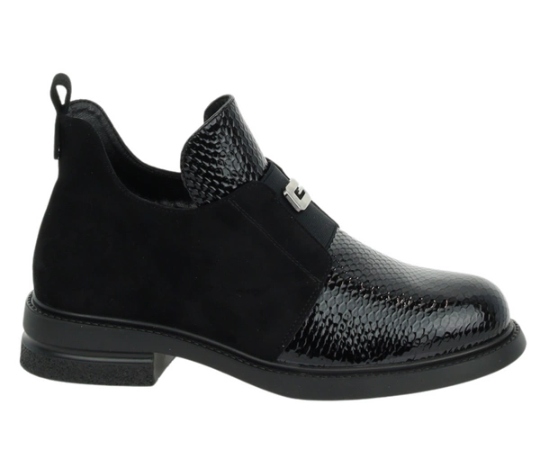 Czarne eleganckie półbuty jesienne damskie ocieplane lakierowana cholewka Jezzi