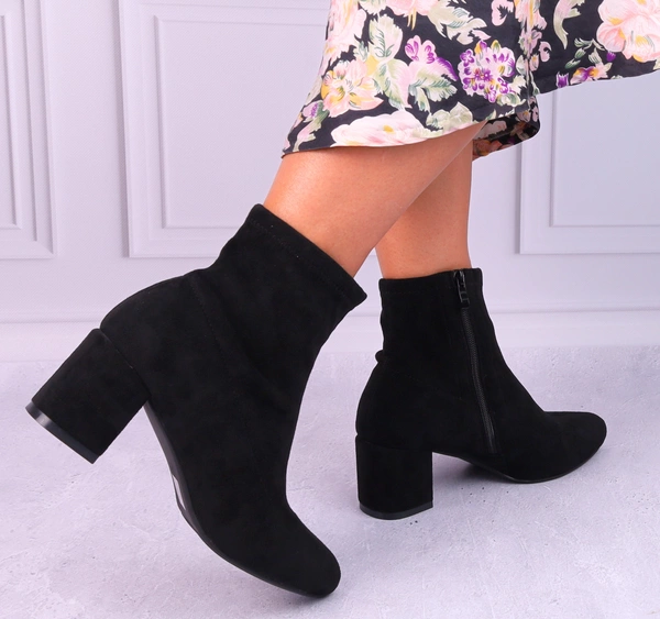 Klasyczne czarne botki damskie zamszowe na średnim obcasie Jezzi
