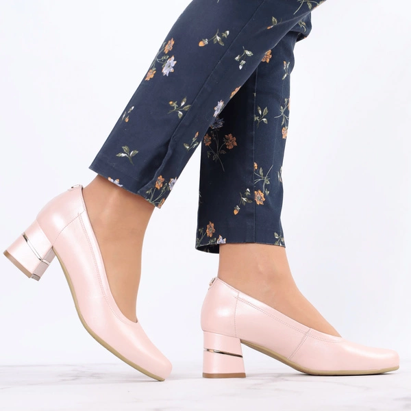 Czółenka damskie skórzane w kolorze perłowo/różowym Gino Fabiani