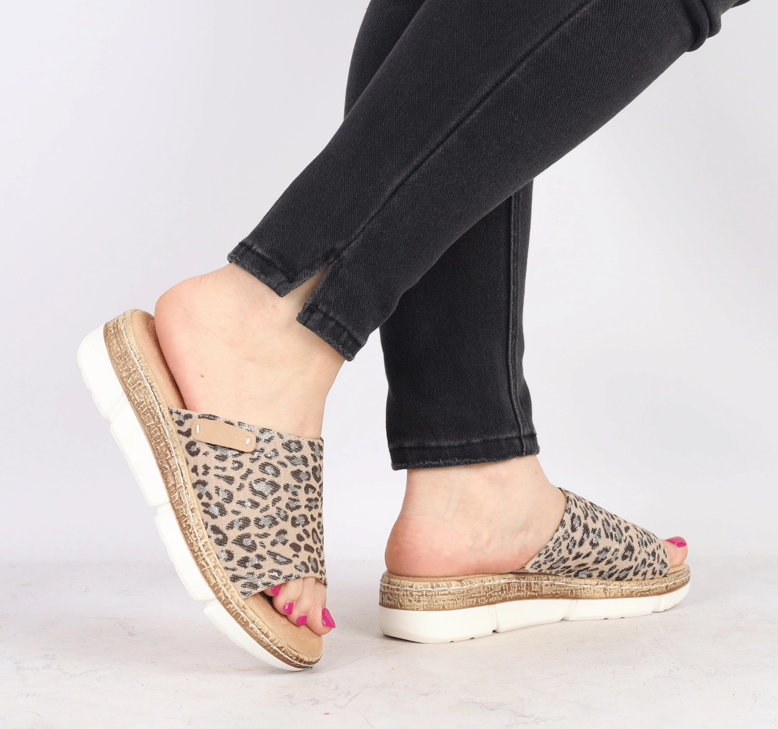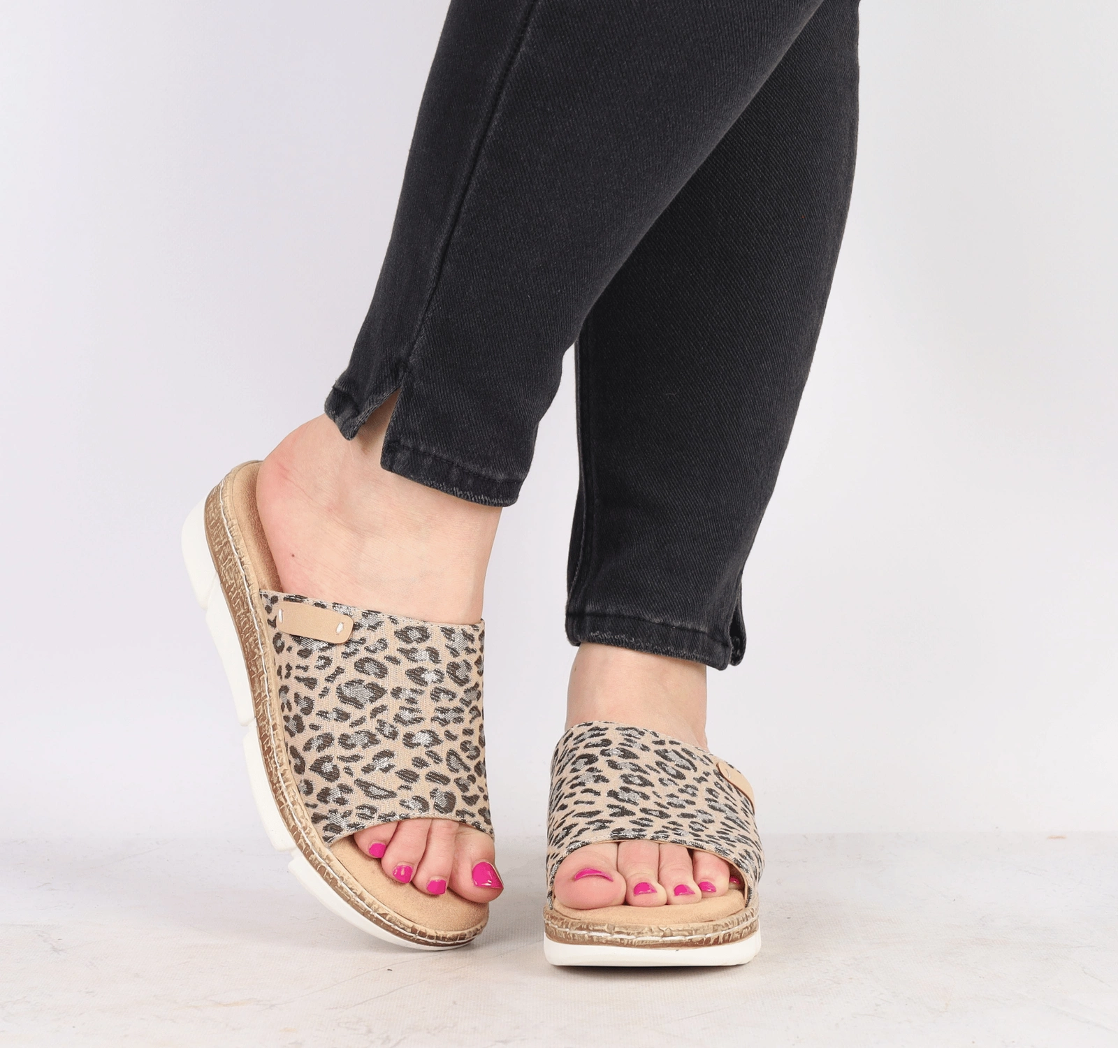 Klapki damskie w panterkę na wygodnej podeszwie Jezzi