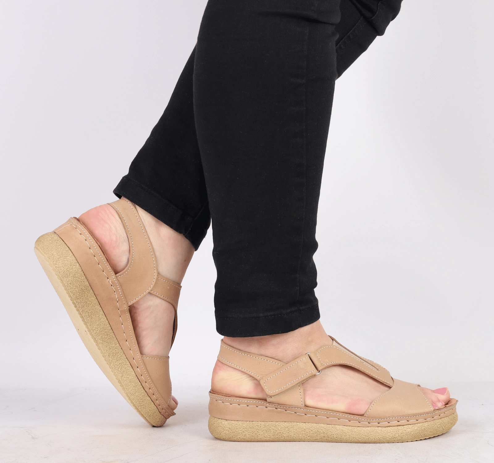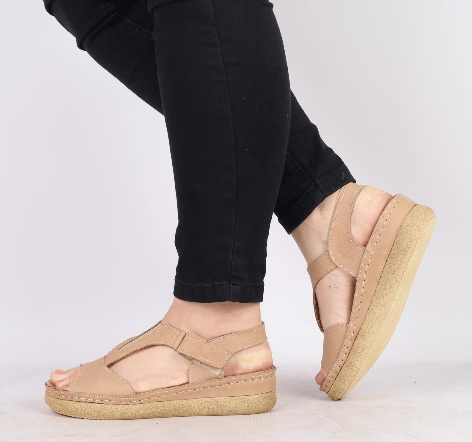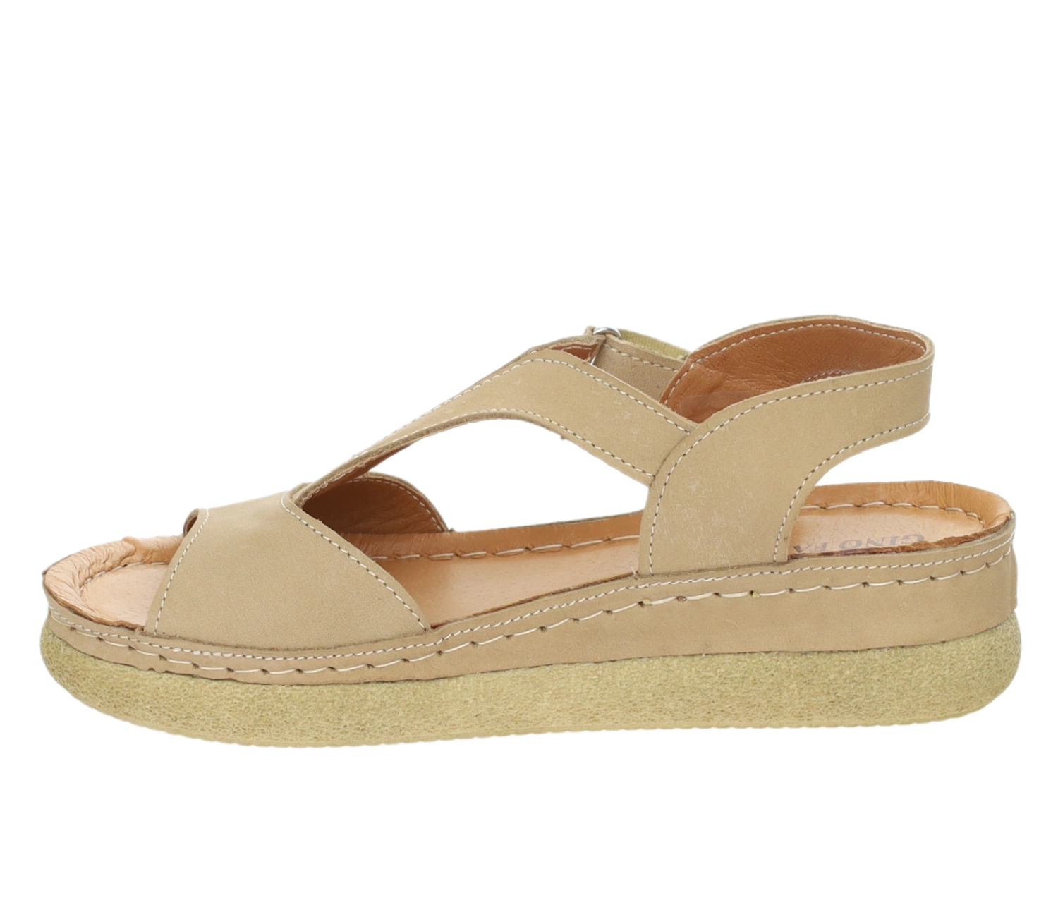 Cieliste sandały damskie skórzane na komfortowej lekkiej podeszwie Gino Fabiani