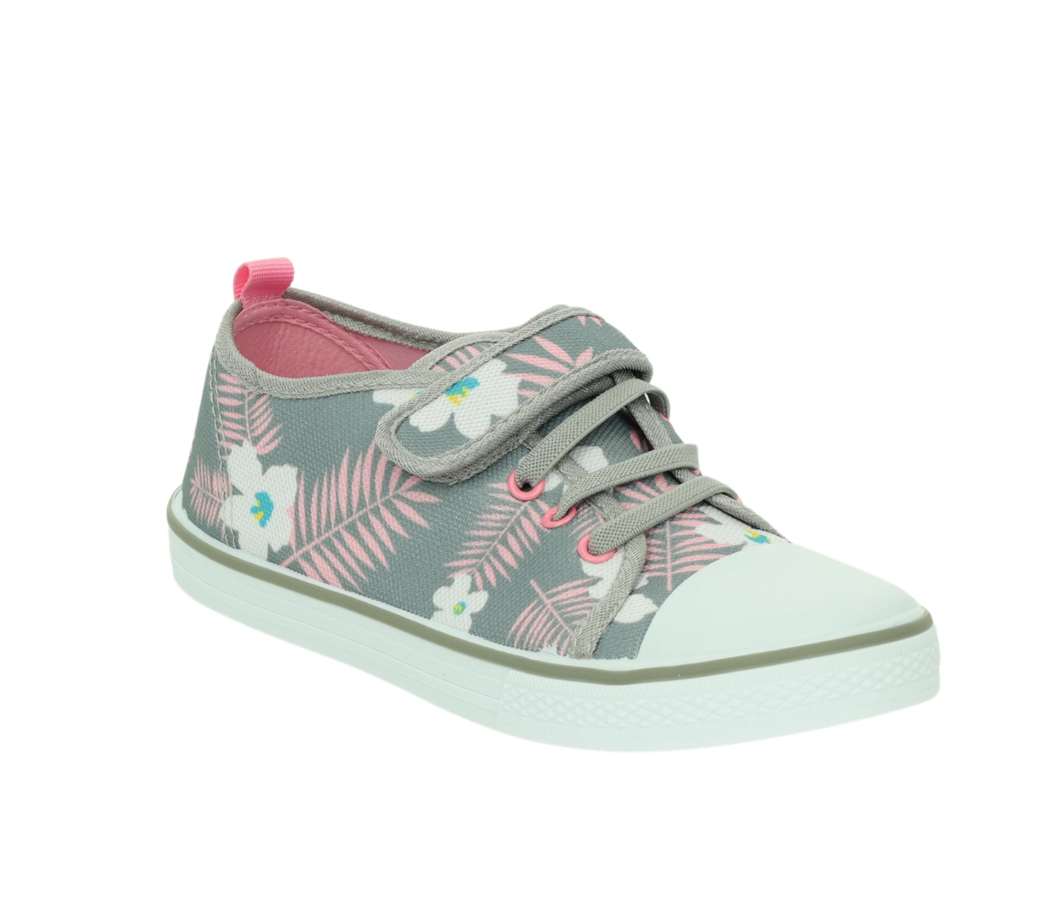 Szare trampki dziecięce dla dziewczynki do szkoły pantofle na rzepy American Club
