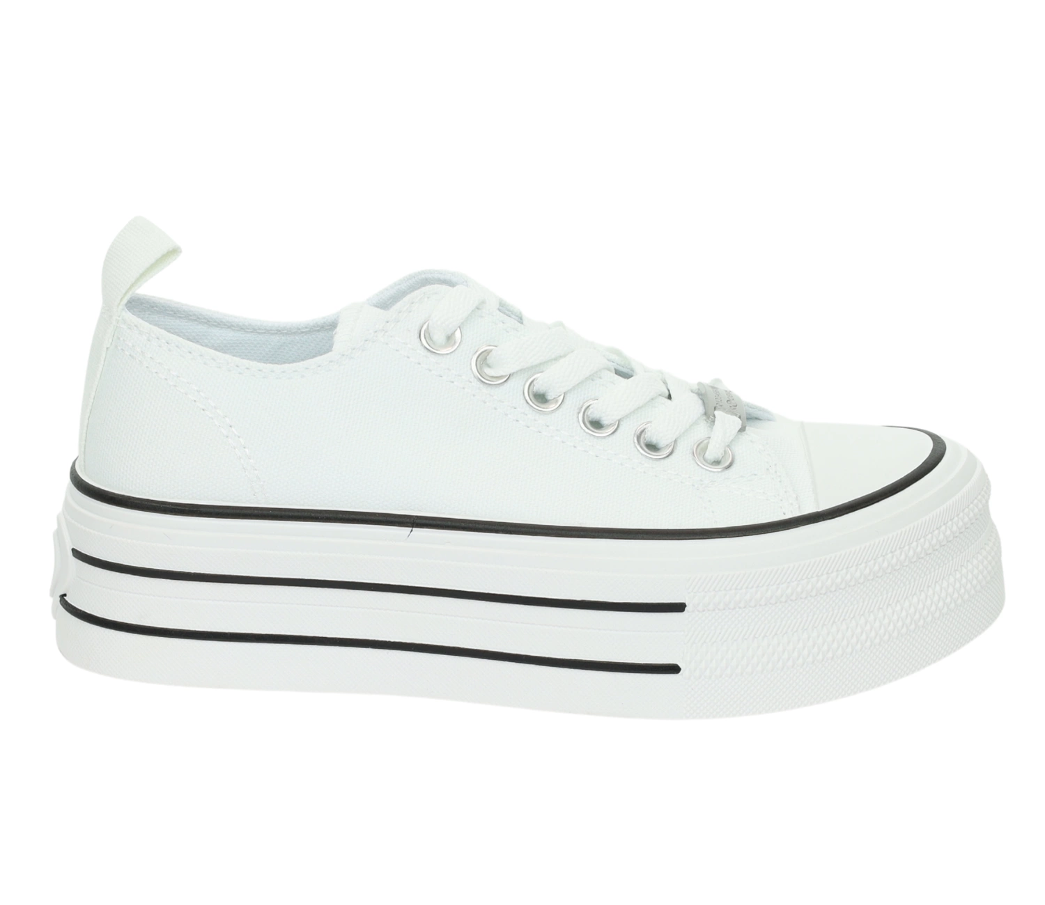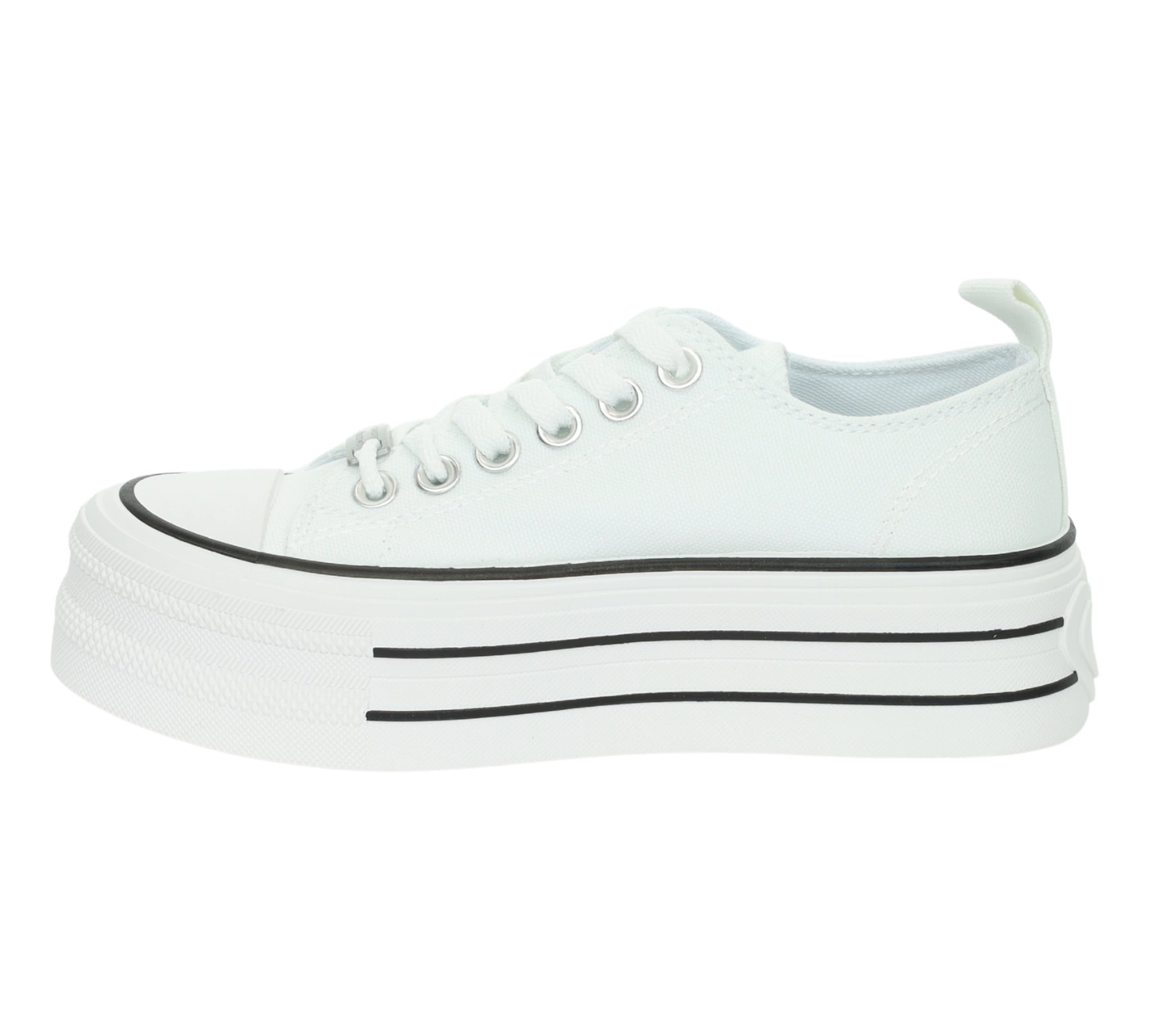 Stylowe, wygodne i zgodne z najnowszymi trendami! Te białe trampki na masywnej podeszwie to must-have w każdej kobiecej szafie. Gruba podeszwa nie tylko dodaje centymetrów, ale również zapewnia świetną amortyzację i modny, miejski look.