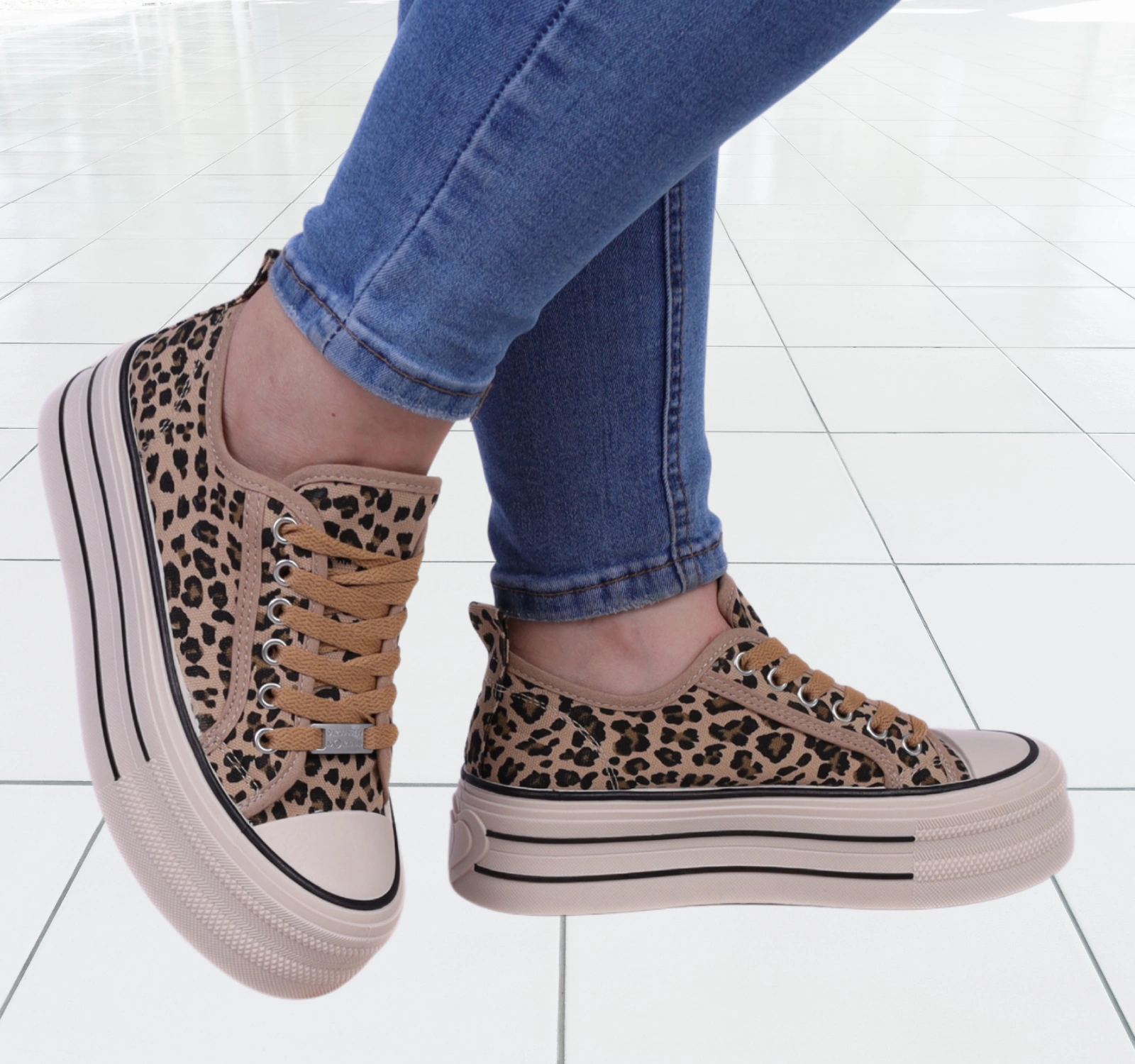 Modne trampki leopard damskie na grubej podeszwie. Adidasy damskie typu trampki na platformie.