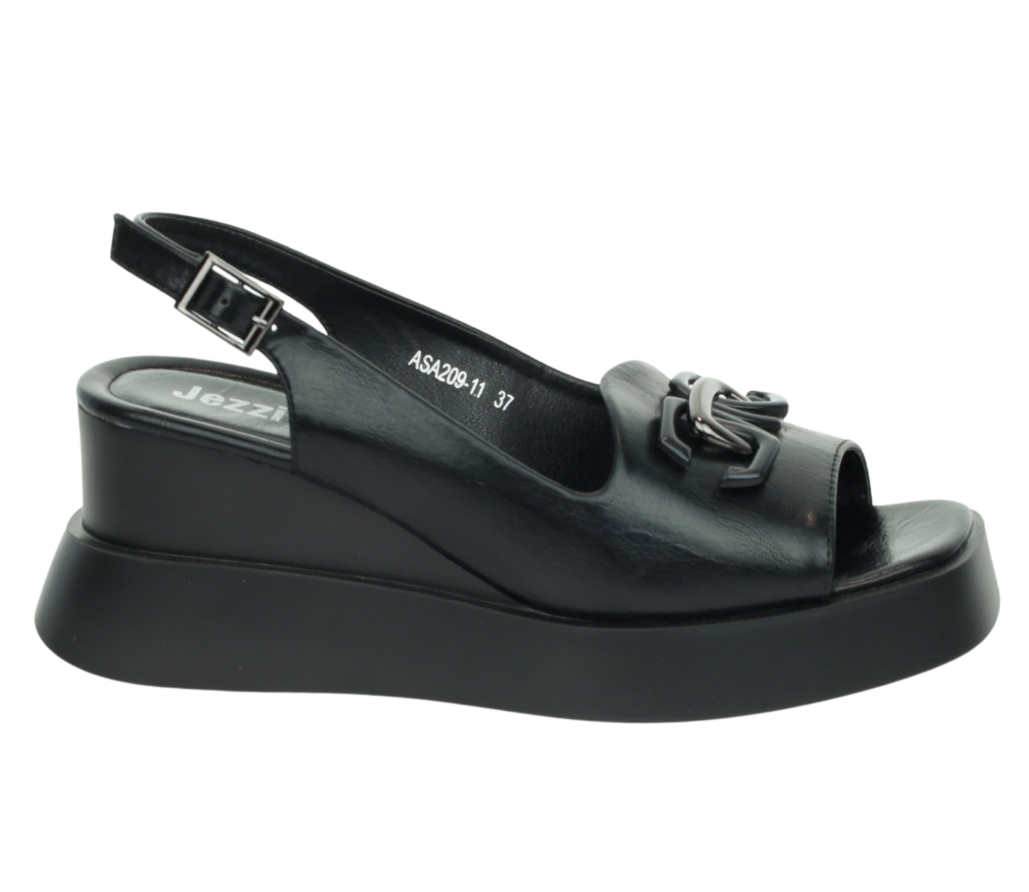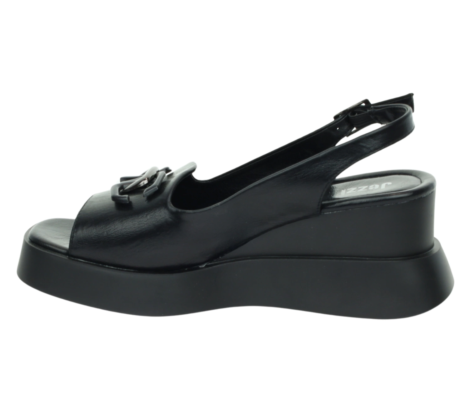 Czarne sandały na koturnie i platformie wygodne i eleganckie Jezzi