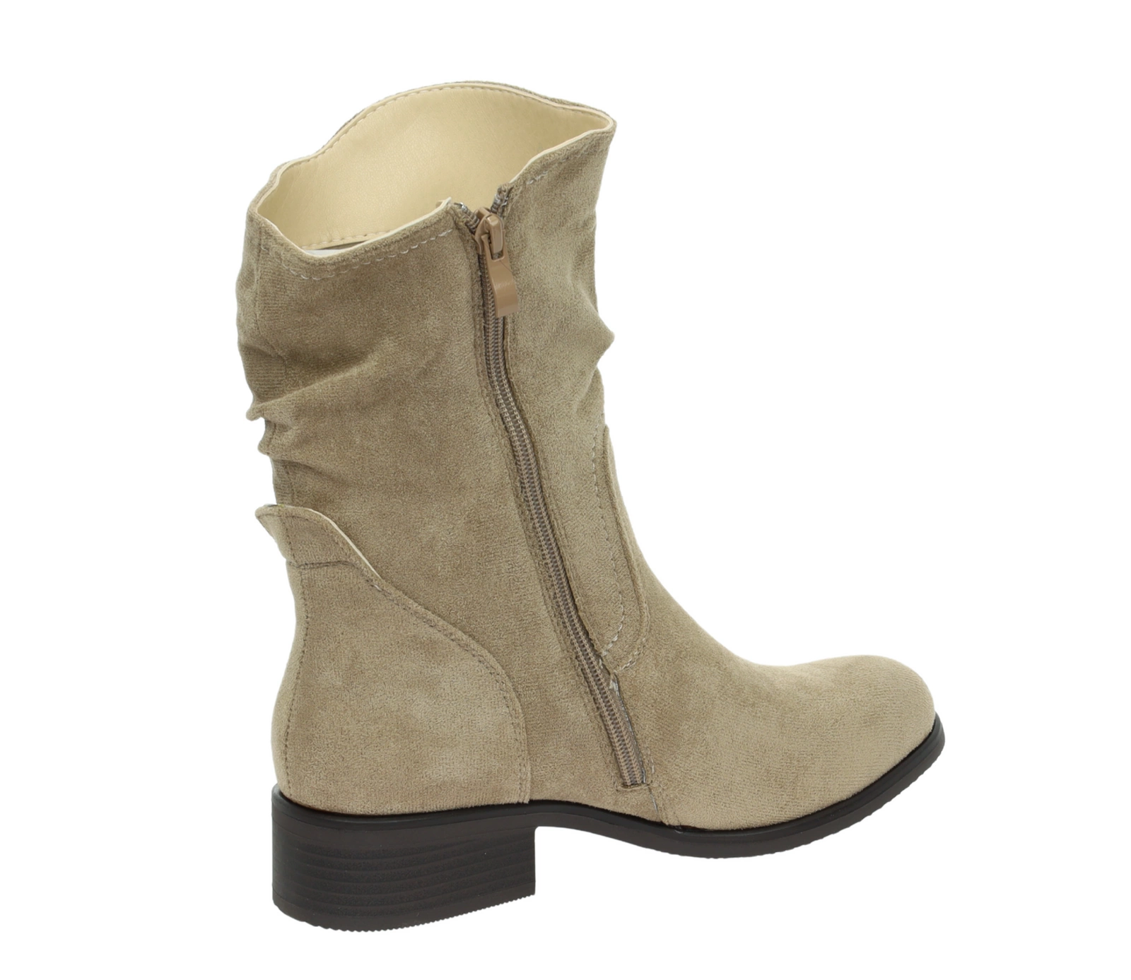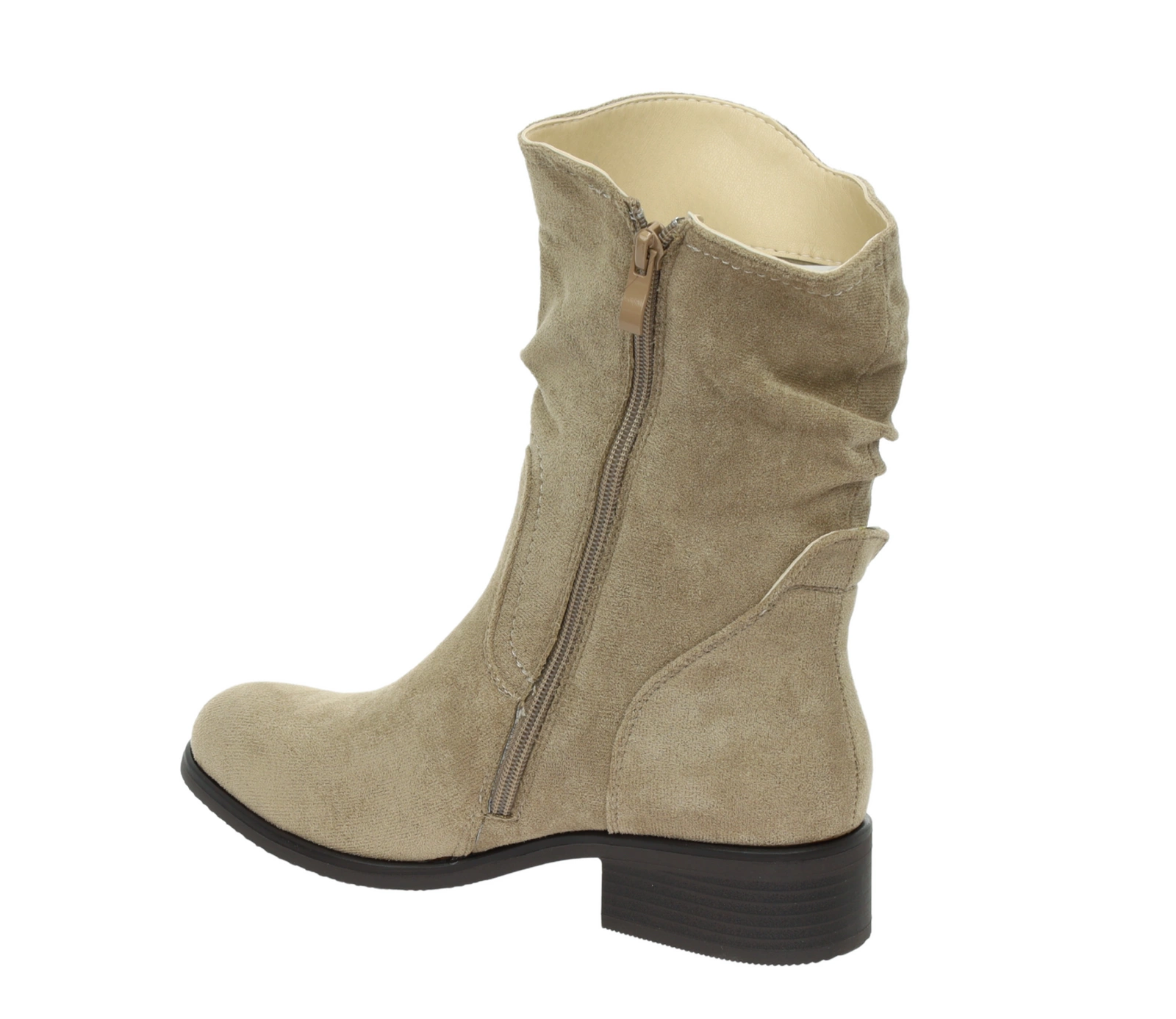 Beżowe botki Florina to kwintesencja elegancji i wygody – wykonane z zamszowej skóry charakteryzujące się miękką cholewką sięgającą do połowy łydki. Płaska podeszwa zapewnia komfort nawet podczas dłuższego chodzenia. Zapinane na zamek ułatwiają zakładanie, a dopasowany fason subtelnie modeluje łydkę. Ponadczasowy brązowy ton świetnie komponuje się zarówno z casualowymi, jak i bardziej eleganckimi stylizacjami — idealne buty na sezon przejściowy
