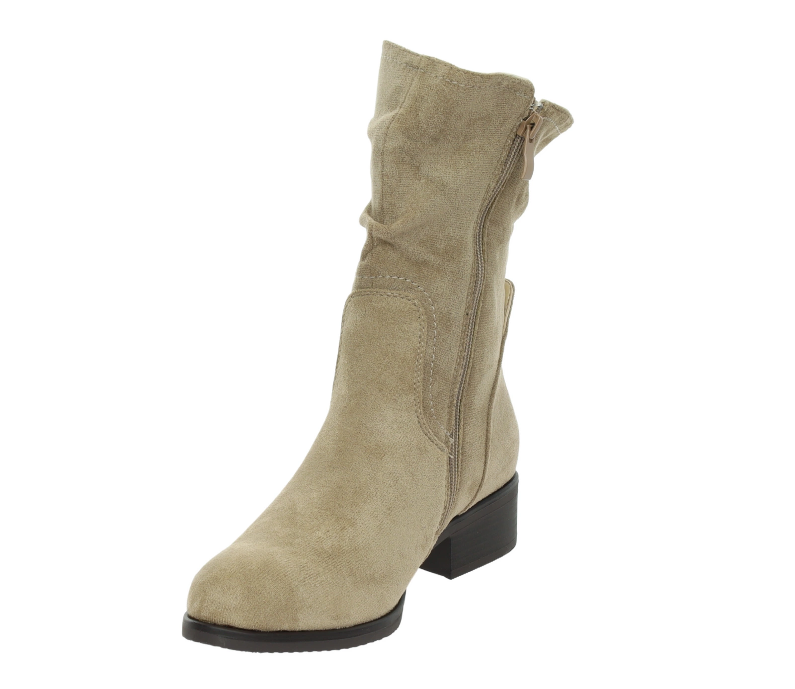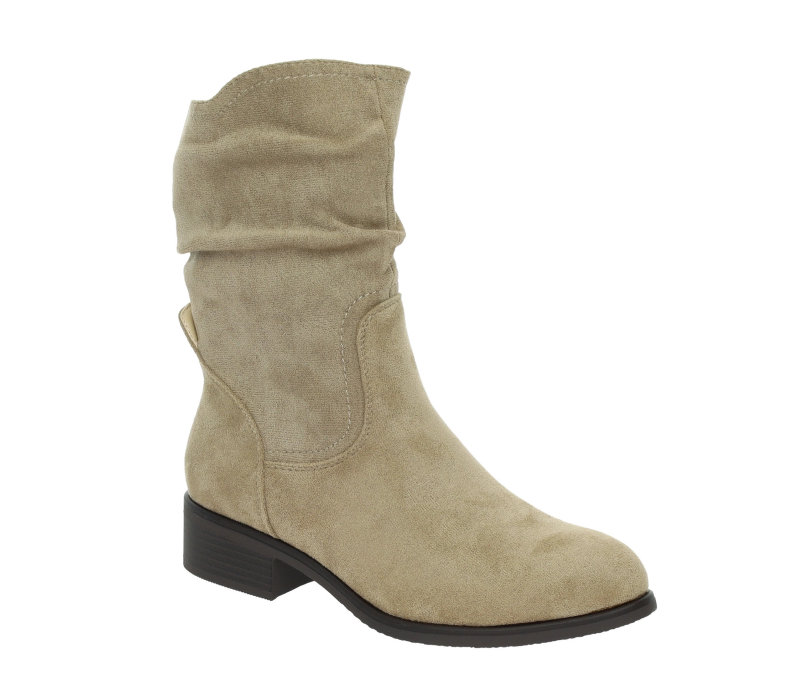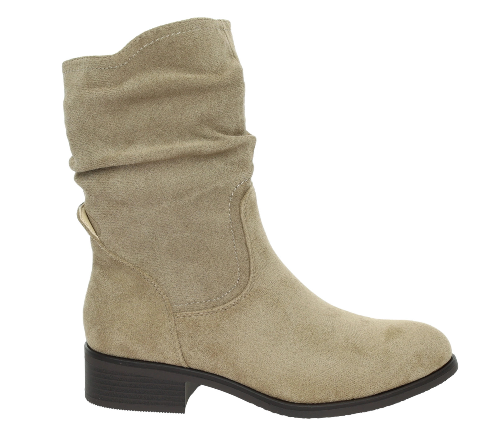 Beżowe zamszowe botki płaskie do połowy łydki Florina