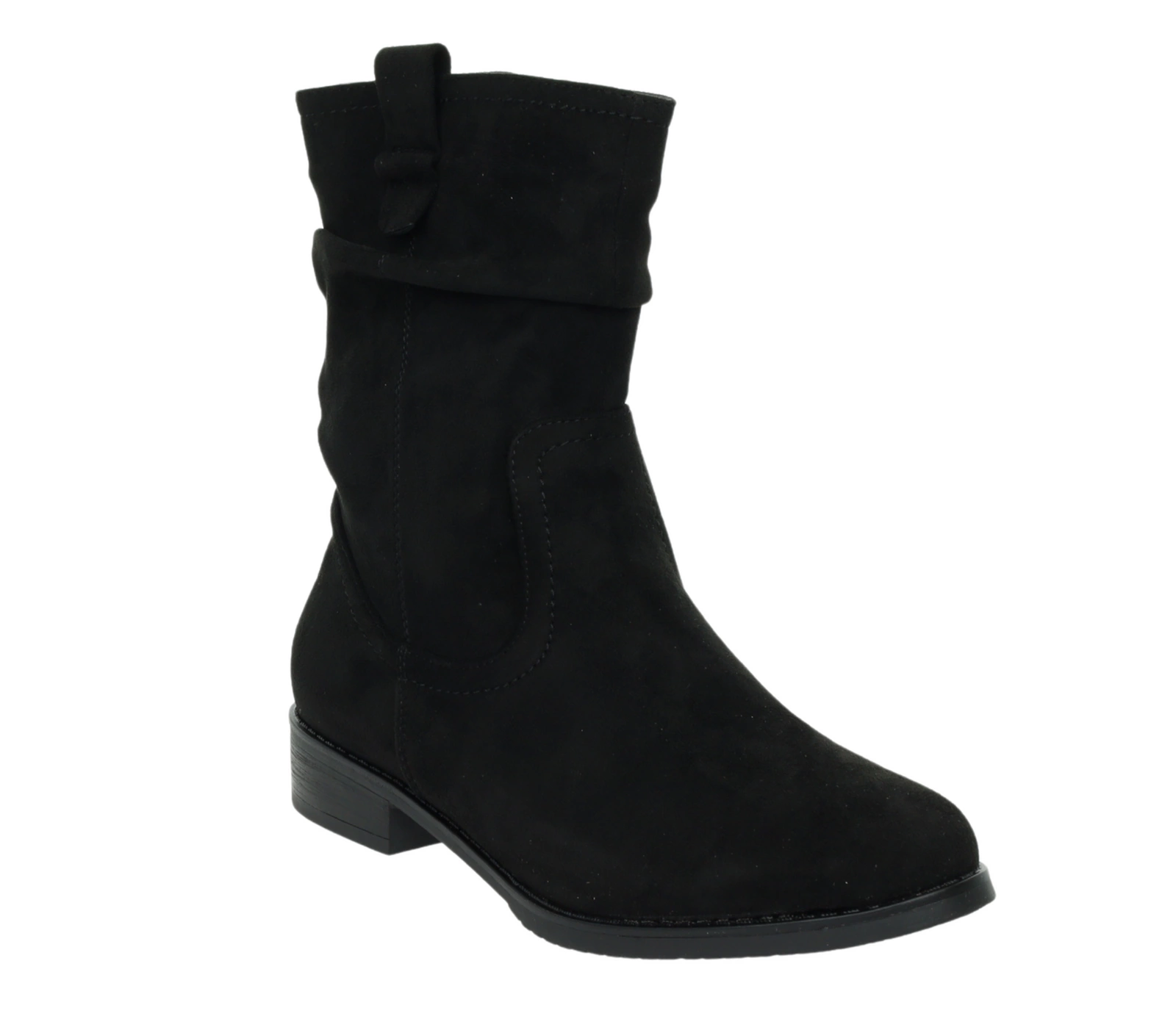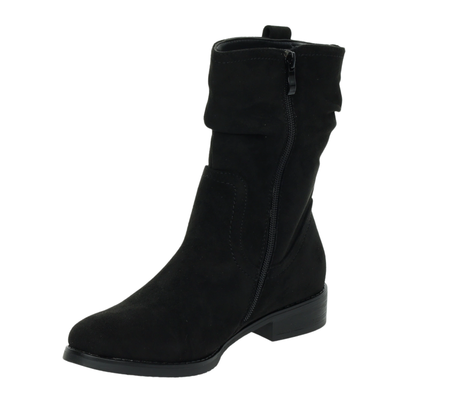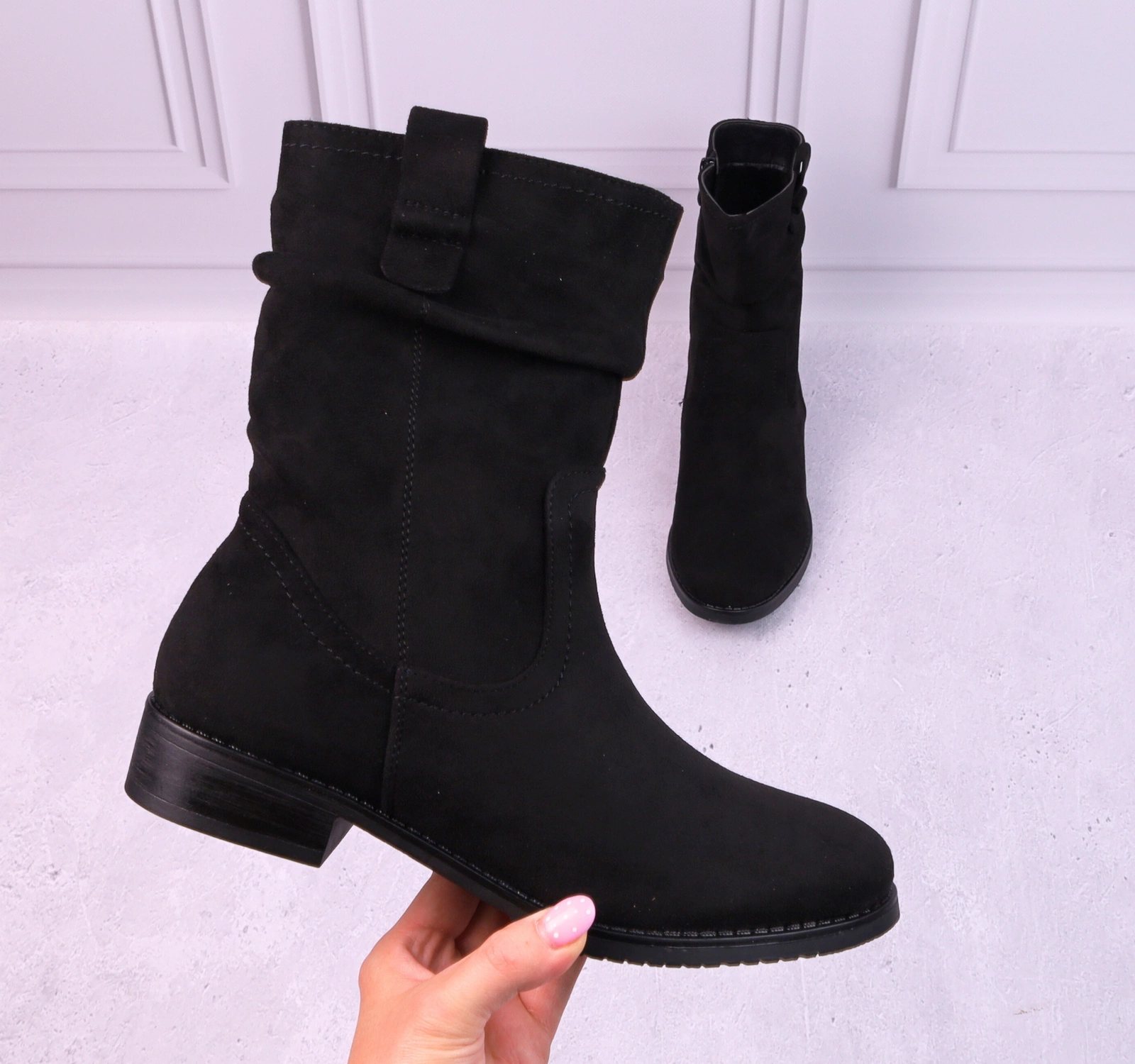 Czarne zamszowe buty zimowe do połowy łydki na płaskim obcasie Diana