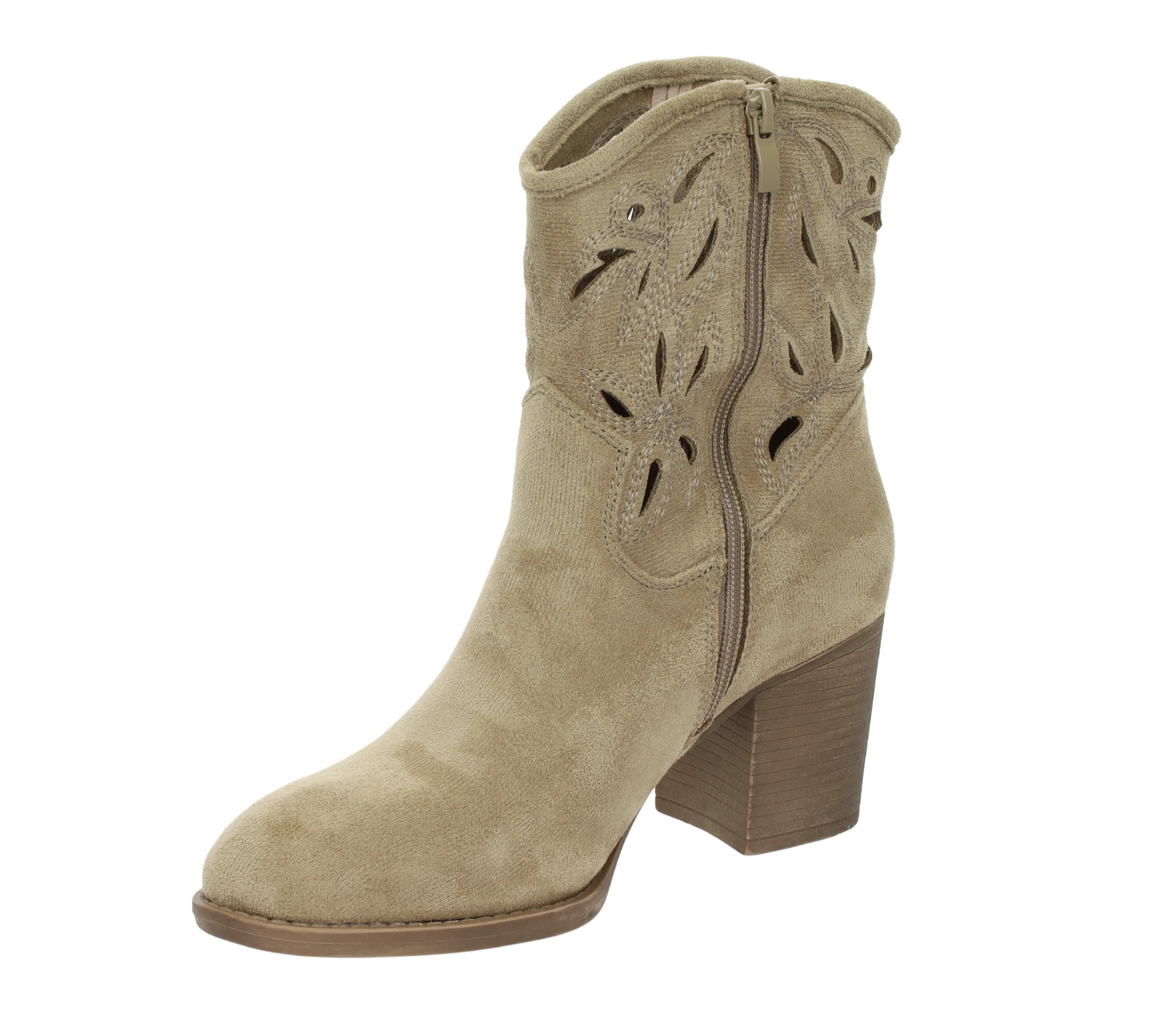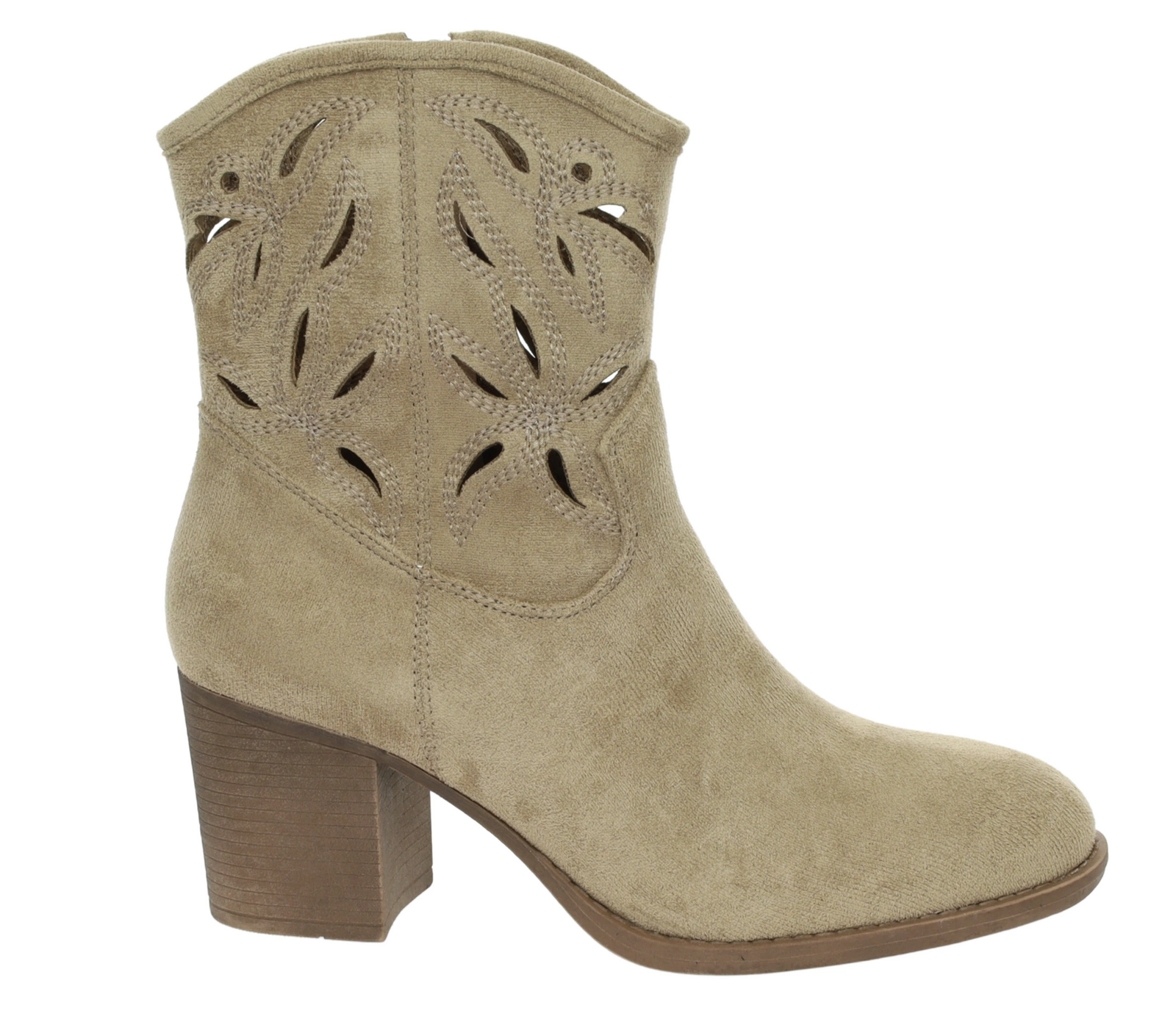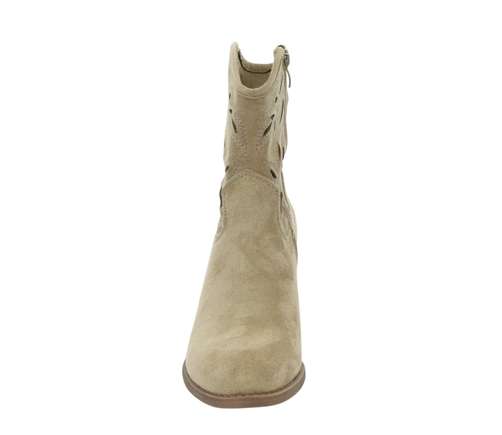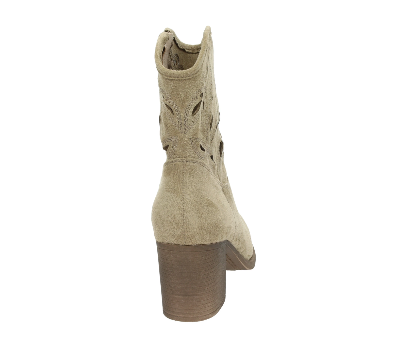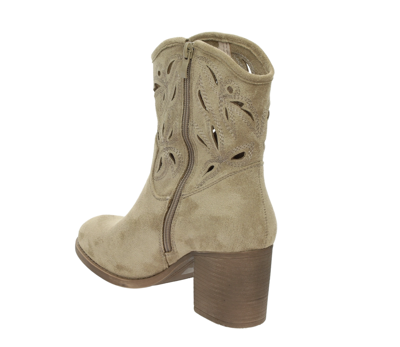 Beżowe zamszowe botki na średnim obcasie typu kowbojki Tatiana