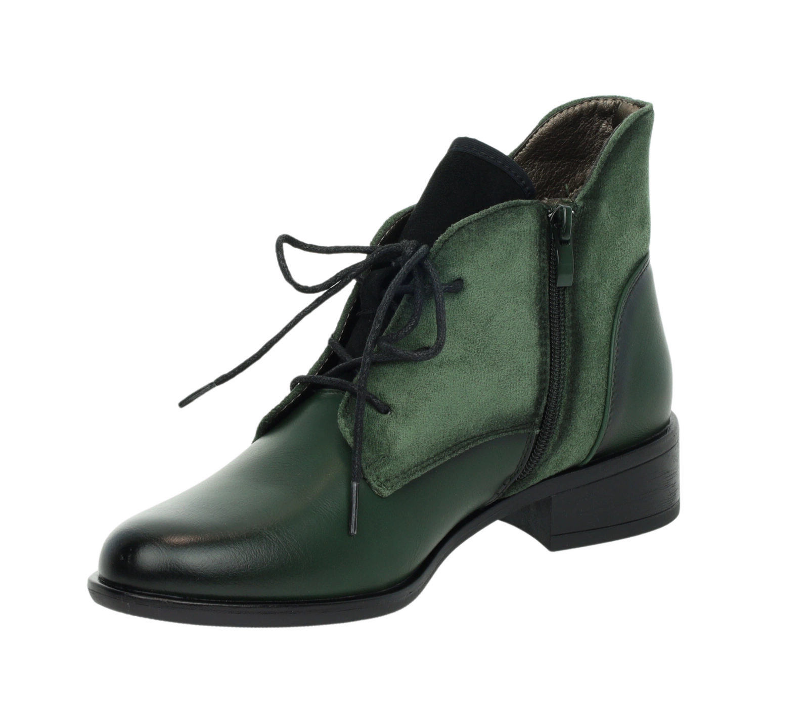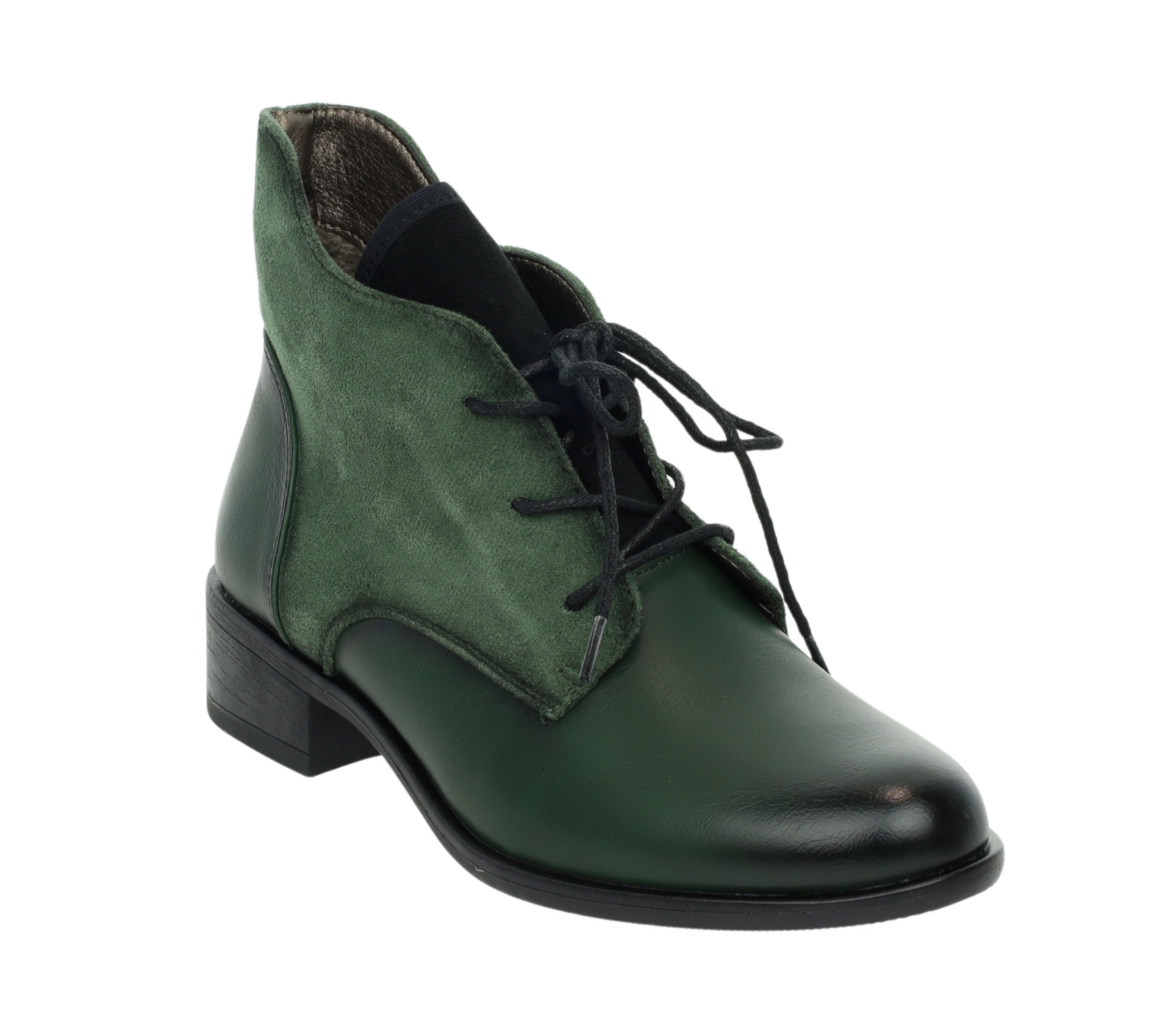 Ciemnozielone półbuty damskie jesienne za kostkę garniturowe Kazadi