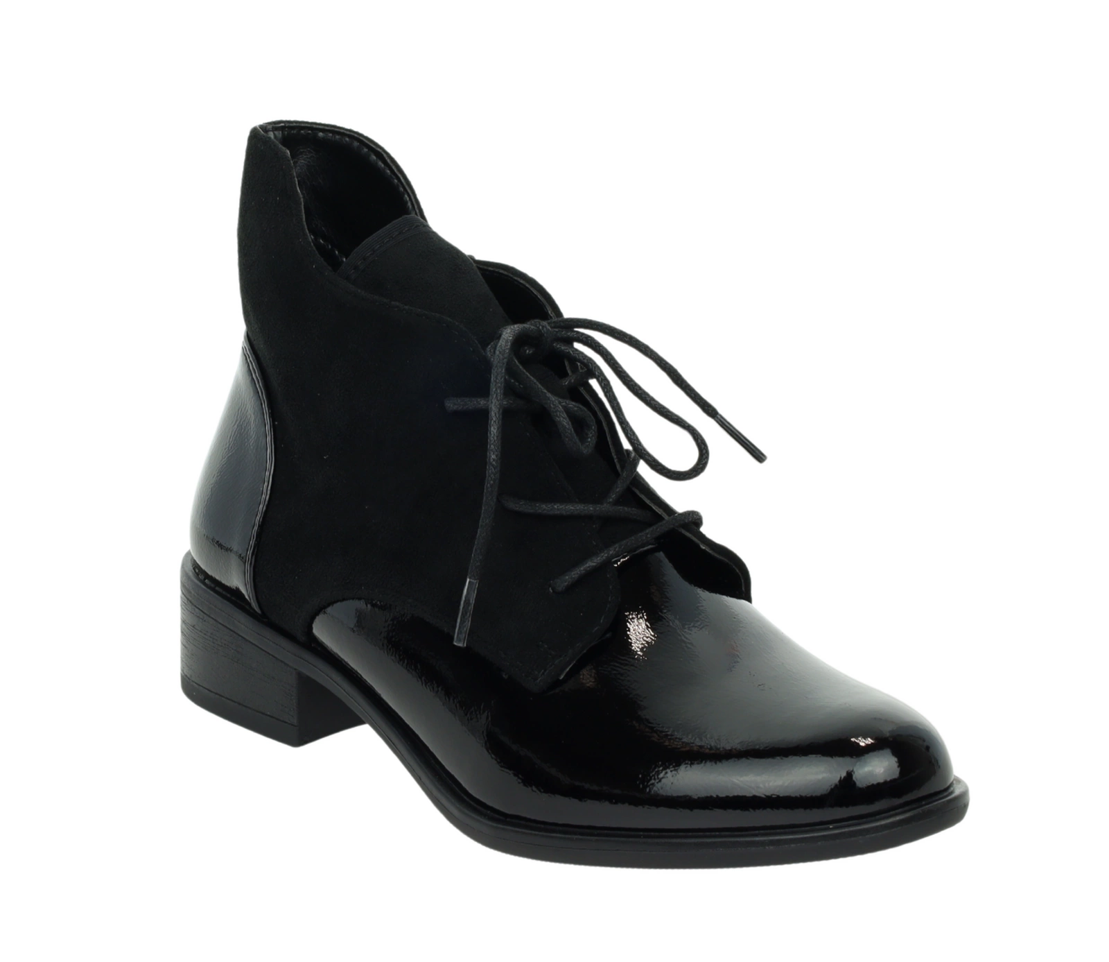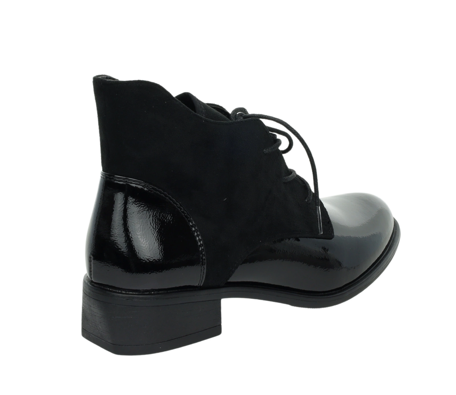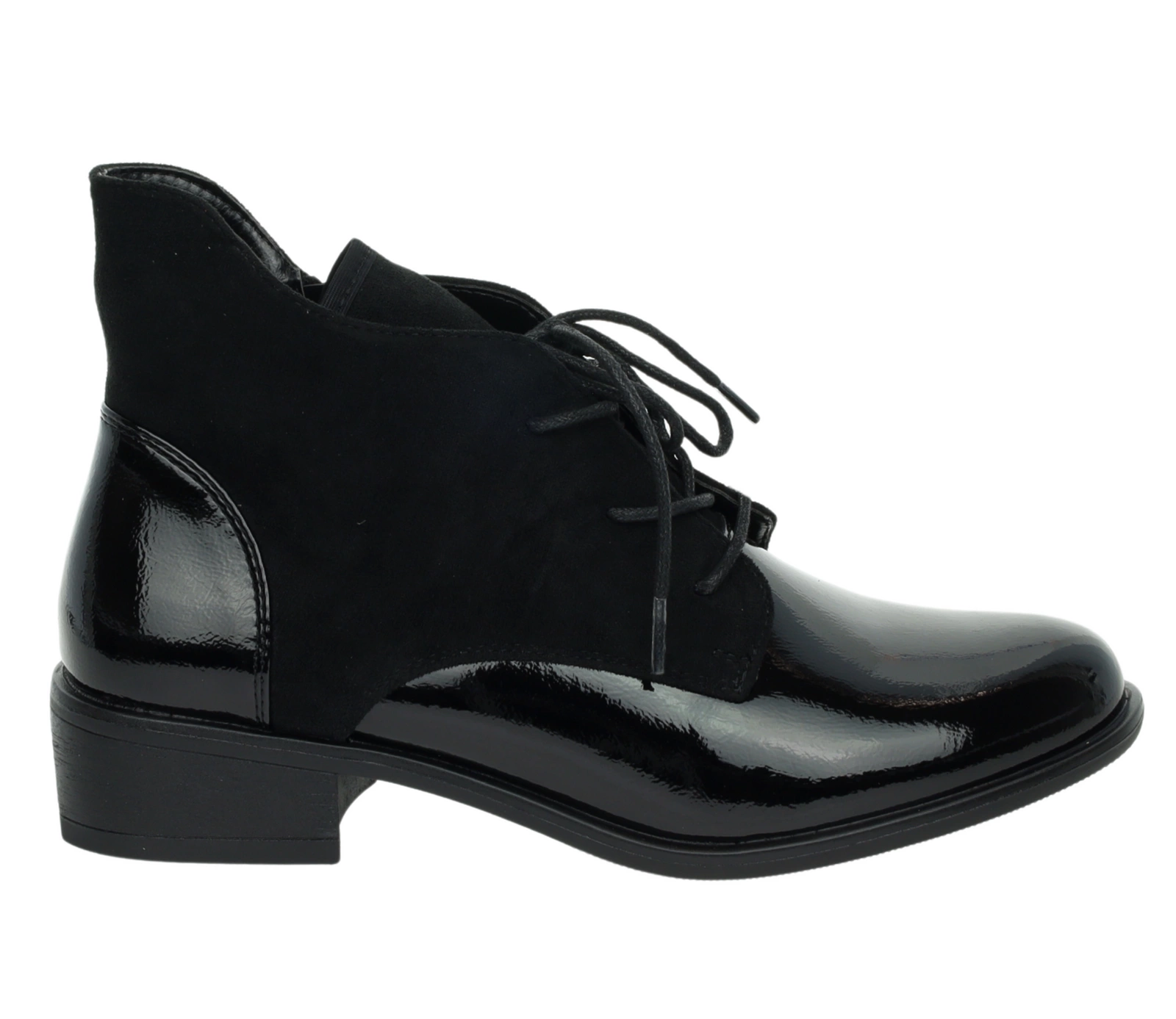 Czarne półbuty jesienne lakierowane botki płaskie Lekko ocieplane Kazadi