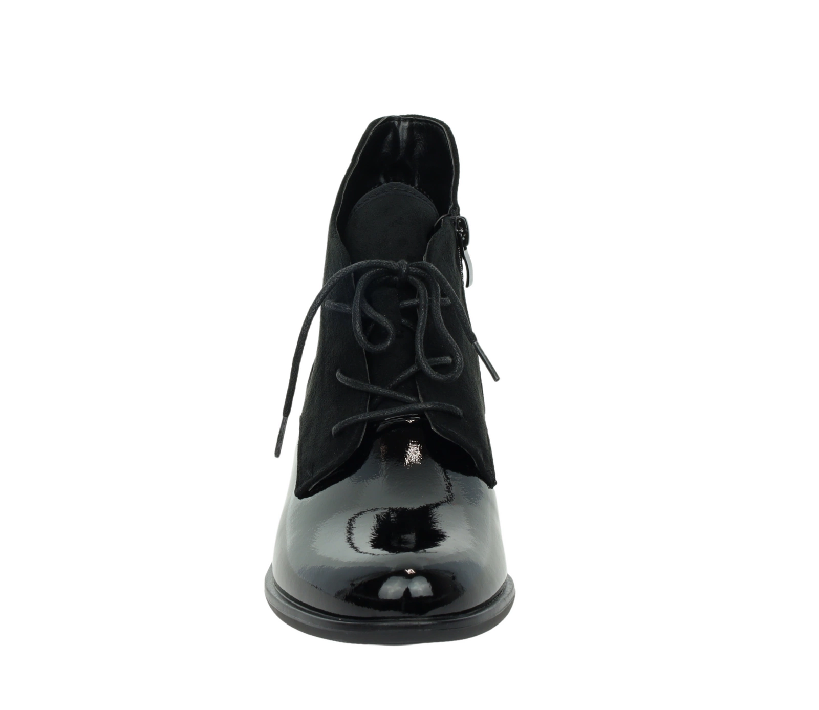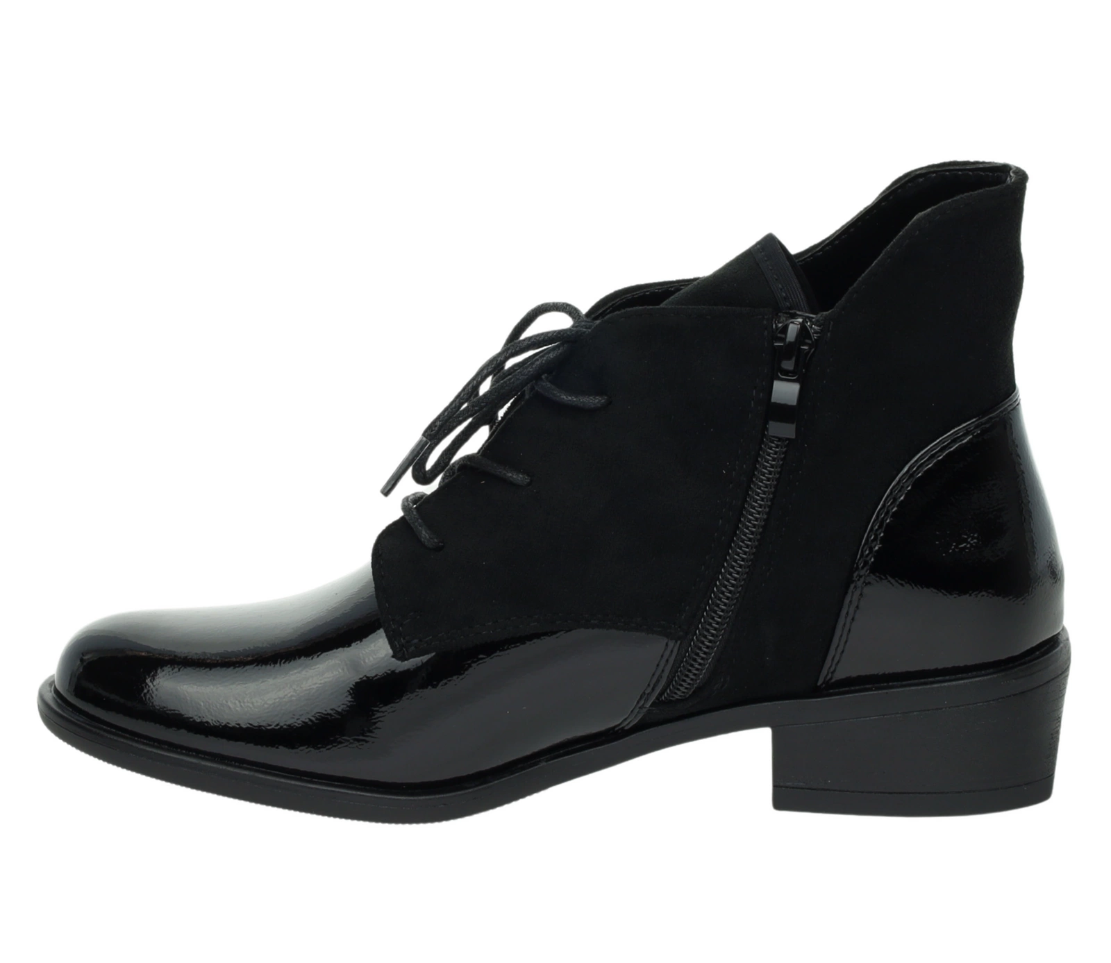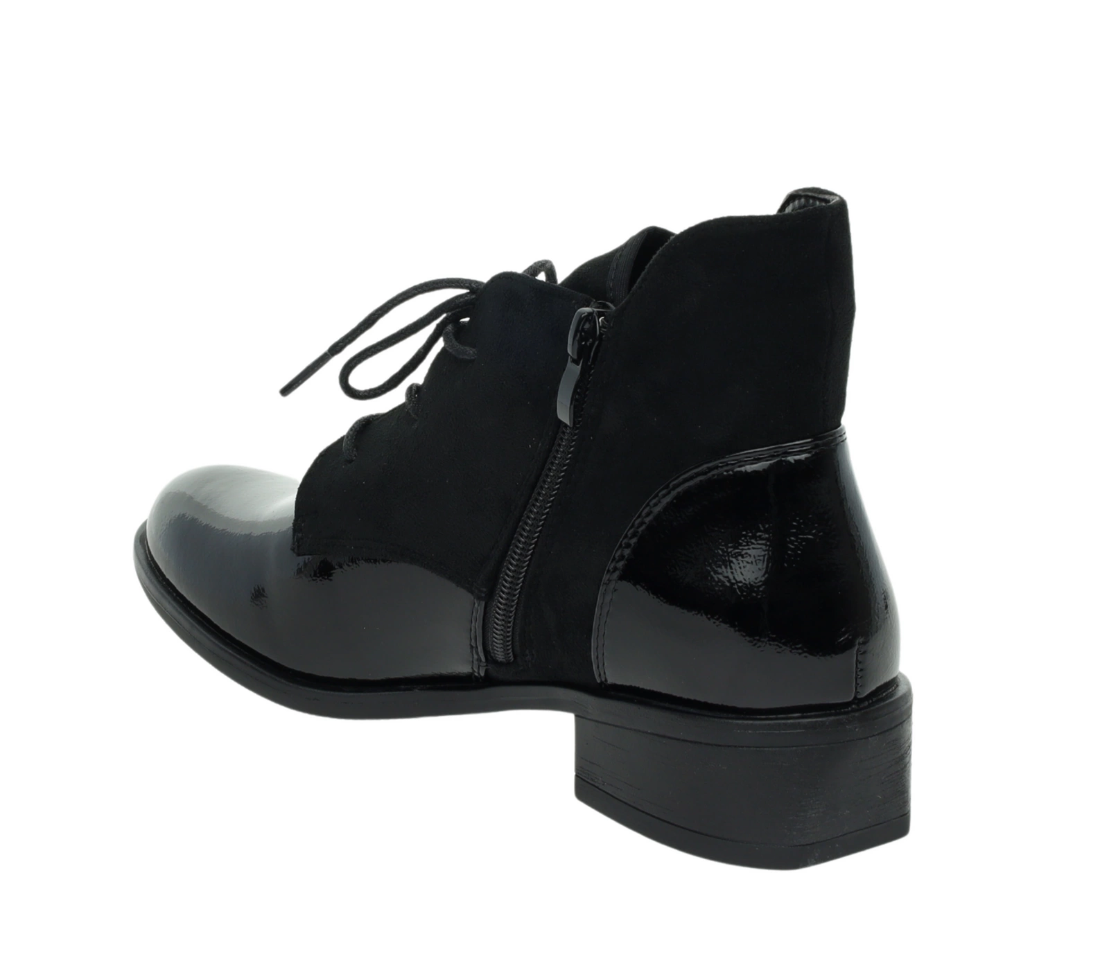 Czarne półbuty jesienne lakierowane botki płaskie Lekko ocieplane Kazadi