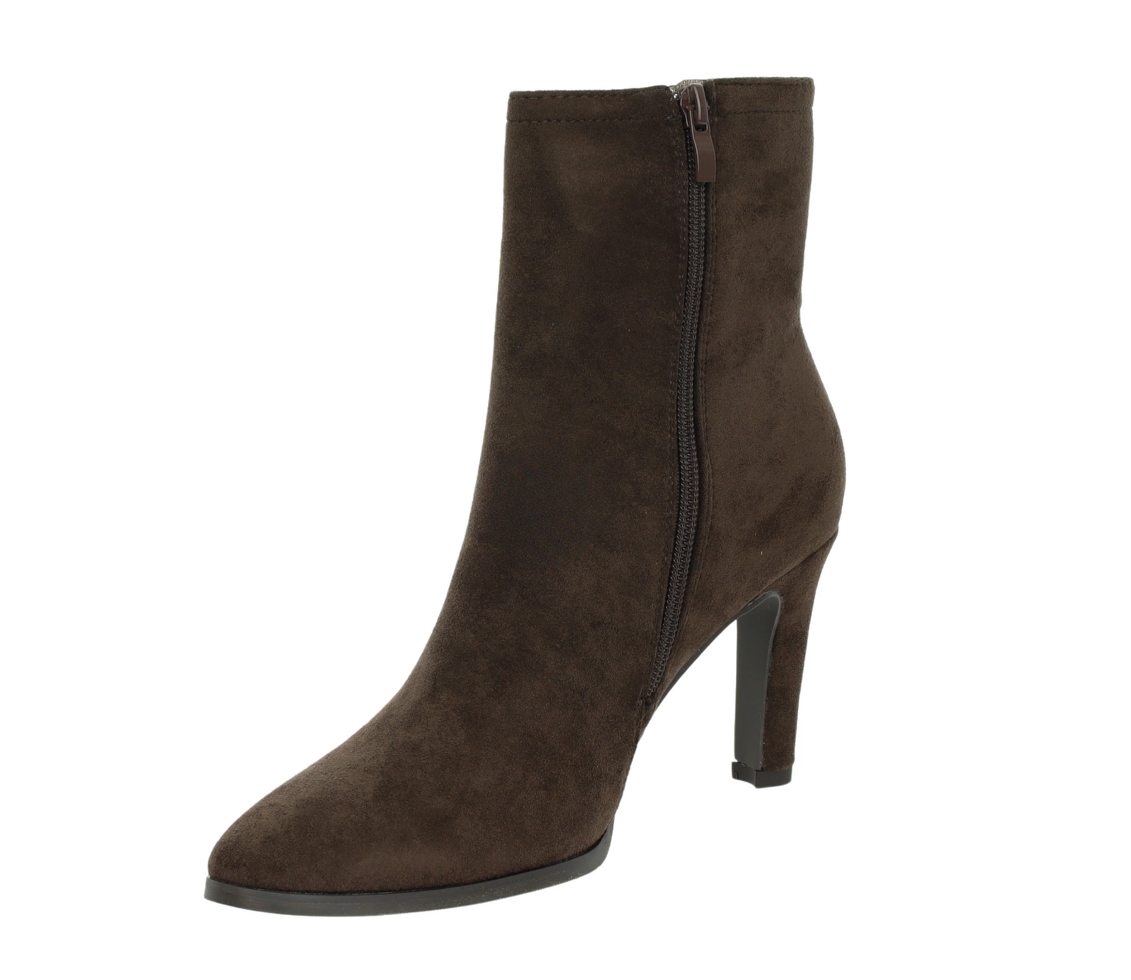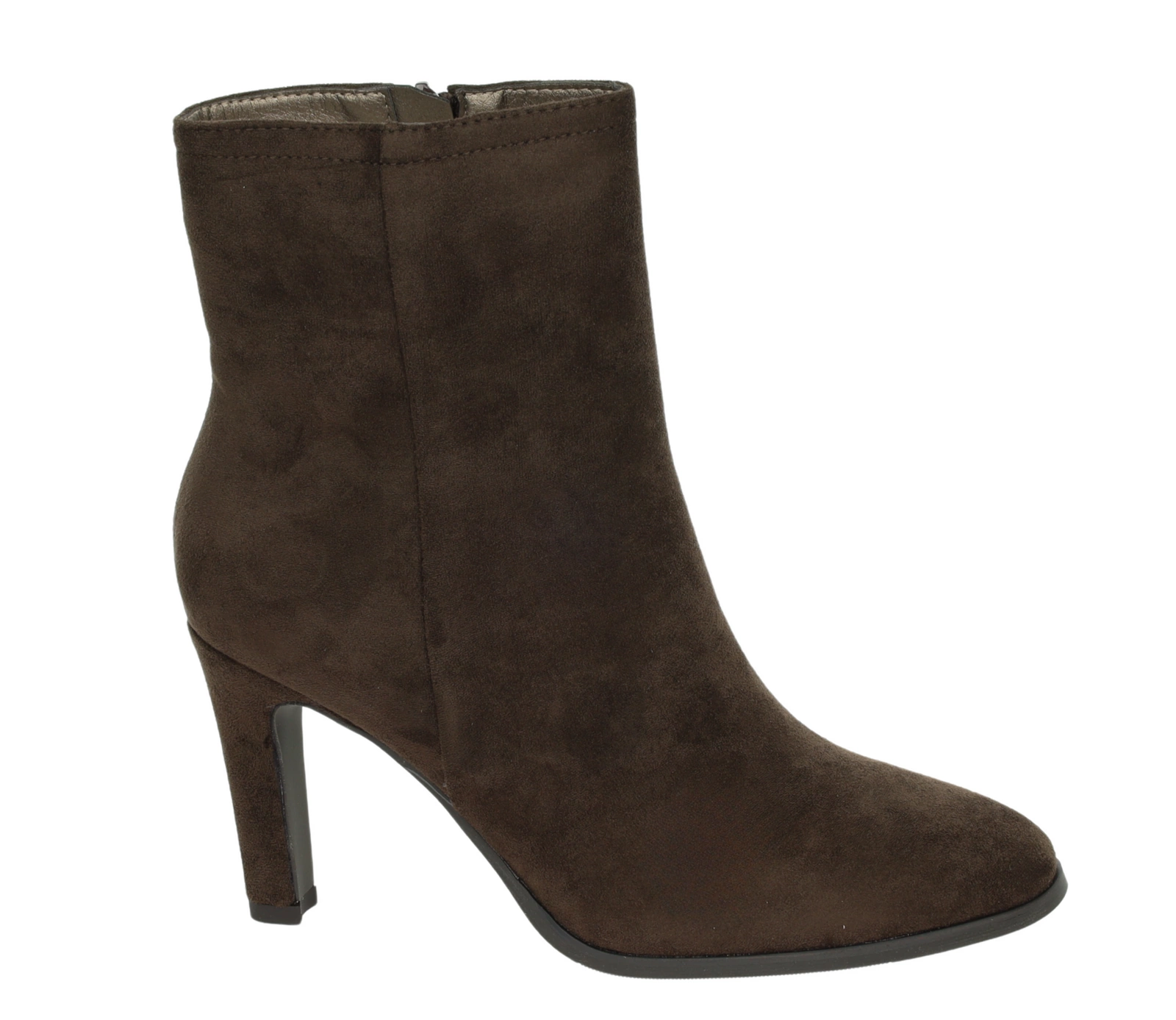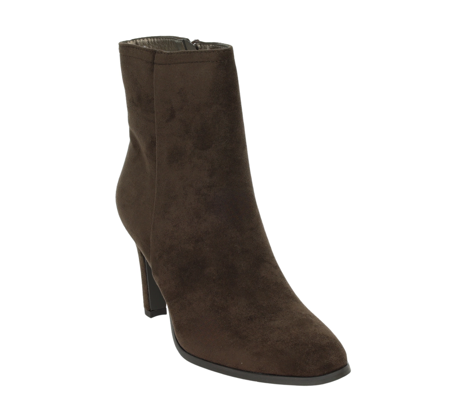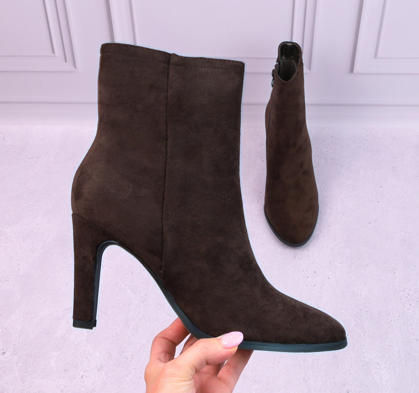 Czekoladowe zamszowe botki na wysokim obcasie eleganckie Klara