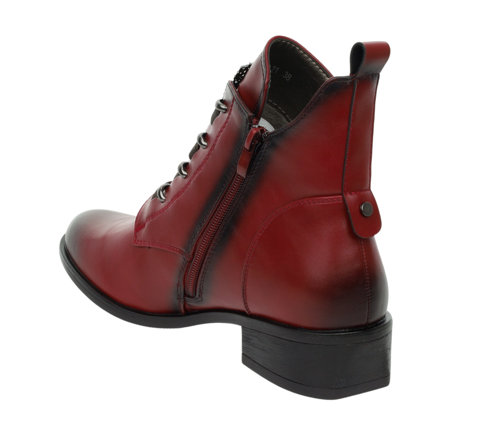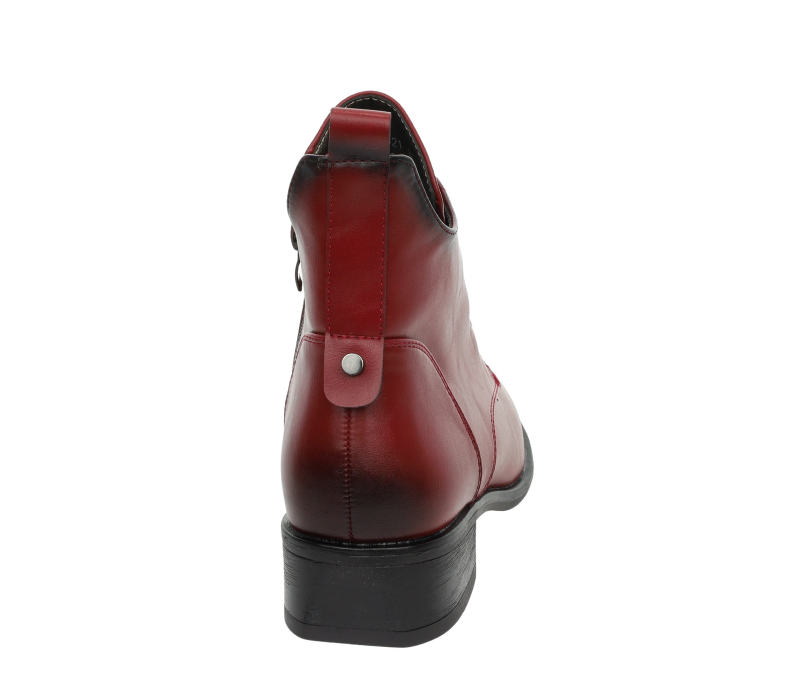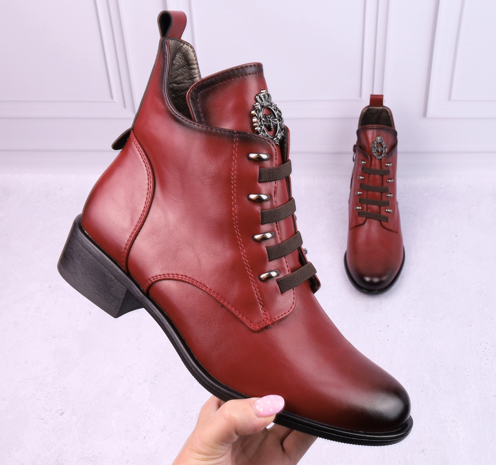 Czerwone botki damskie jesienno-zimowe eleganckie na płaskim obcasie Jezzi