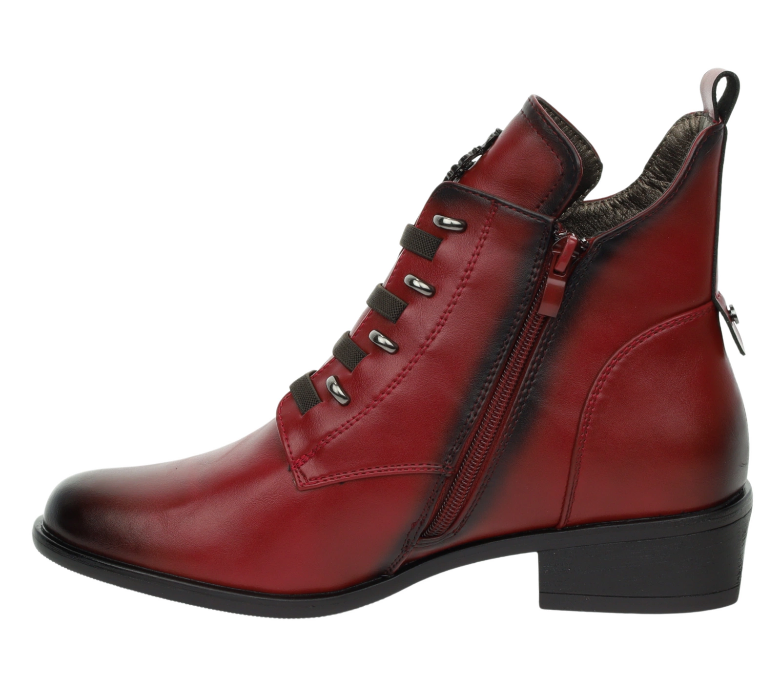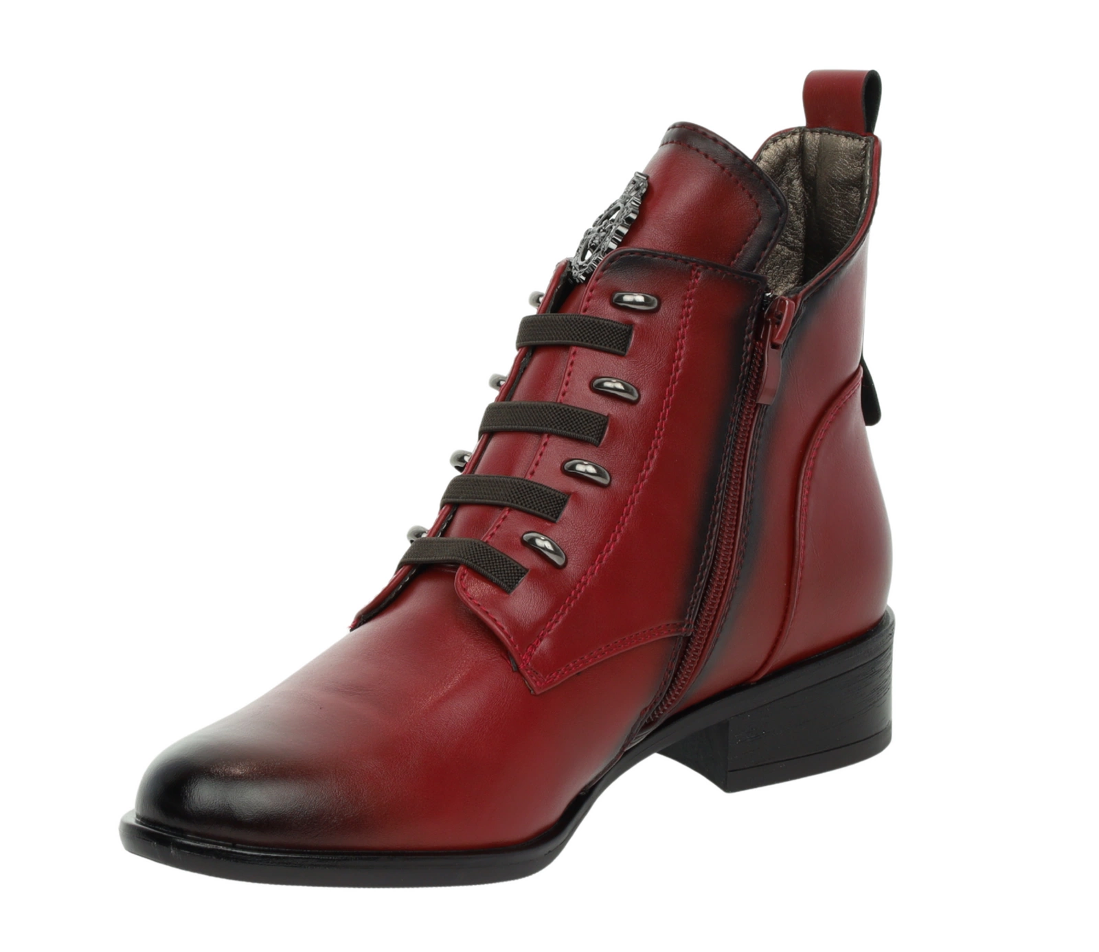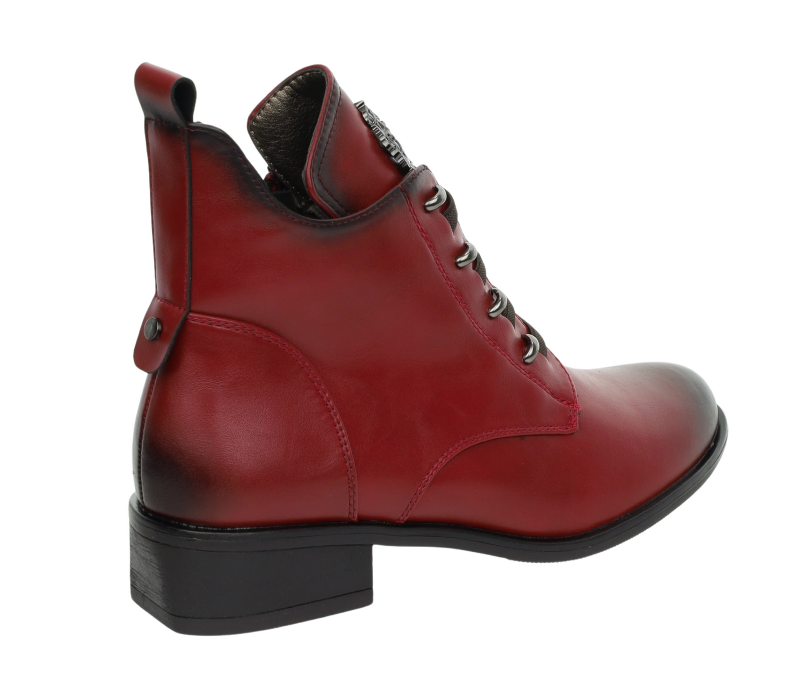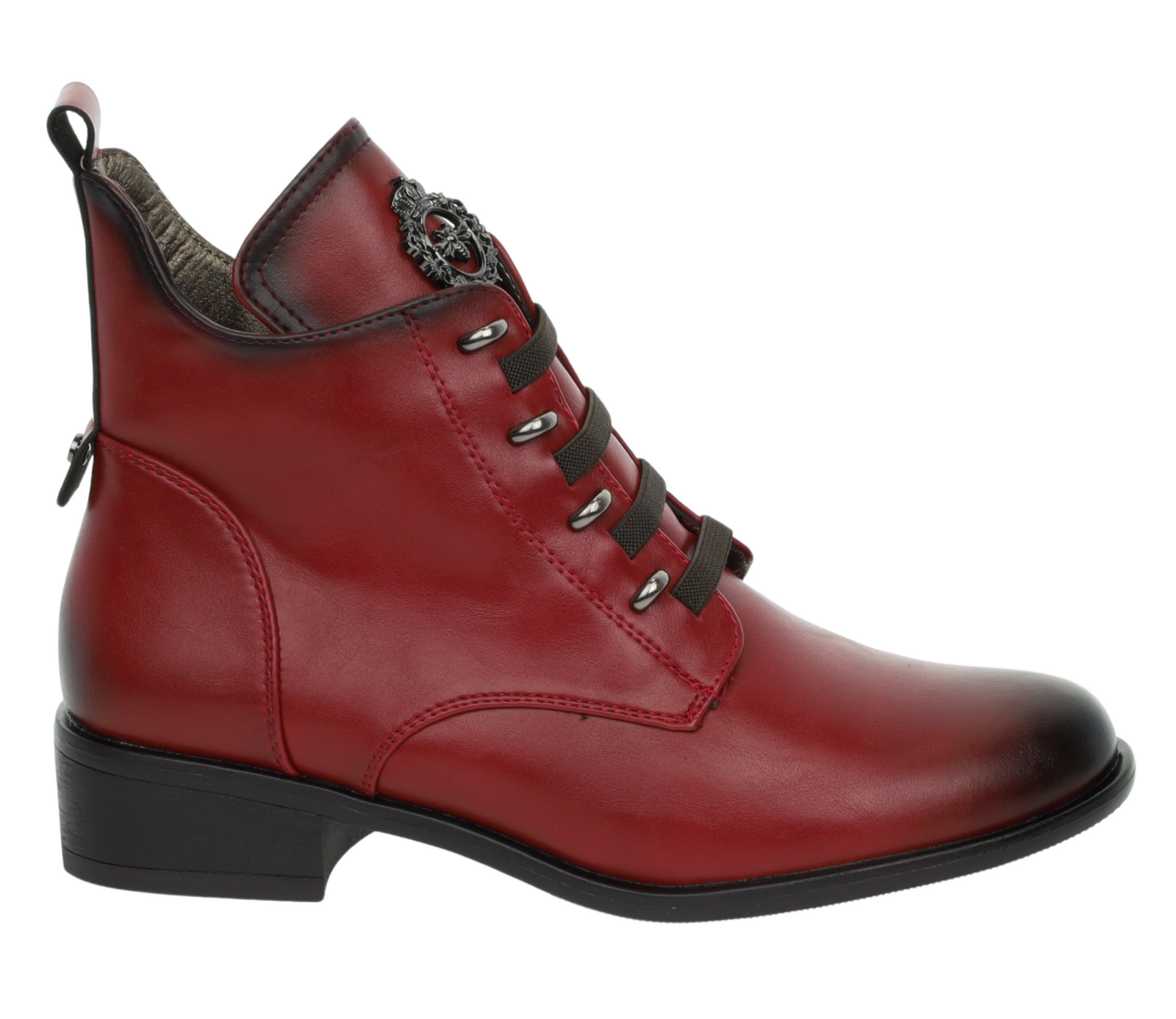 Czerwone botki damskie jesienno-zimowe eleganckie na płaskim obcasie Jezzi