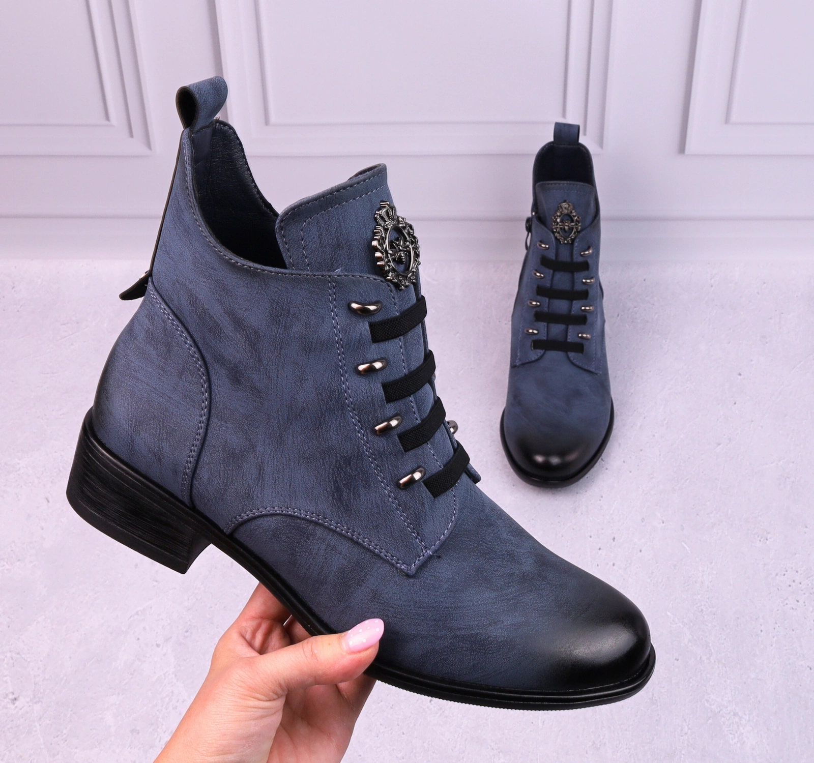 Niebieskie botki damskie ocieplane eleganckie i wygodne od Jezzi