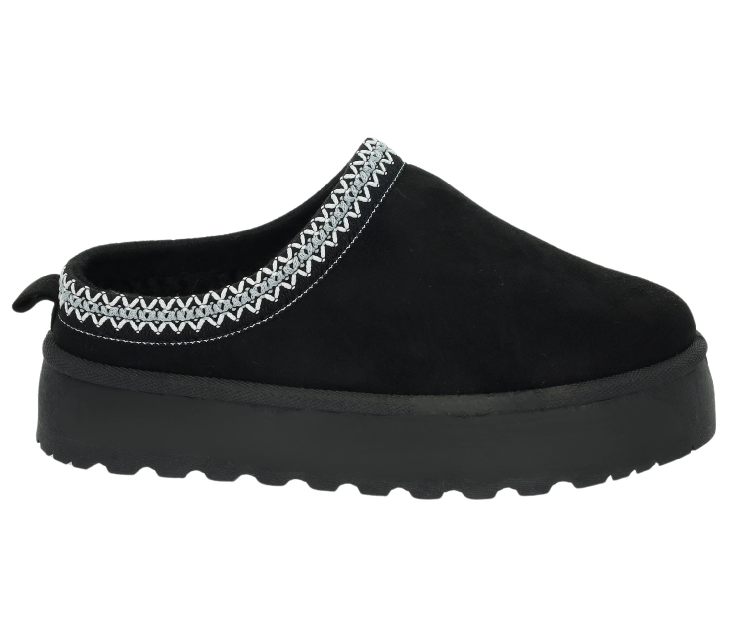 Kapcie czarne EMU ciepłe klapki śniegowce haftowane