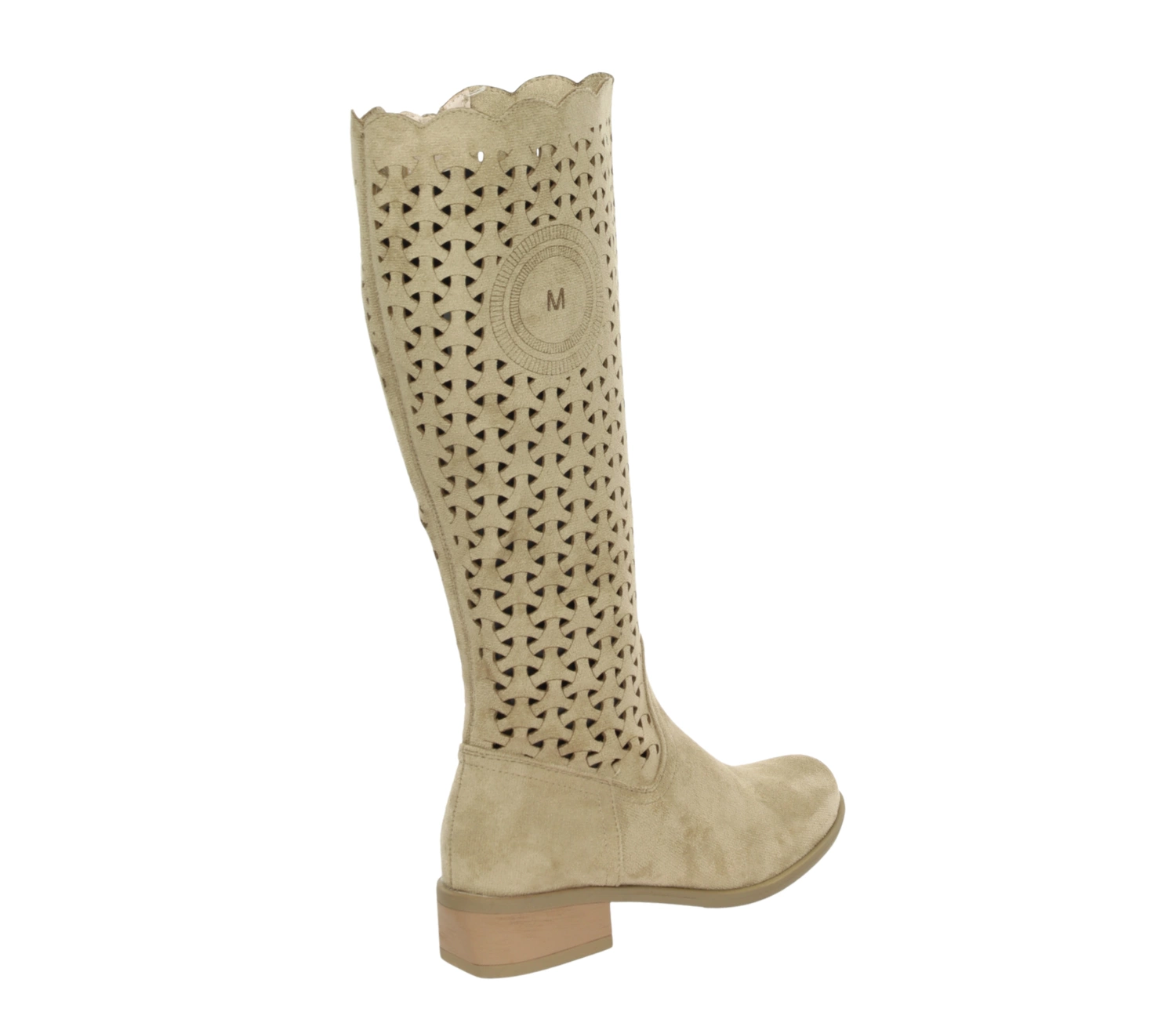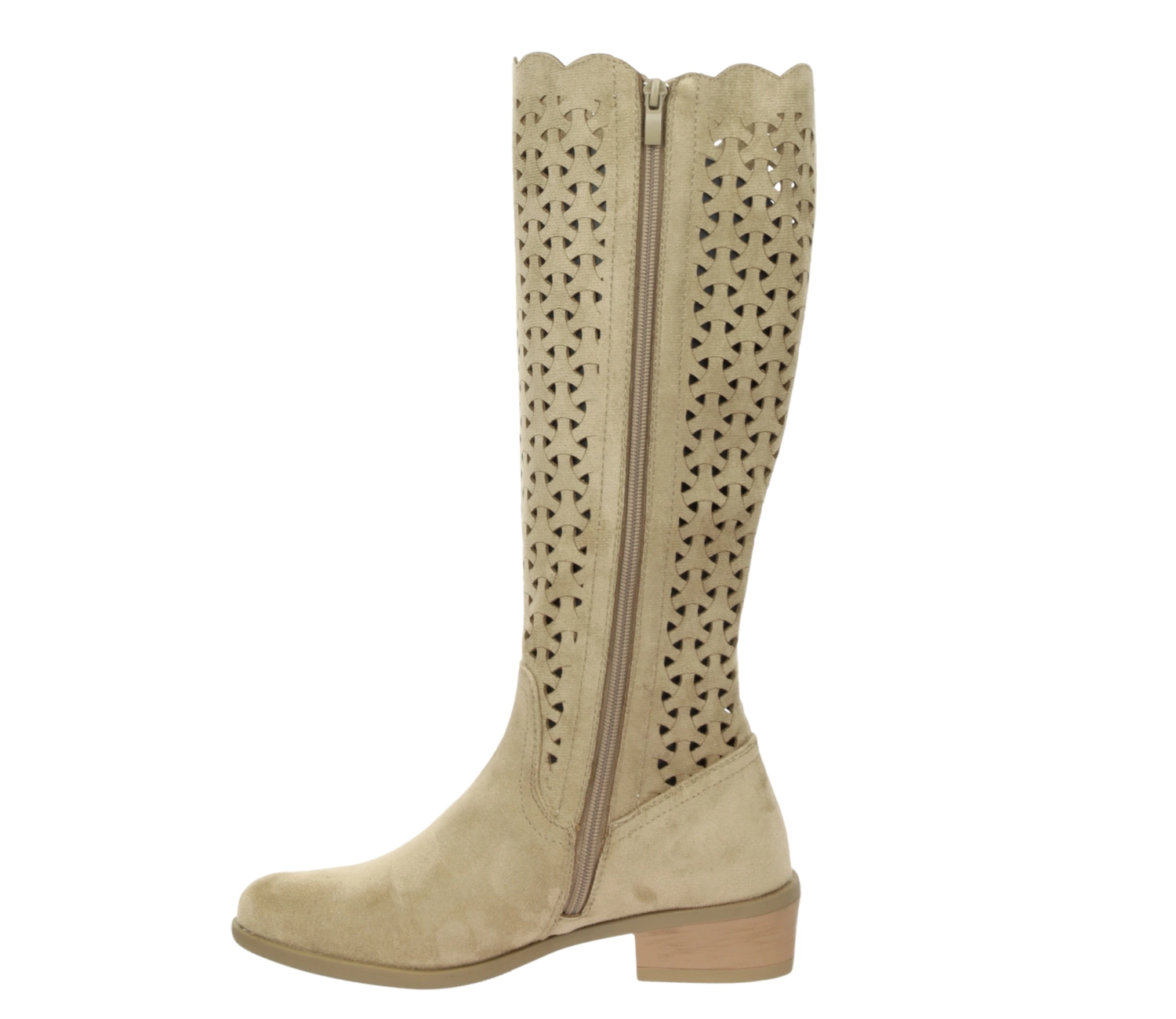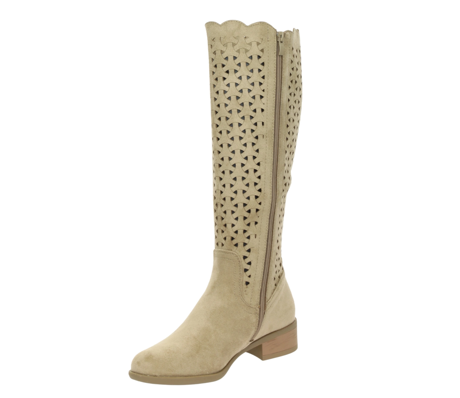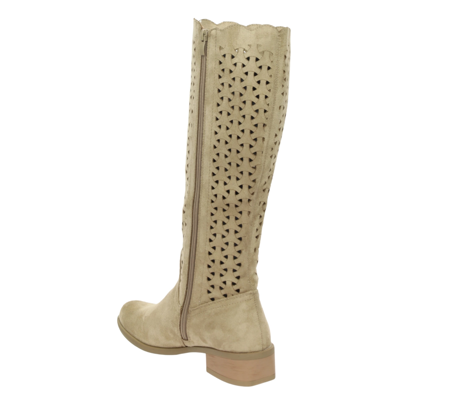 Beżowe kozaki zamszowe z ażurową cholewką jesienno-zimowe Eveline