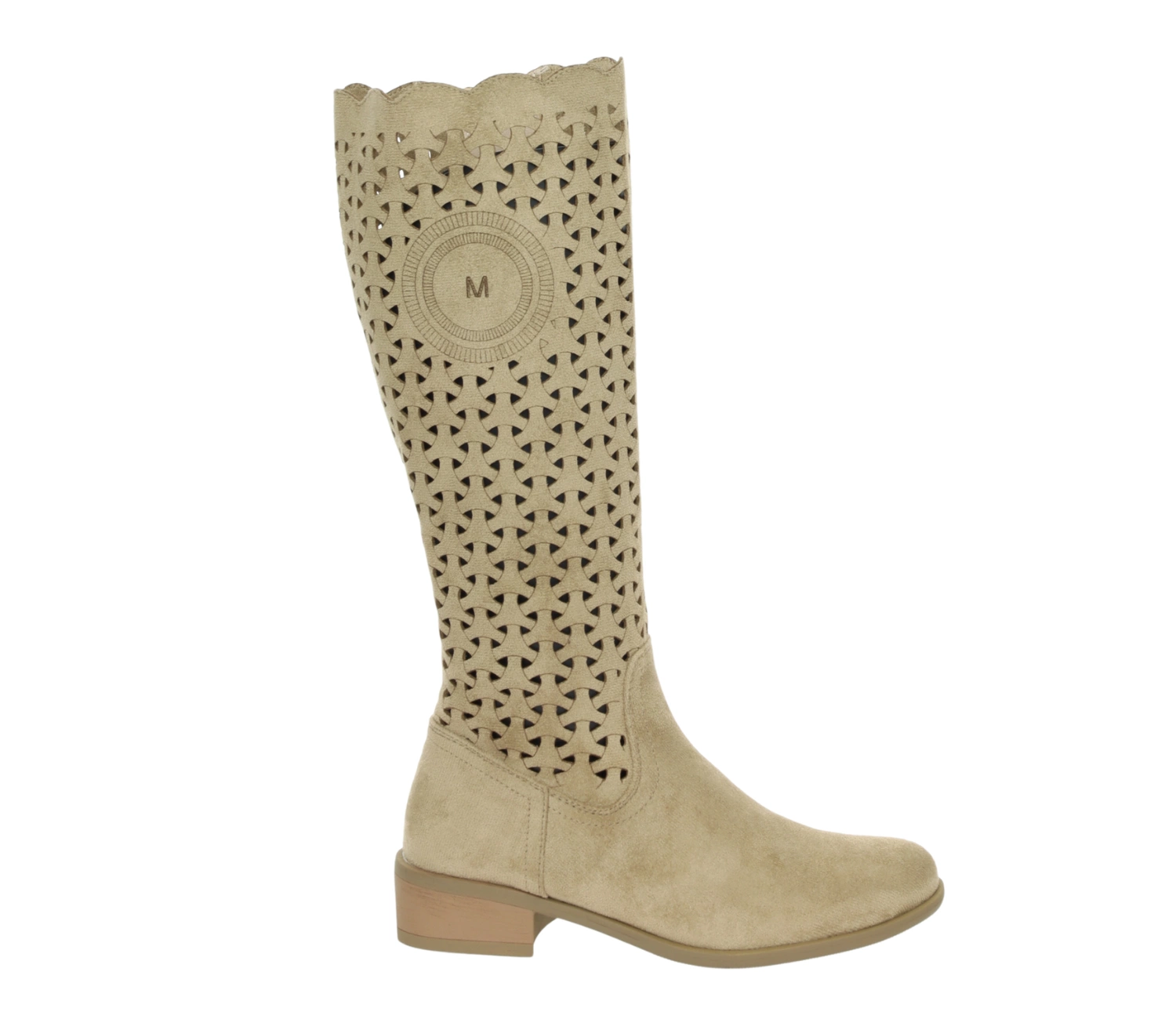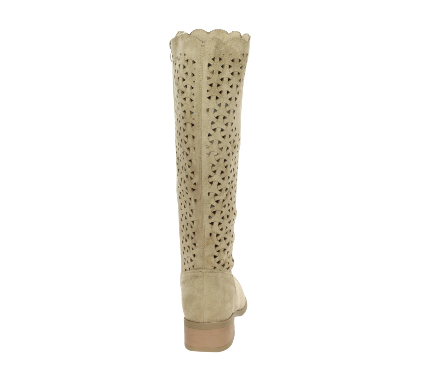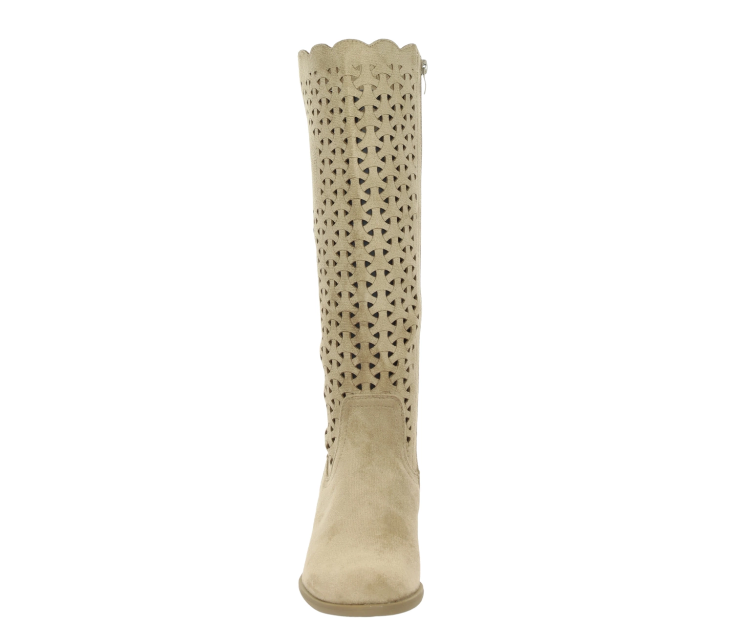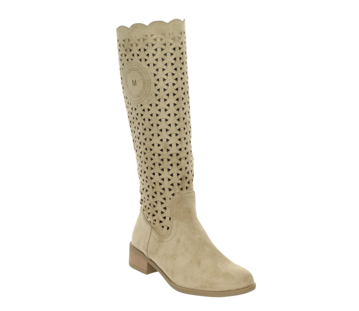 Beżowe kozaki zamszowe z ażurową cholewką jesienno-zimowe Eveline