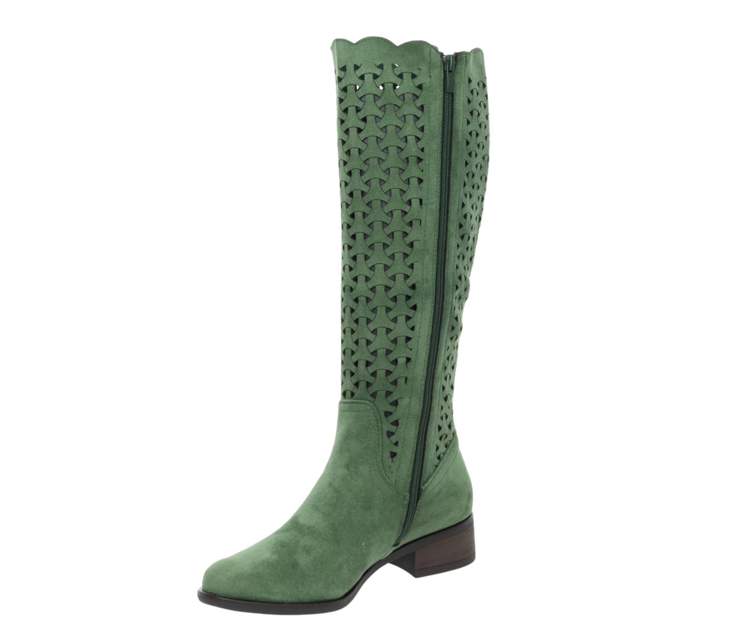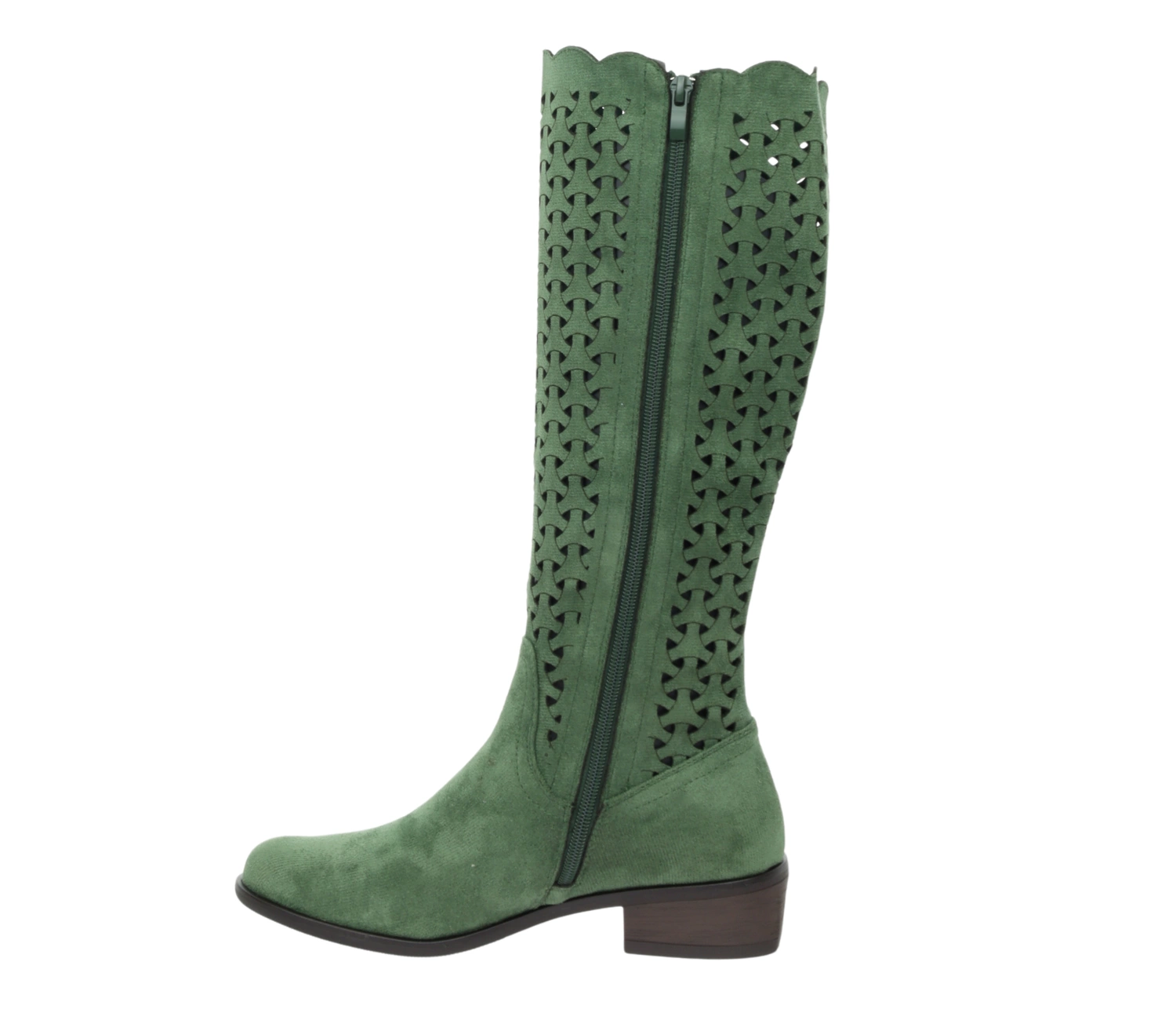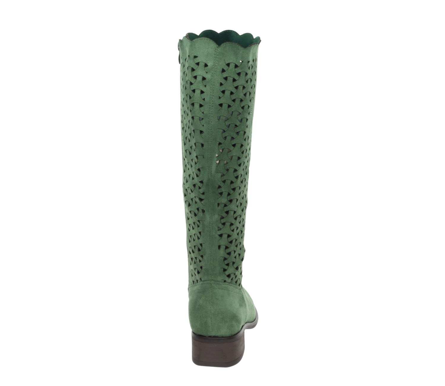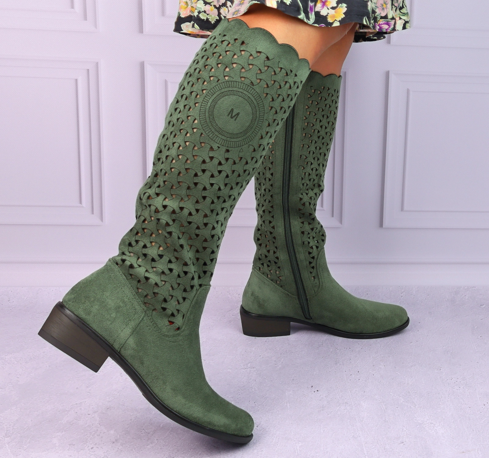 Zielone zamszowe kozaki damskie płaskie ażurowe Eveline