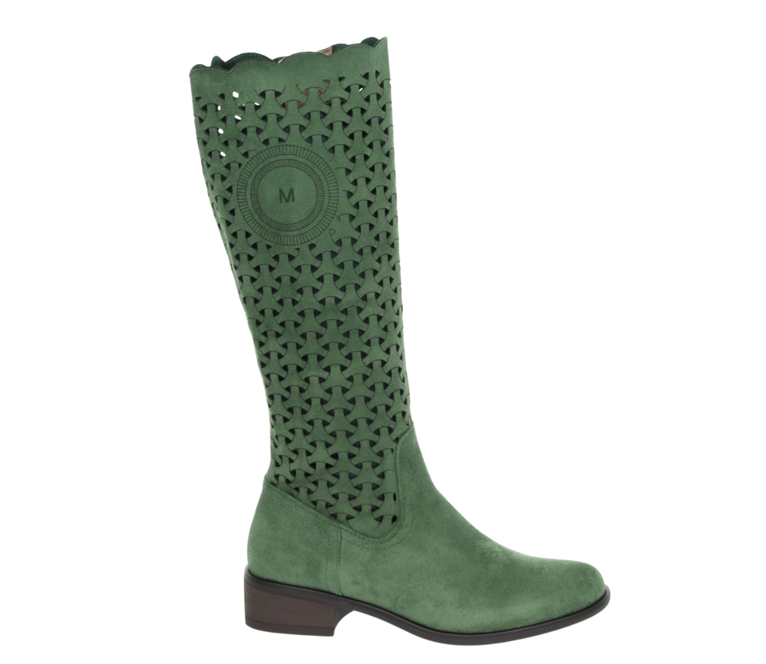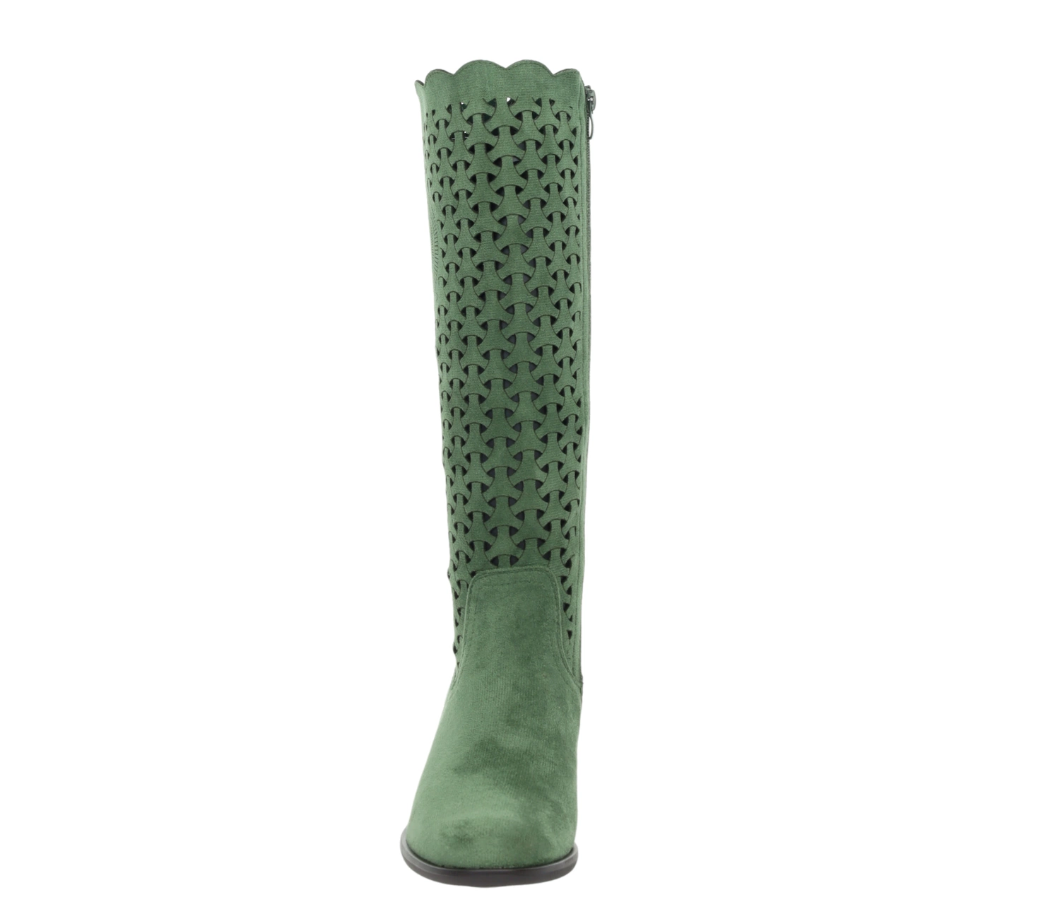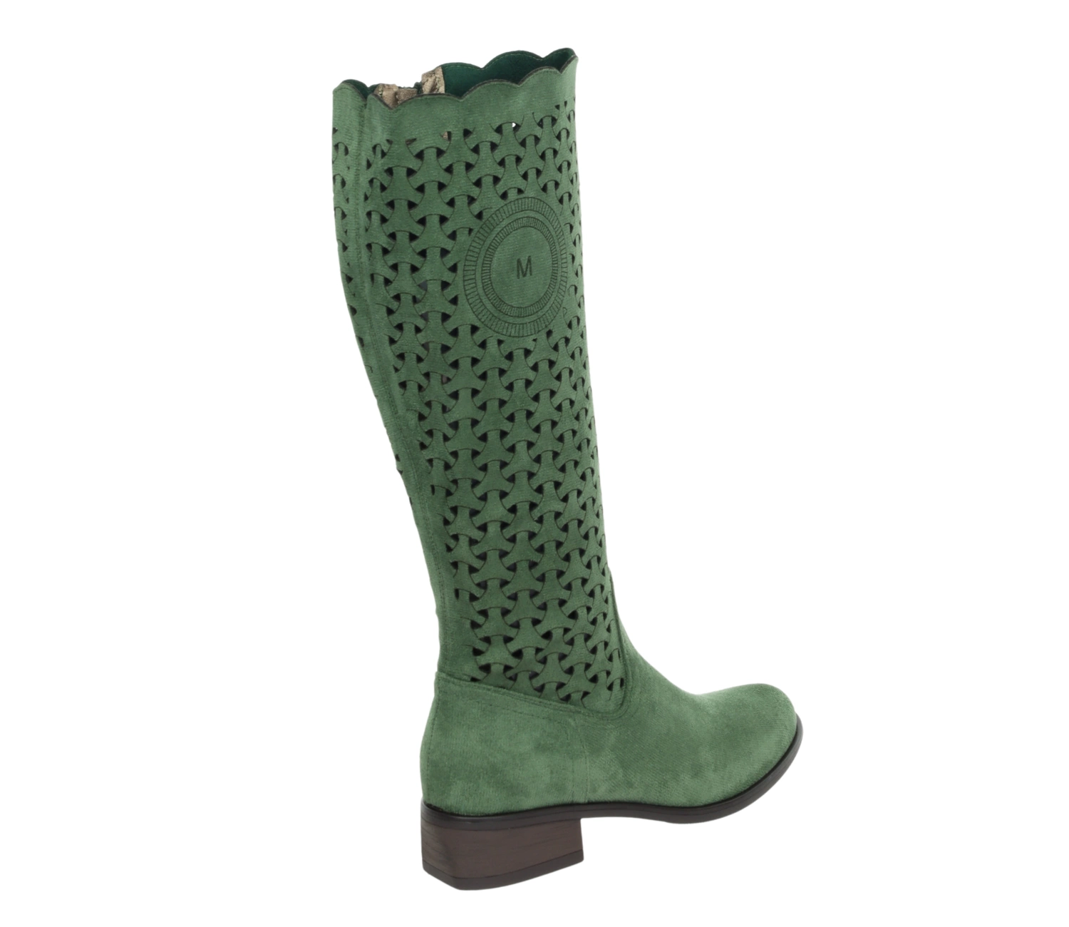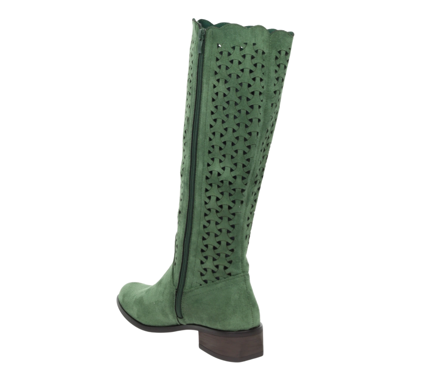 Zielone zamszowe kozaki damskie płaskie ażurowe Eveline