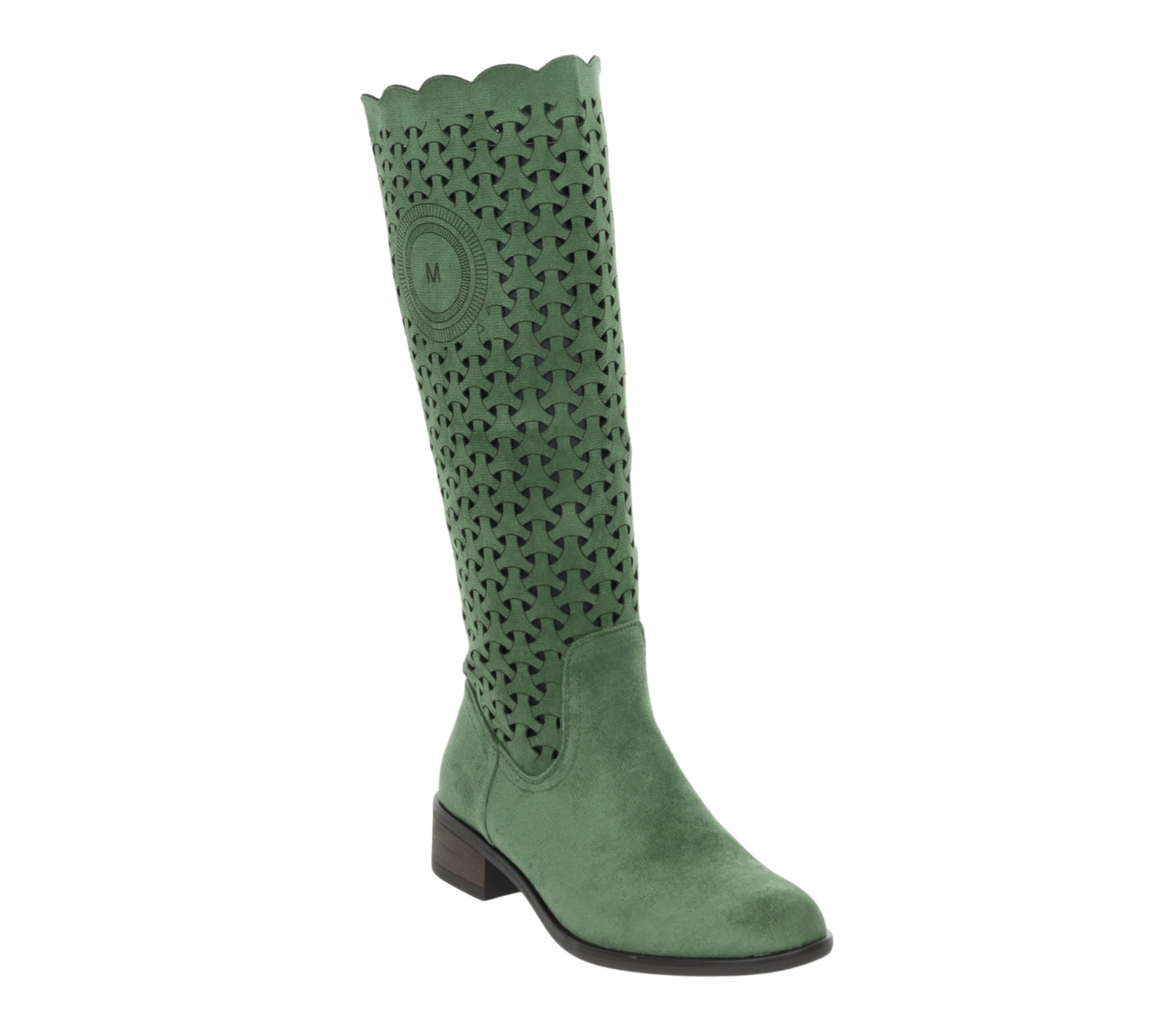 Opinie o Zielone zamszowe kozaki damskie płaskie ażurowe Eveline