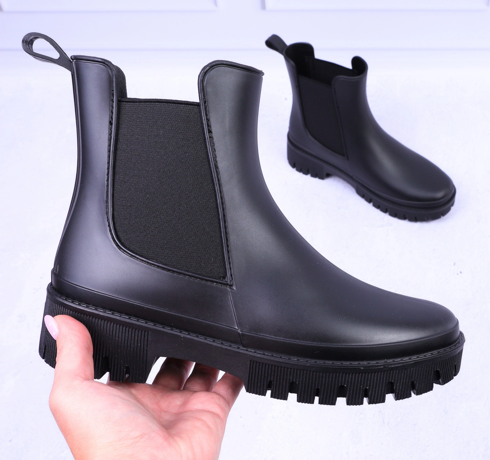 Czarne botki gumowe niskie eleganckie damskie. Gumowce czarne sztyblety.Towar wprowadzony przed 13.12.2024