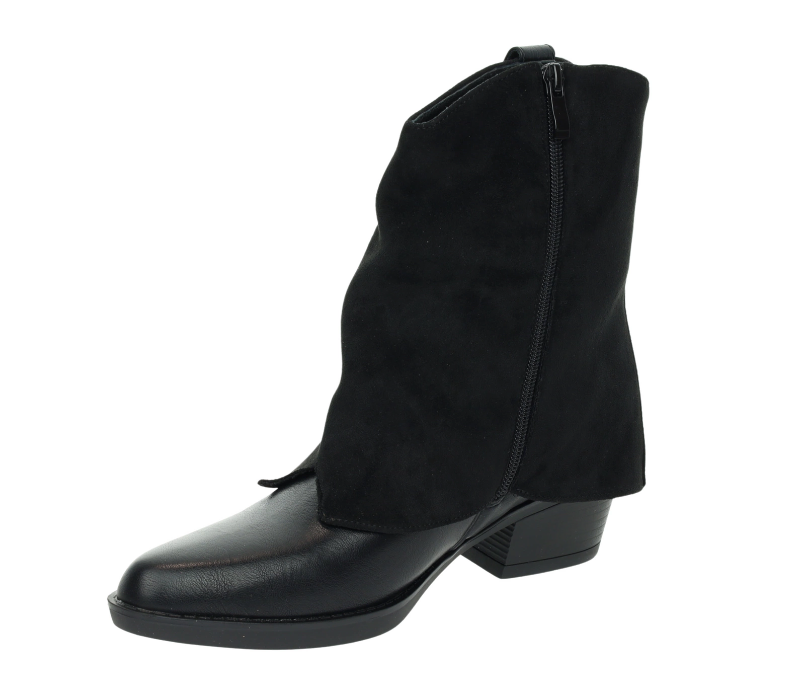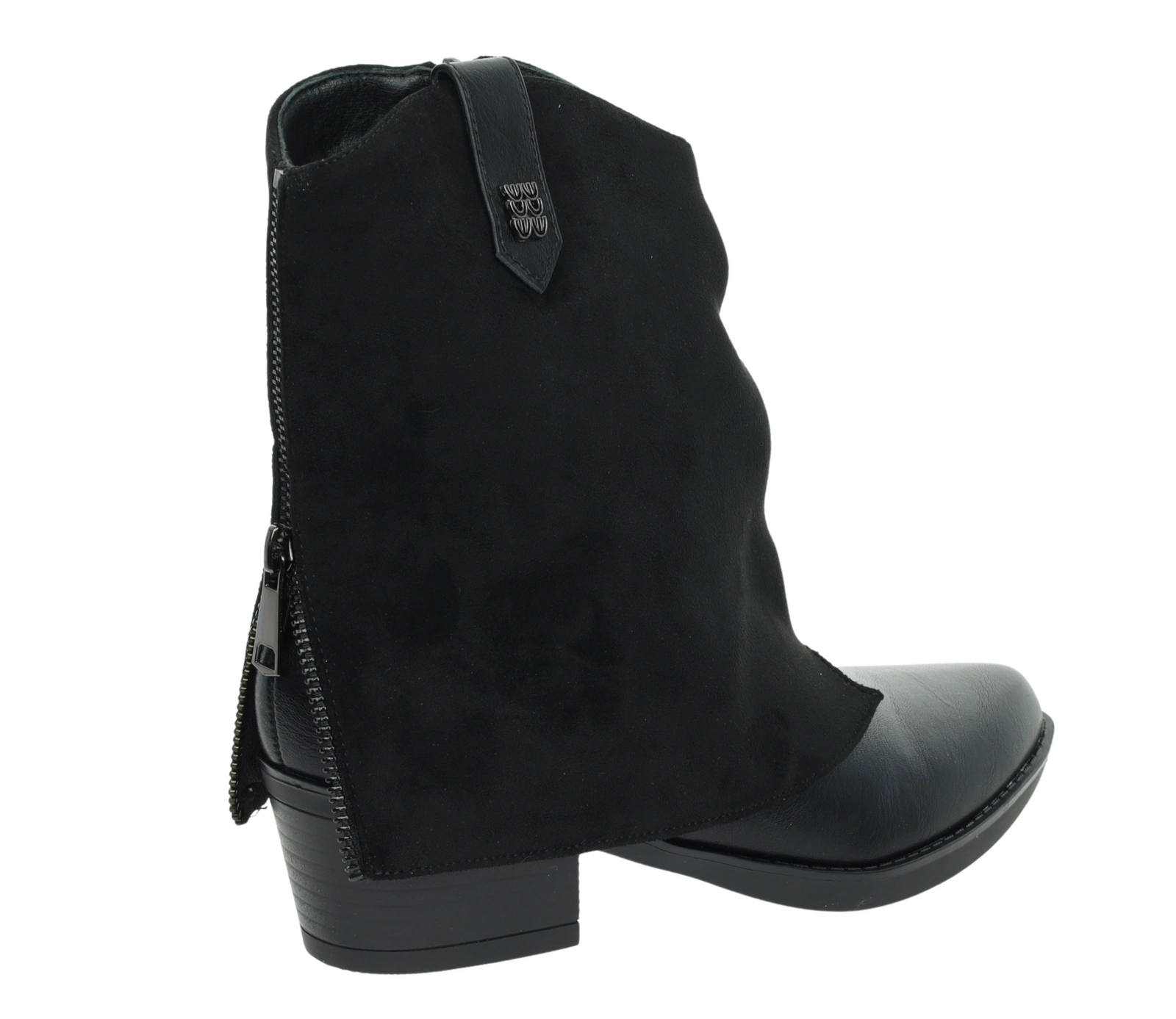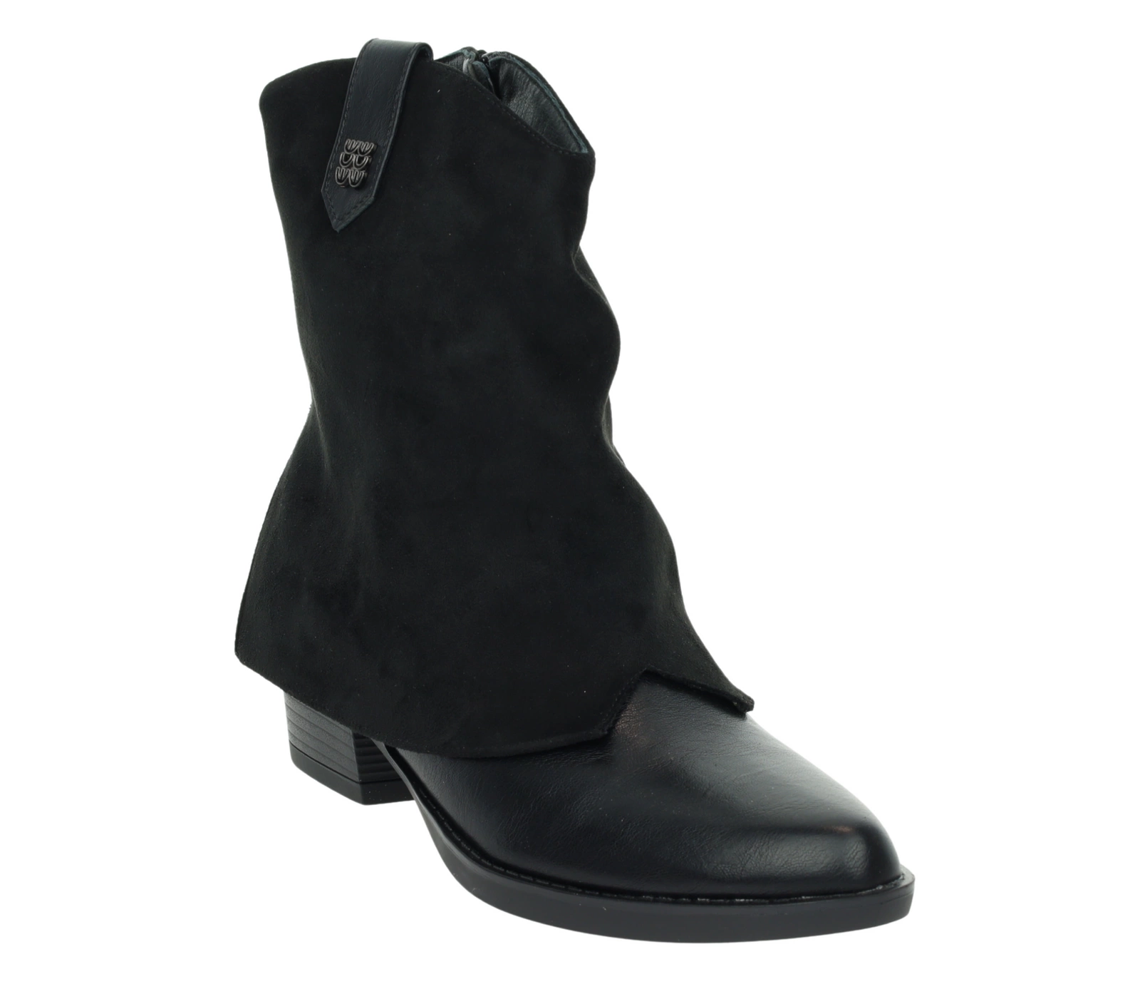 Czarne niskie botki kowbojki na wygodnym obcasie z wywiniętą cholewką Jezzi