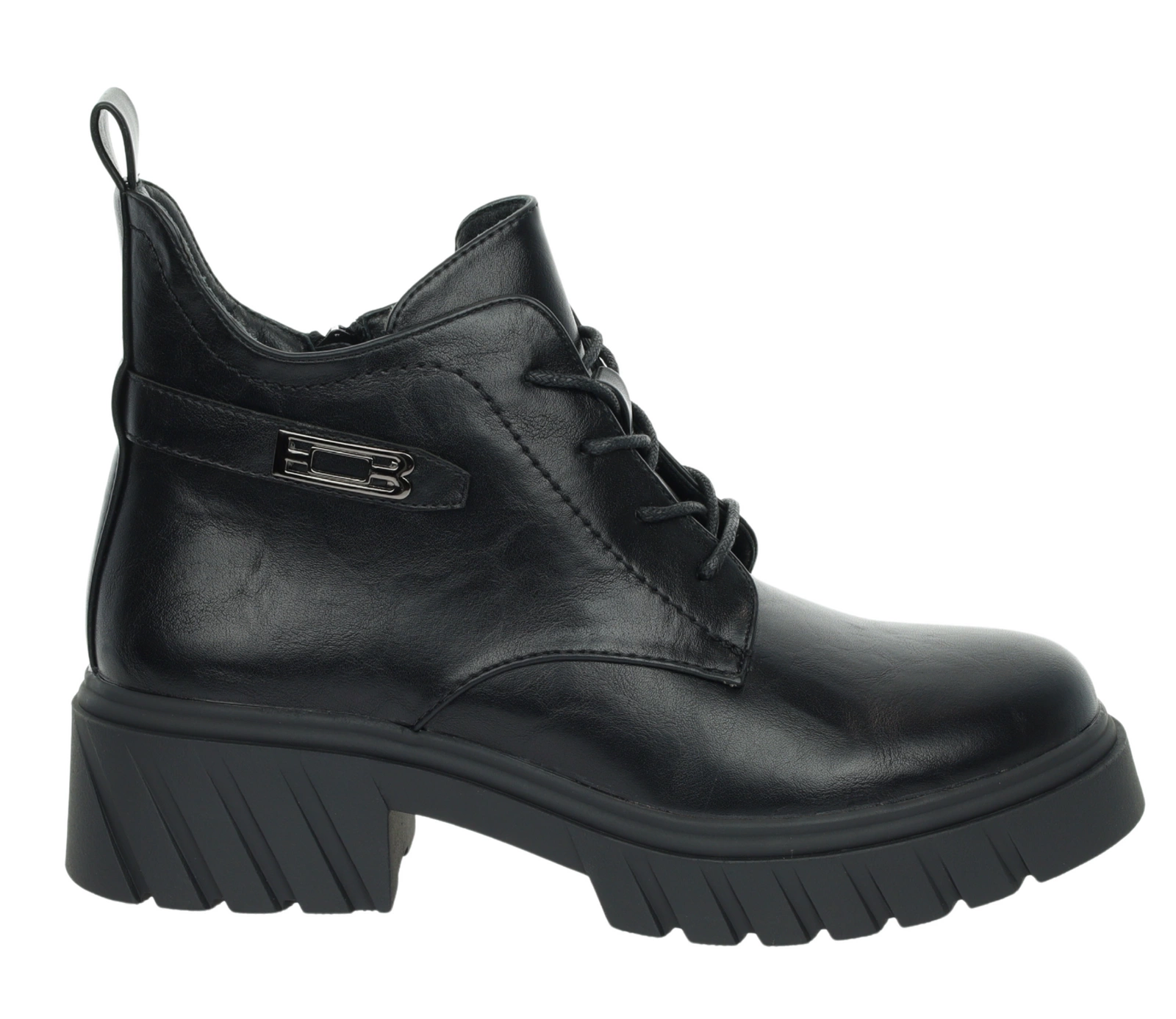 Czarne buty damskie zimowe ocieplane na grubej podeszwie Jezzi