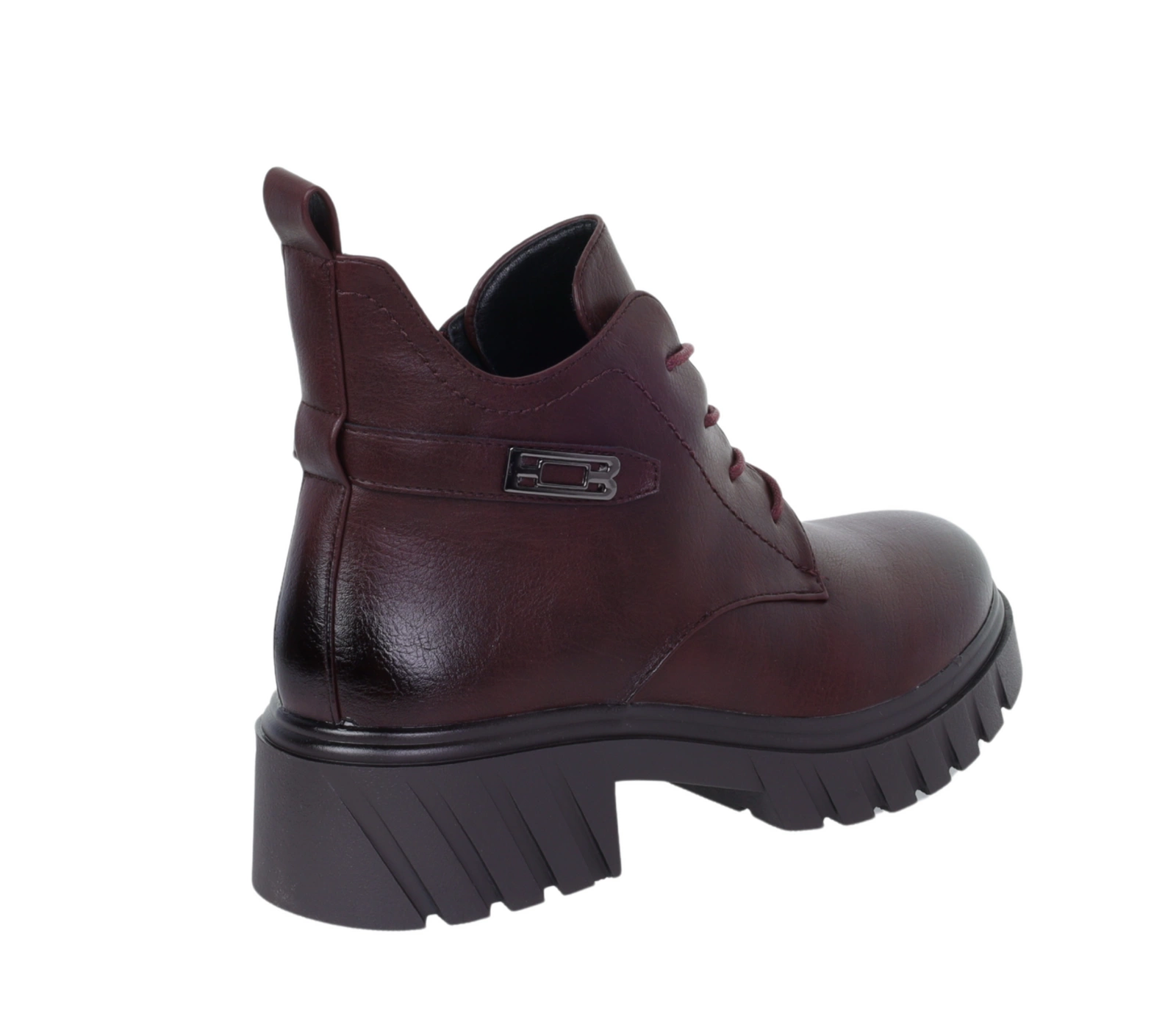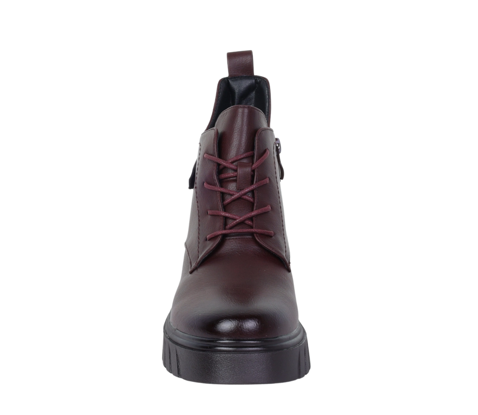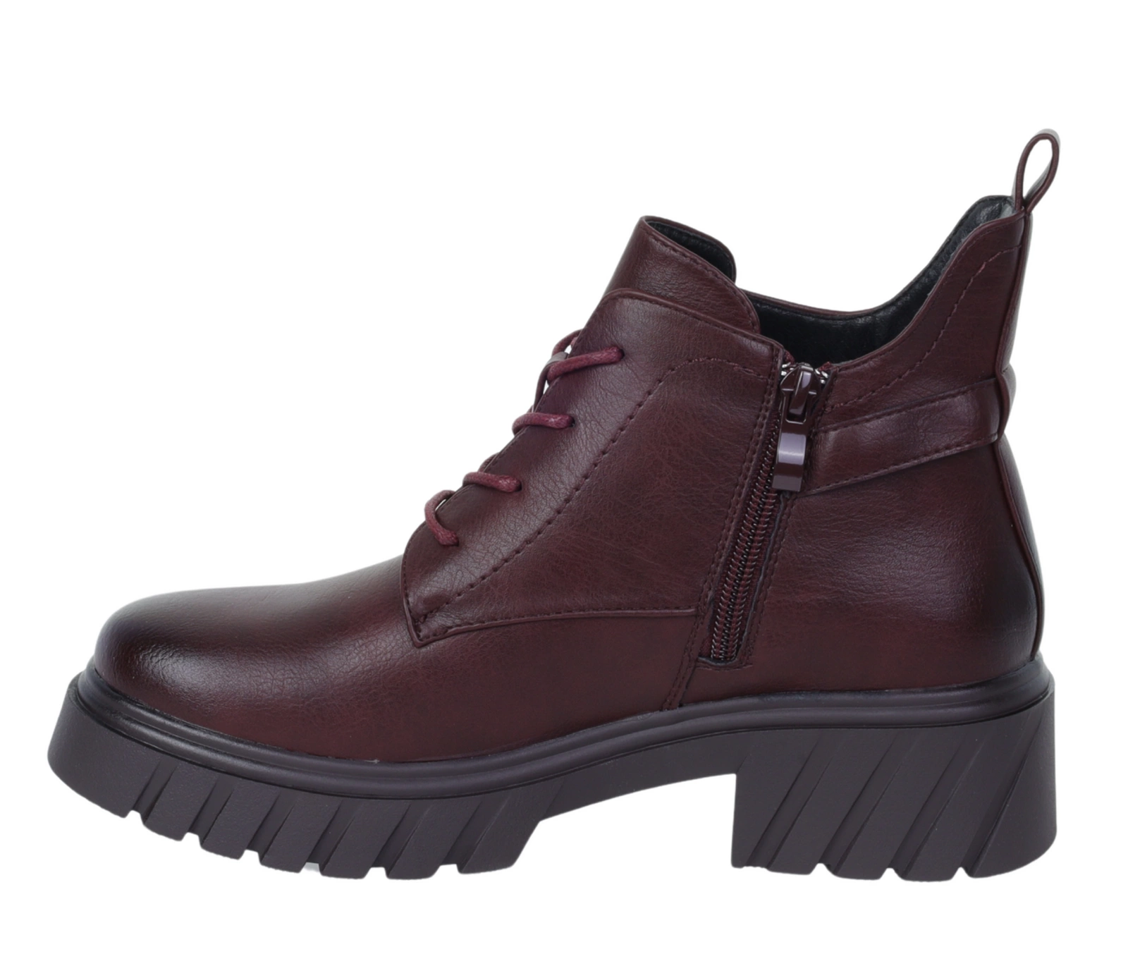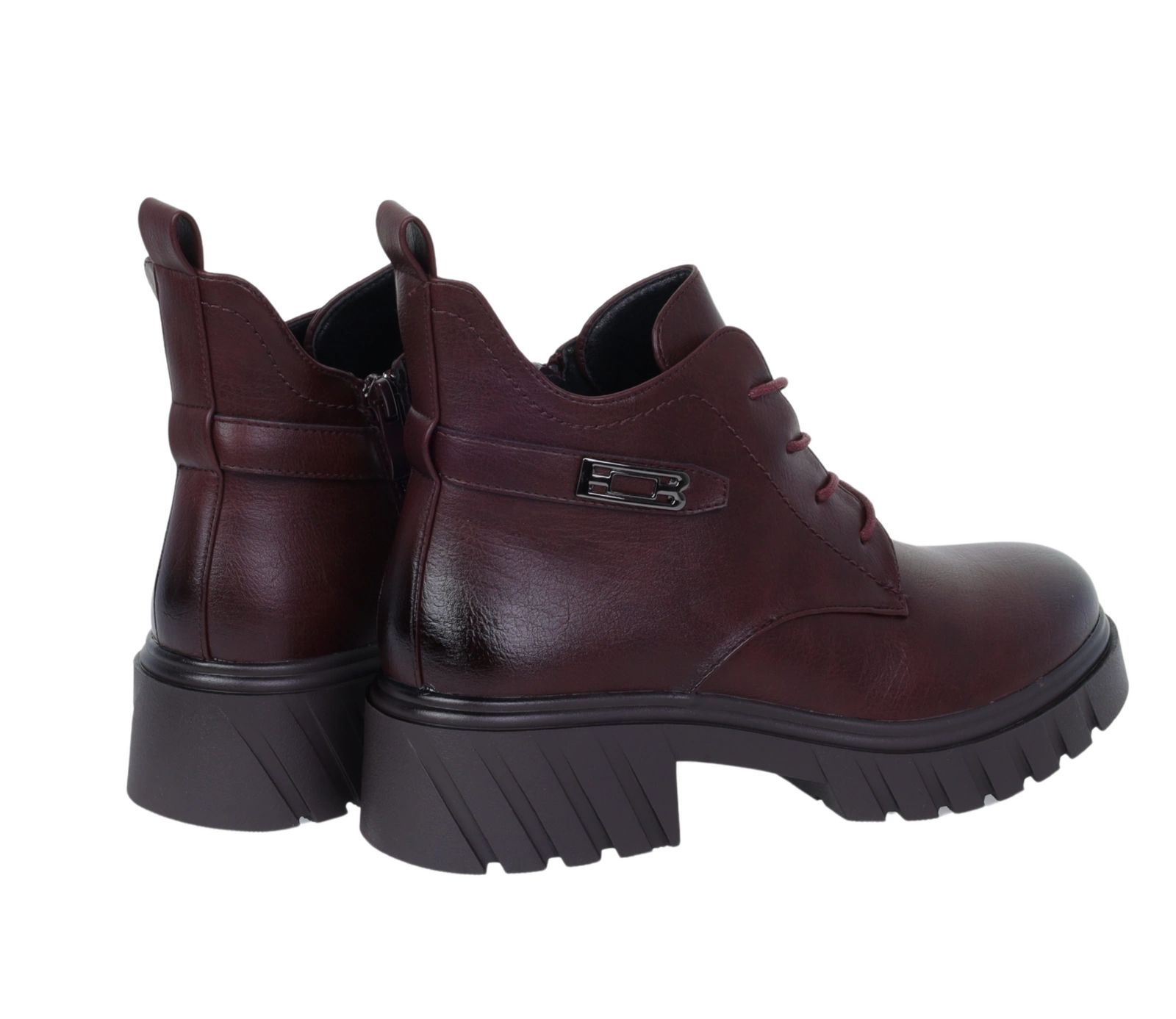Bordowe botki damskie ocieplane na grubej platformie Jezzi