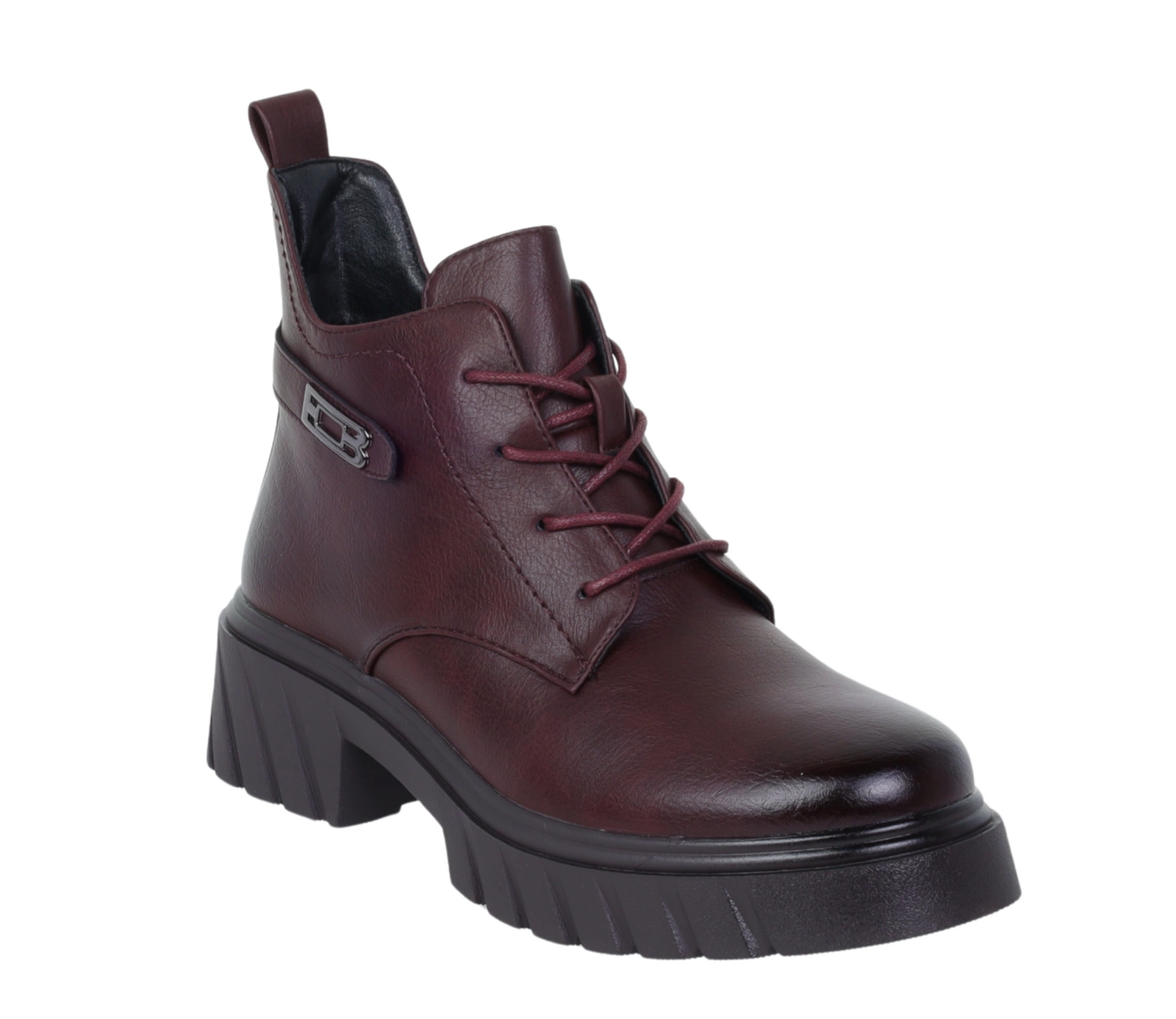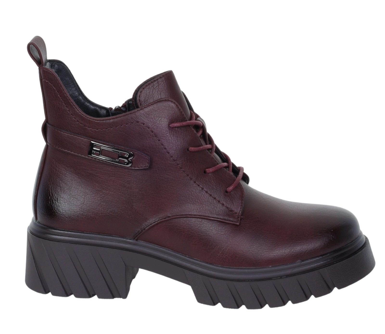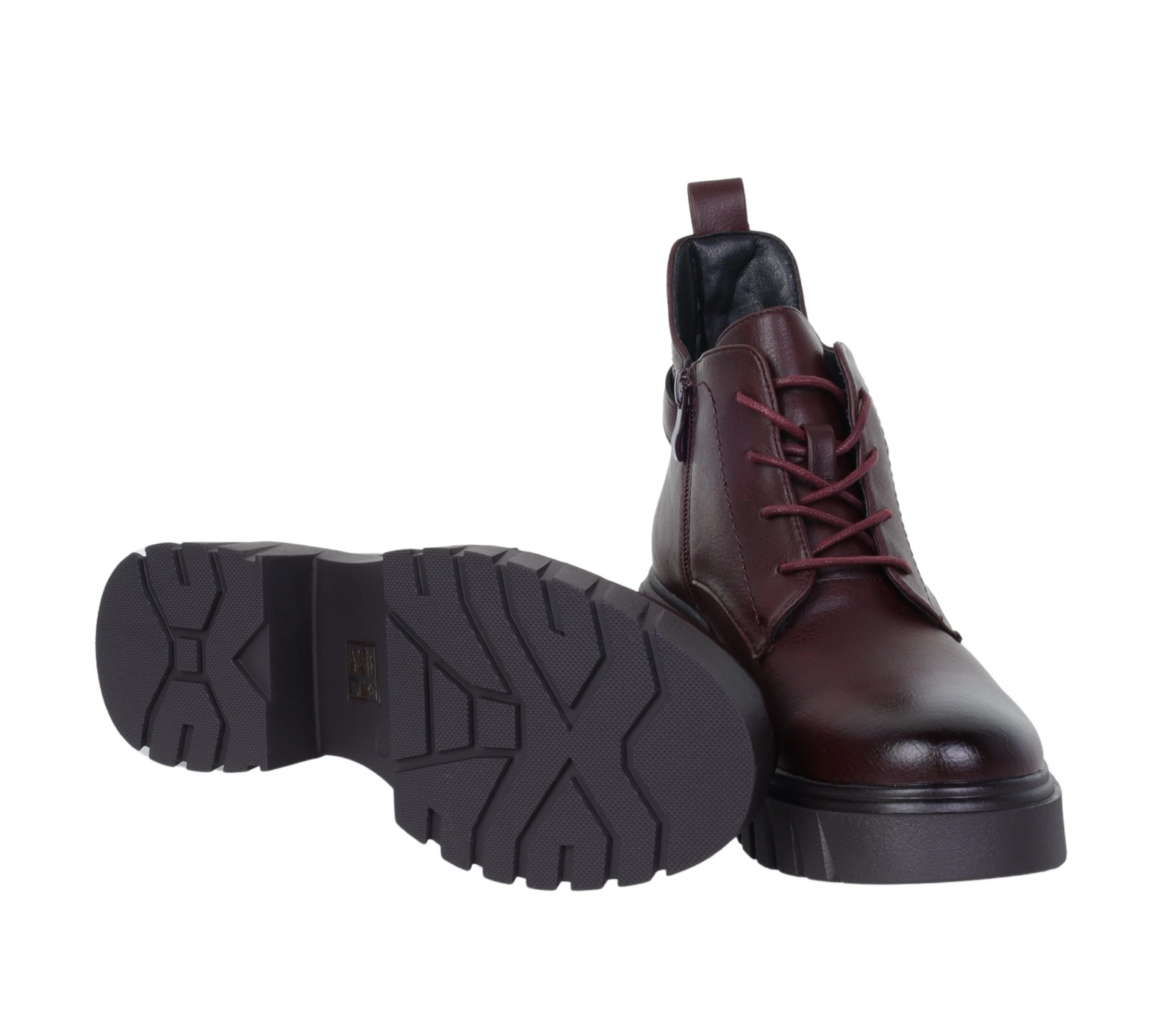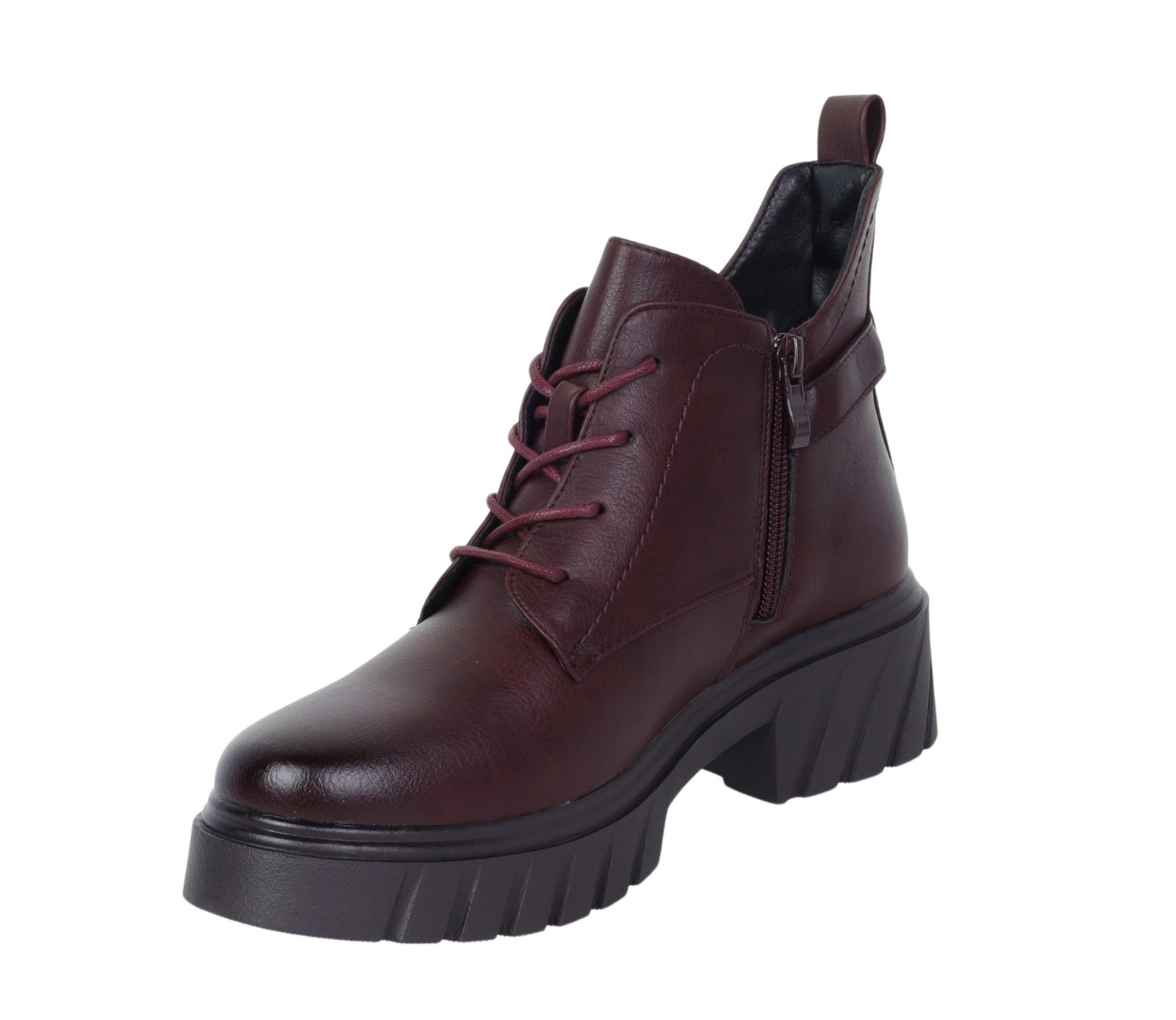 Bordowe botki damskie ocieplane na grubej platformie Jezzi