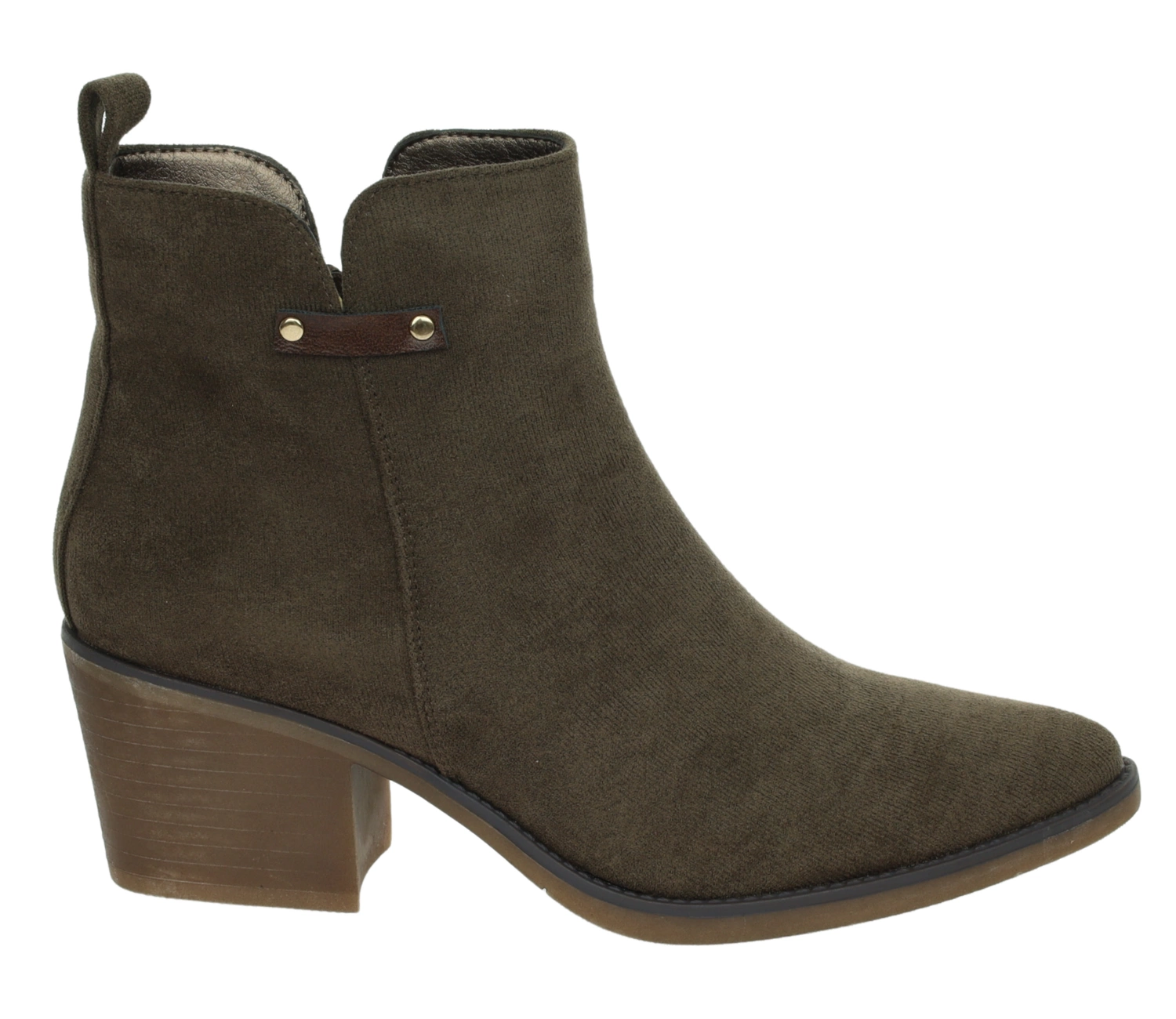 Czekoladowe botki damskie jesienne typu kowbojki niskie Katrin
