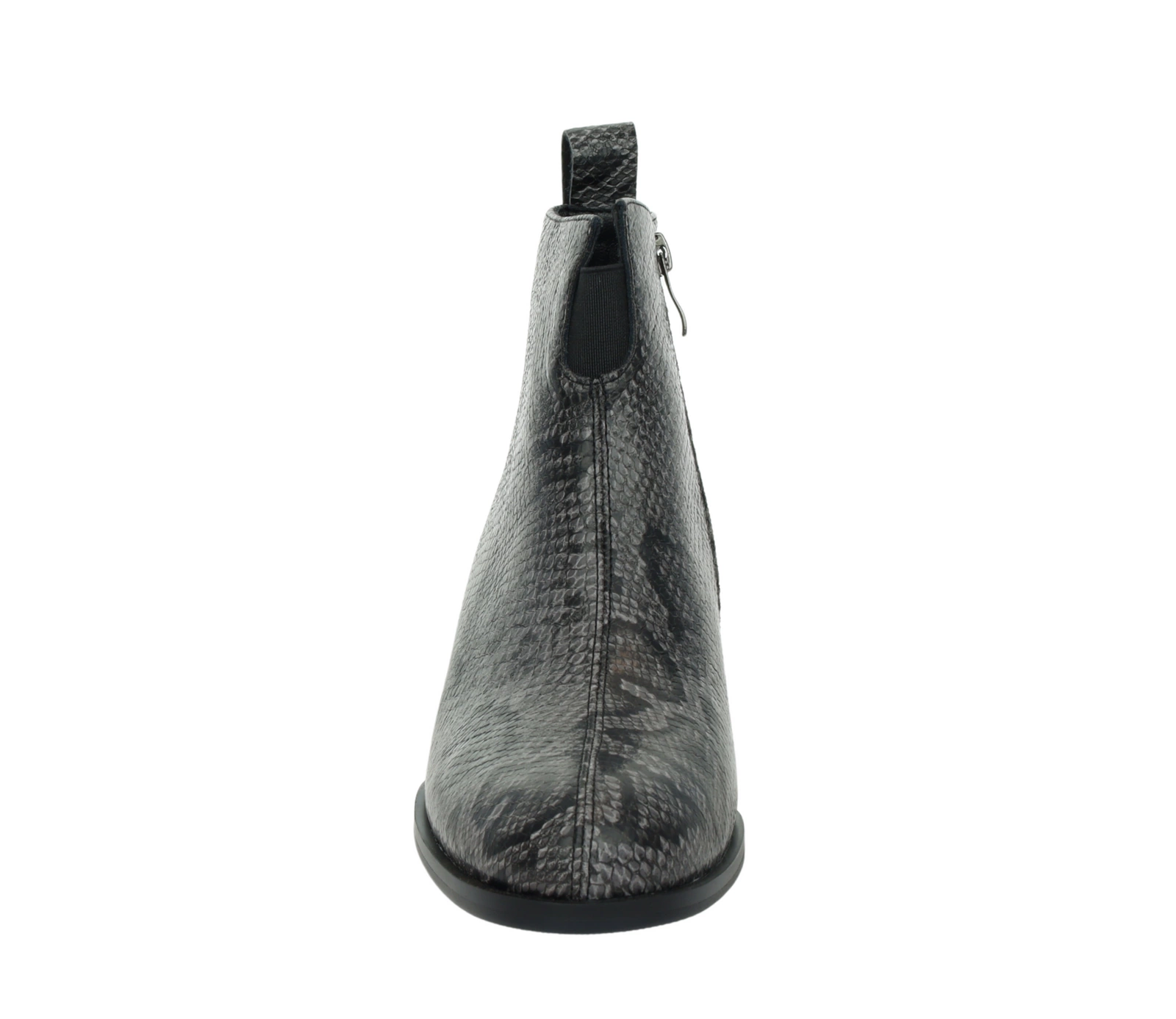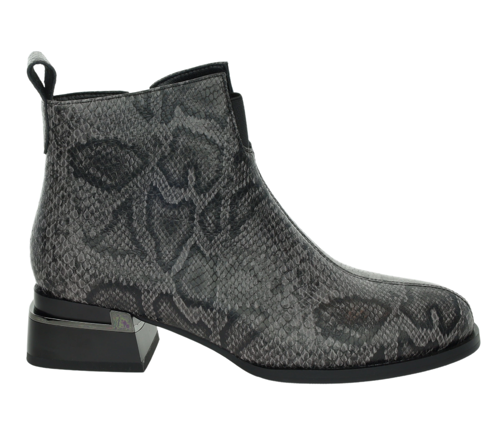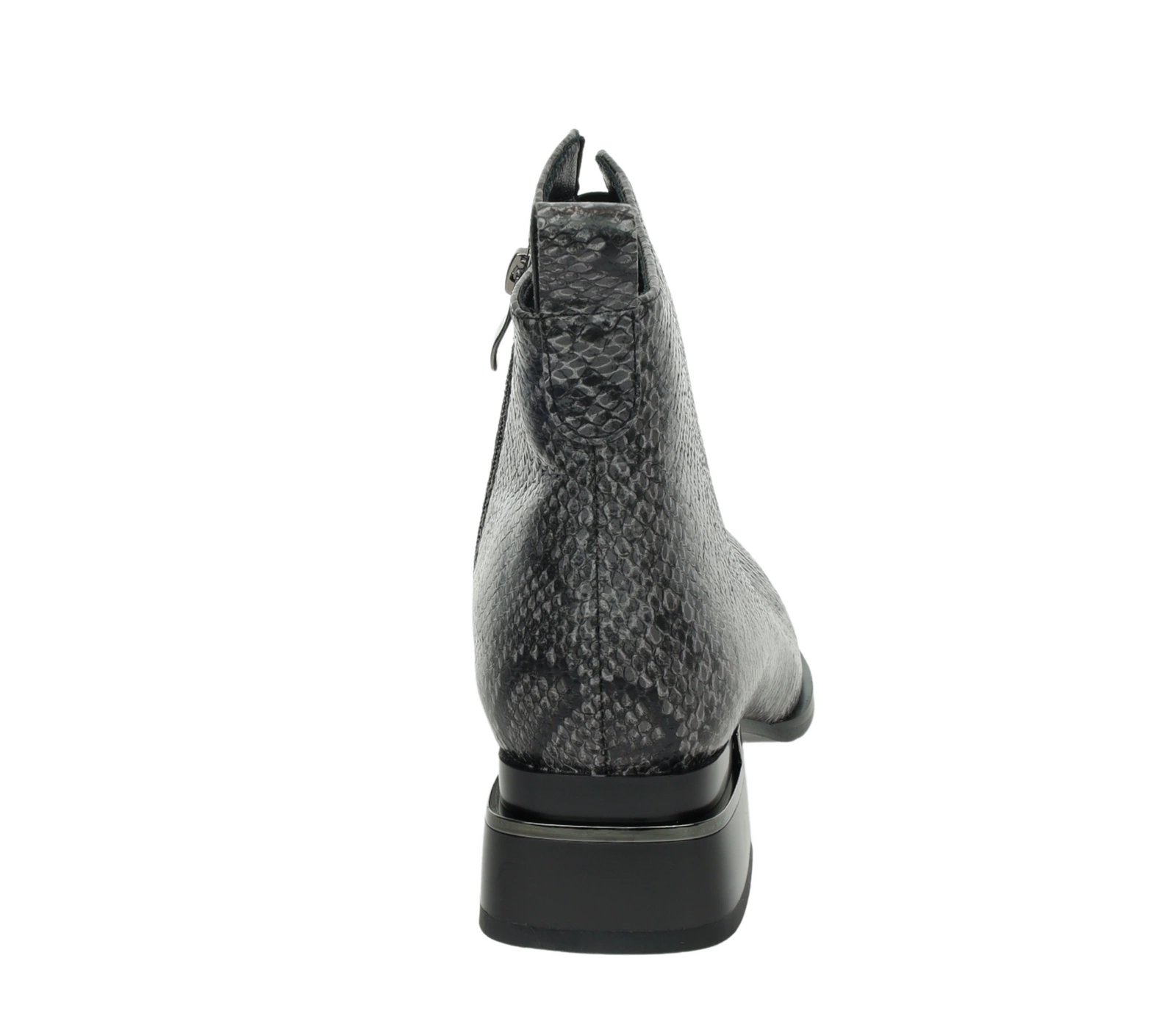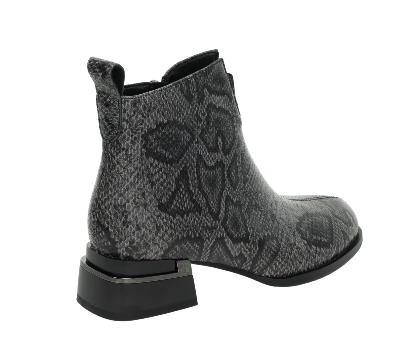 Zanurz się w subtelnej elegancji dzięki szarym skórzanym botkom z efektowną fakturą wężowej skóry. Wykonane z naturalnej skóry, z klasycznym, zaokrąglonym noskiem — te botki łączą komfort z luksusowym charakterem. Niski, stabilny obcas o wysokości 4 cm zapewnia wygodę przez cały dzień, a ocieplenie idealnie sprawdzi się w chłodniejsze dni. Elegancki zamek błyskawiczny gwarantuje łatwe zakładanie, a miękka, tekstylna wkładka dba o komfort stóp. To stylowy i praktyczny wybór — idealny do codziennych stylizacji i jesienno-zimowych wyjść.