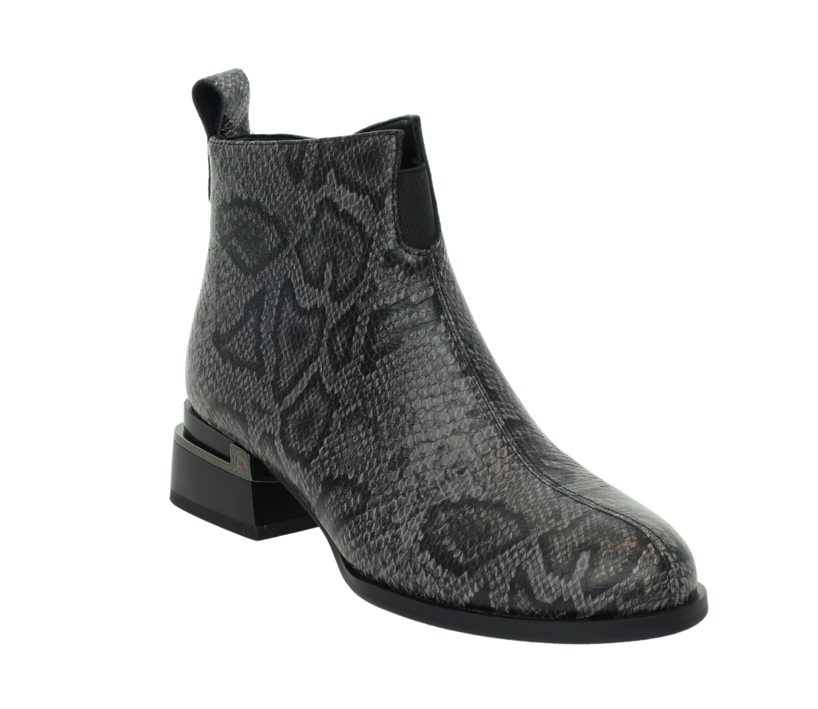 Szare skórzane botki eleganckie płaskie wężowa skóra