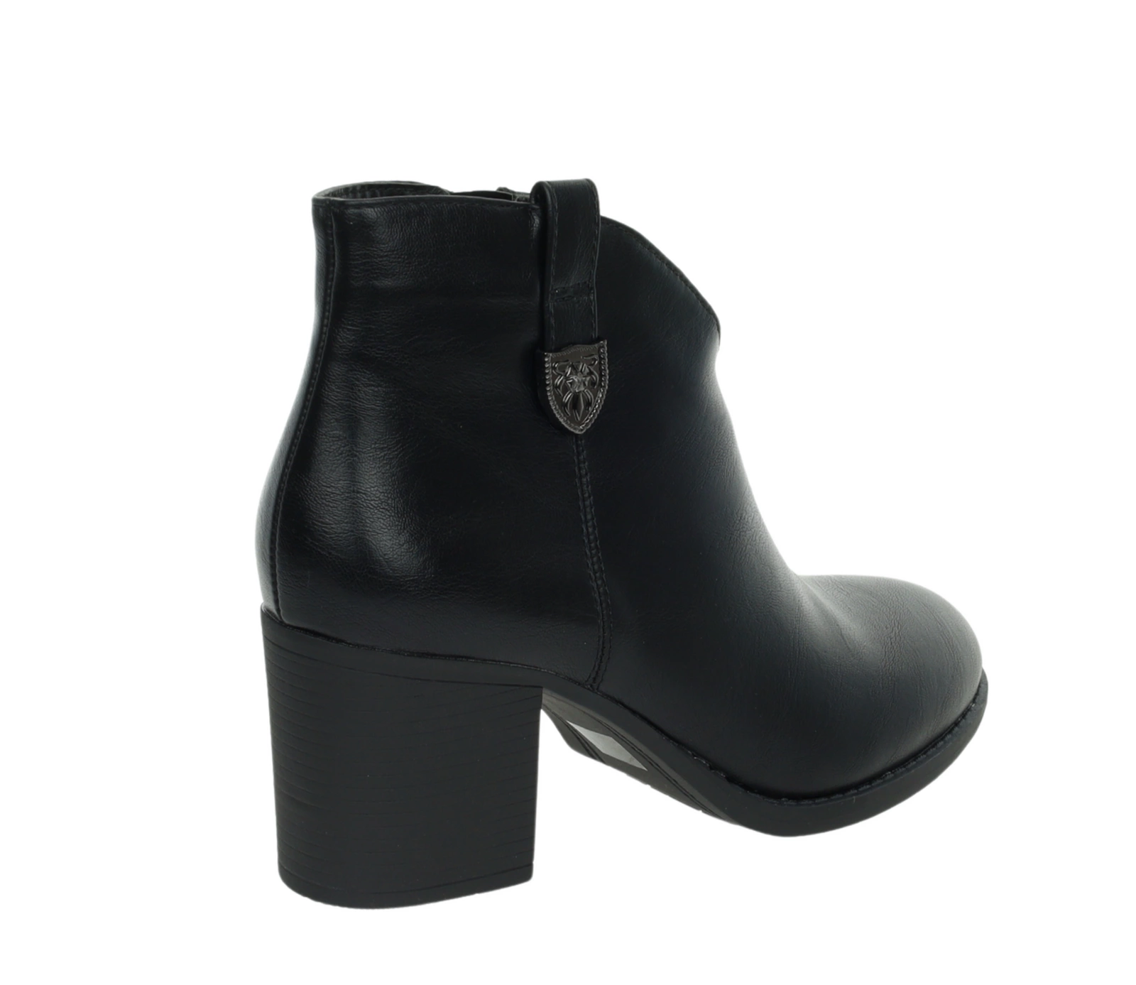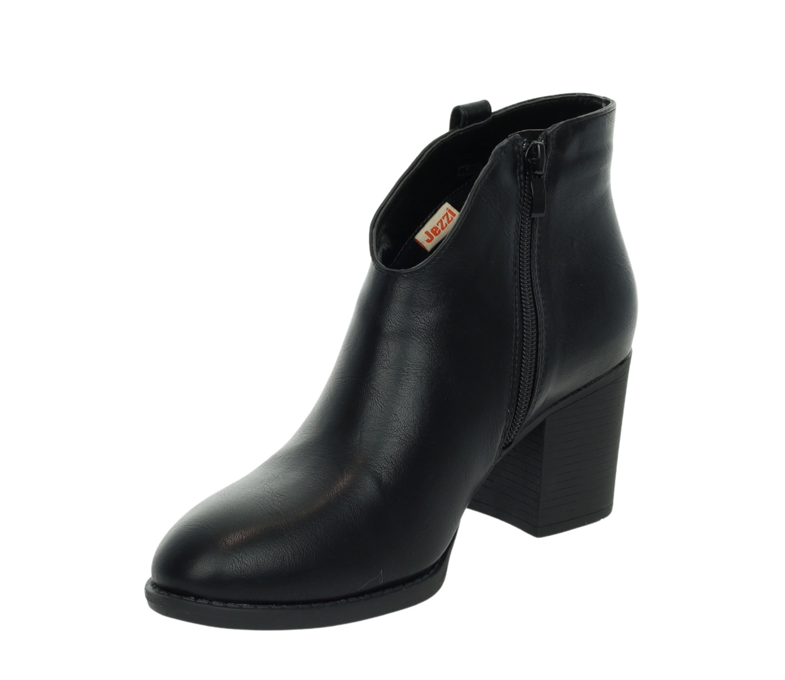 Eleganckie botki damskie czarne na obcasie na wąskie stopy Jezzi
