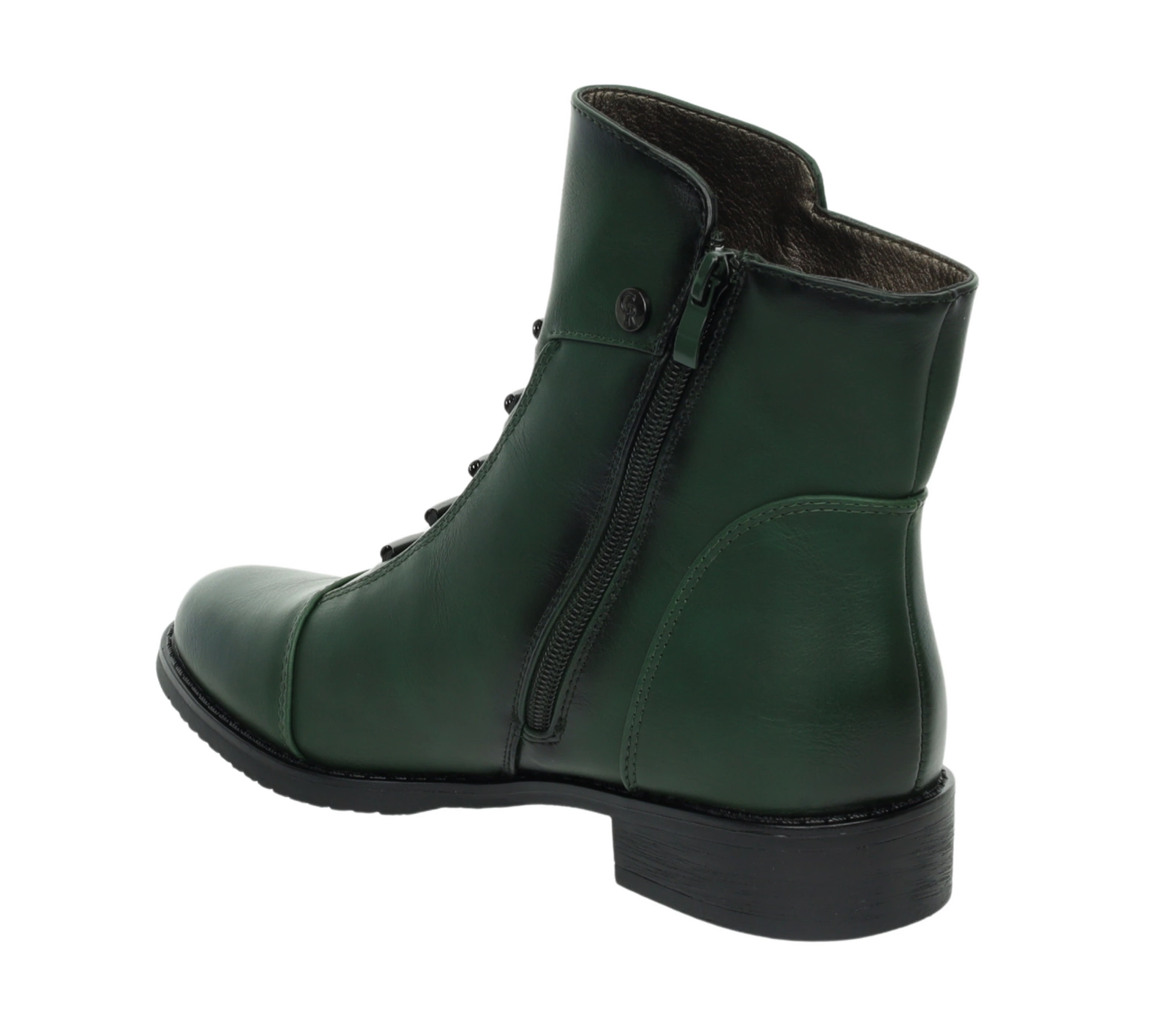Opinie o Ciemnozielone botki damskie na płaskim obcasie ocieplane klasyczne Jezzi 5.00
