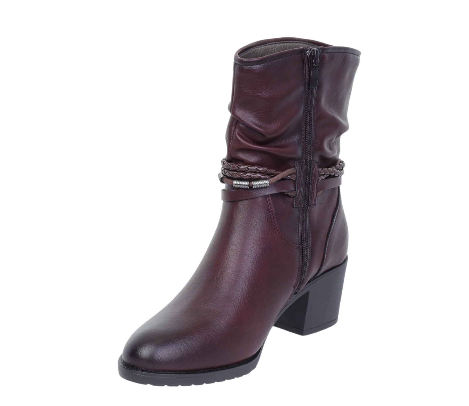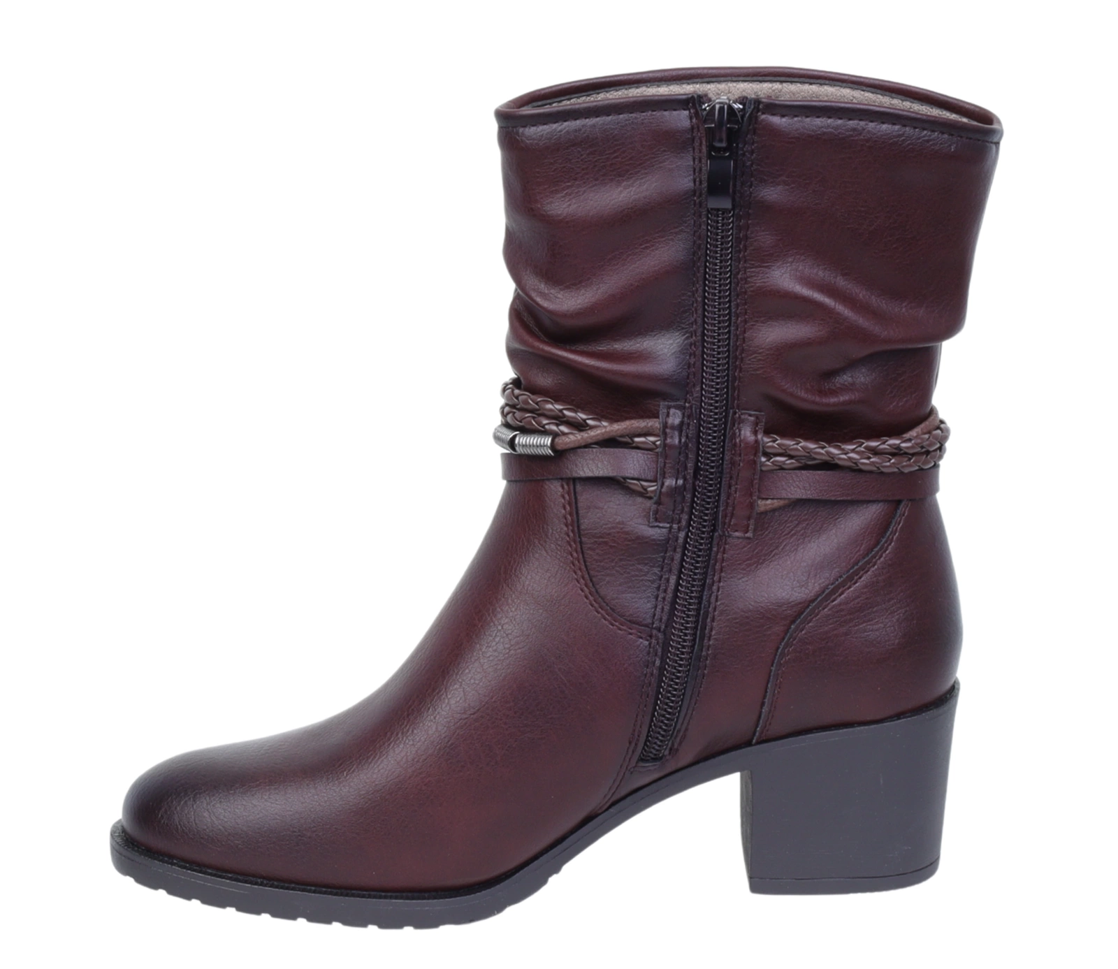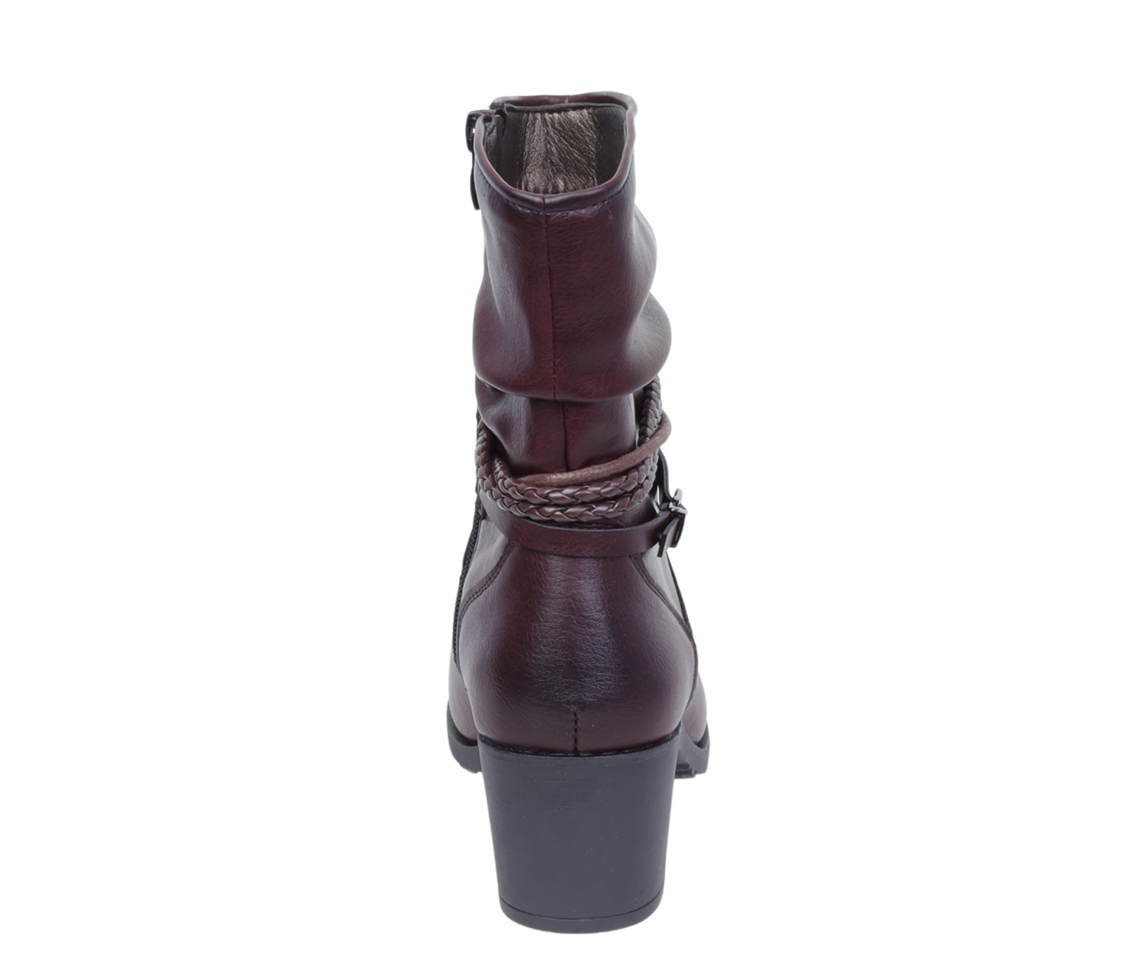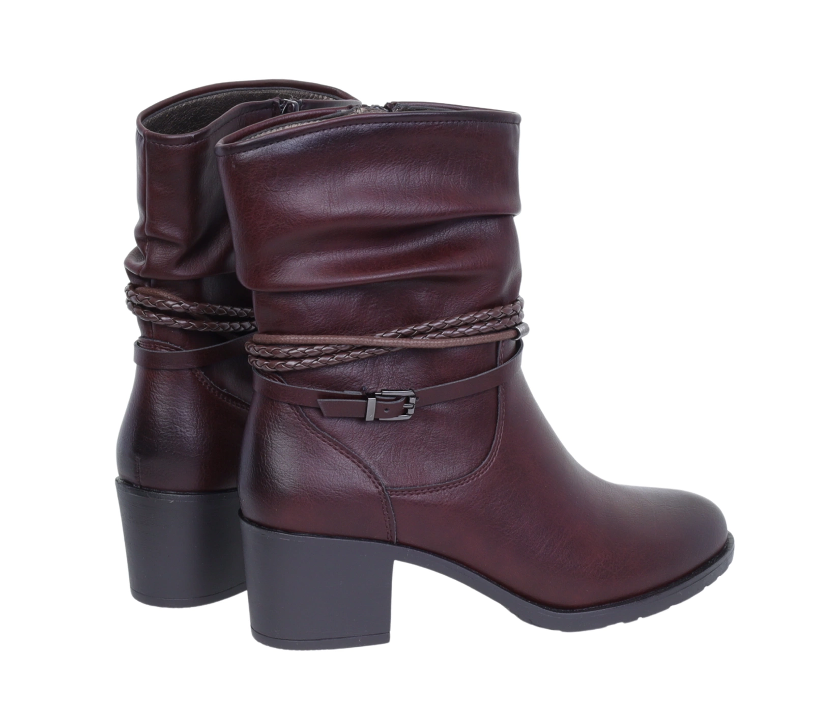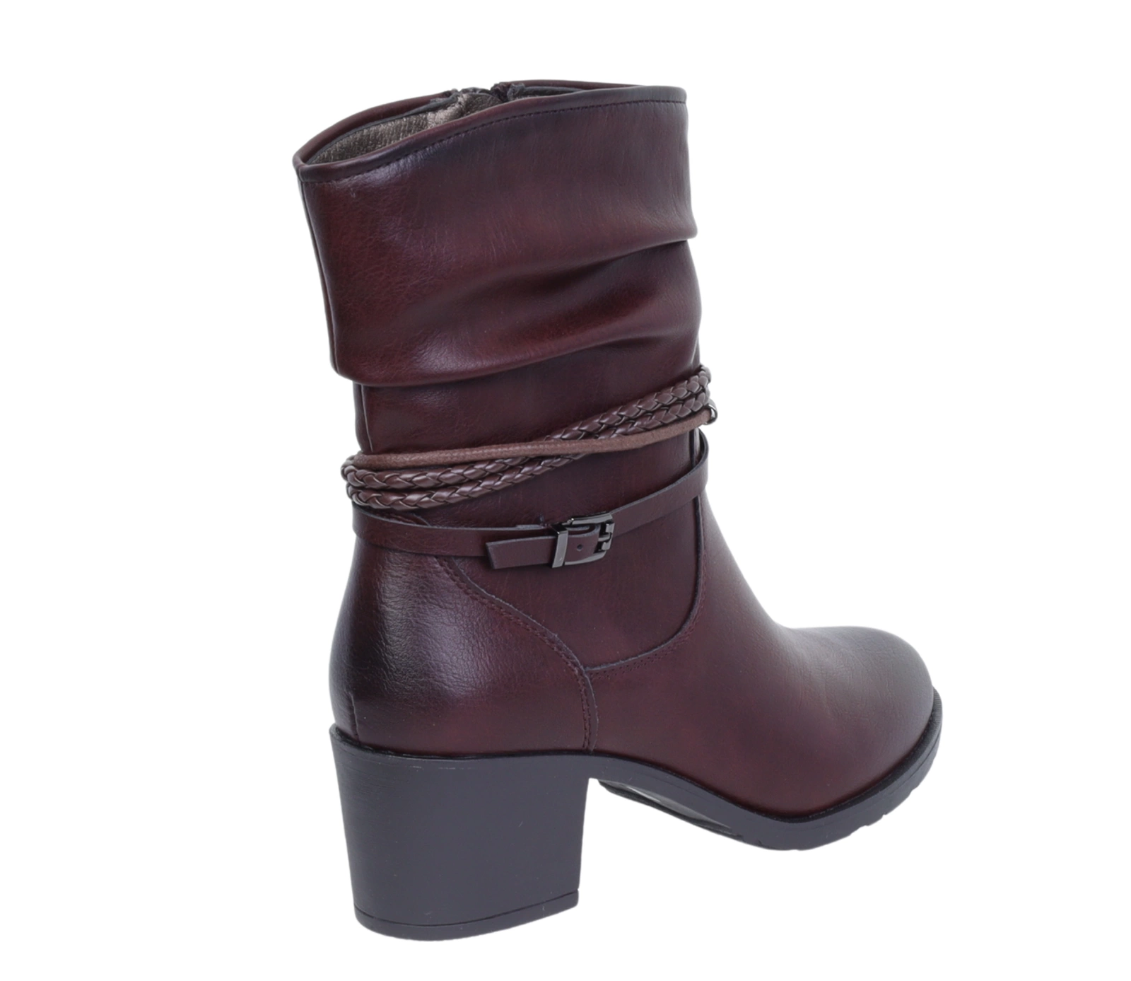 Bordowe buty zimowe damskie na obcasie ciepłe na zamek Jezzi