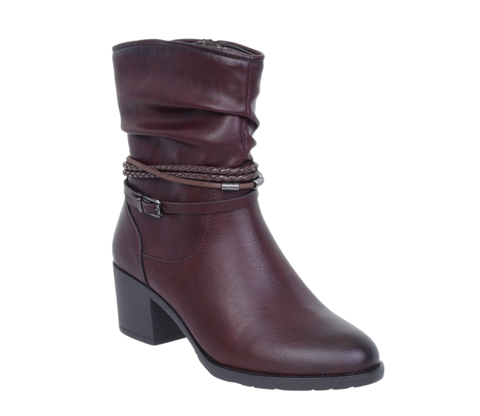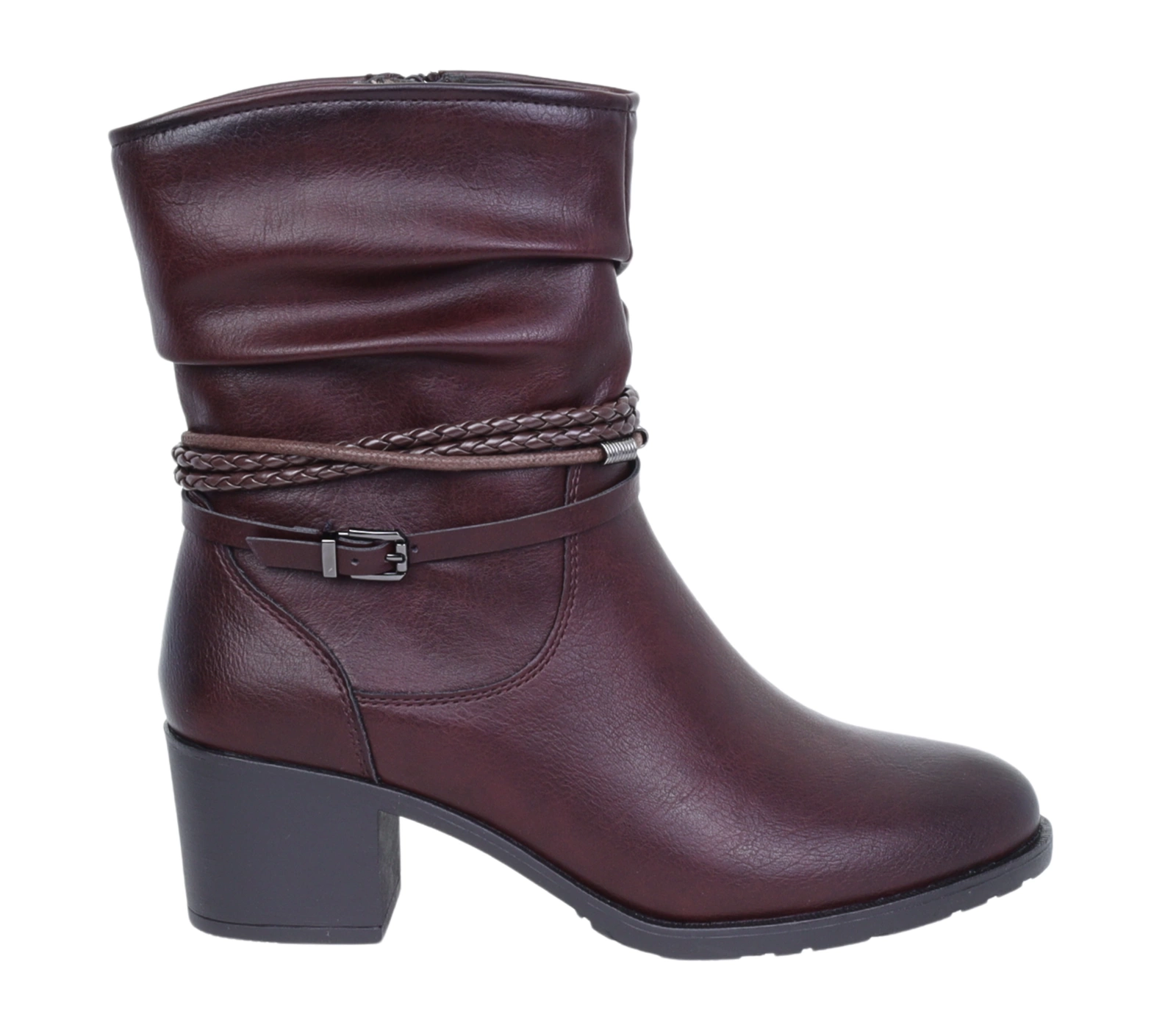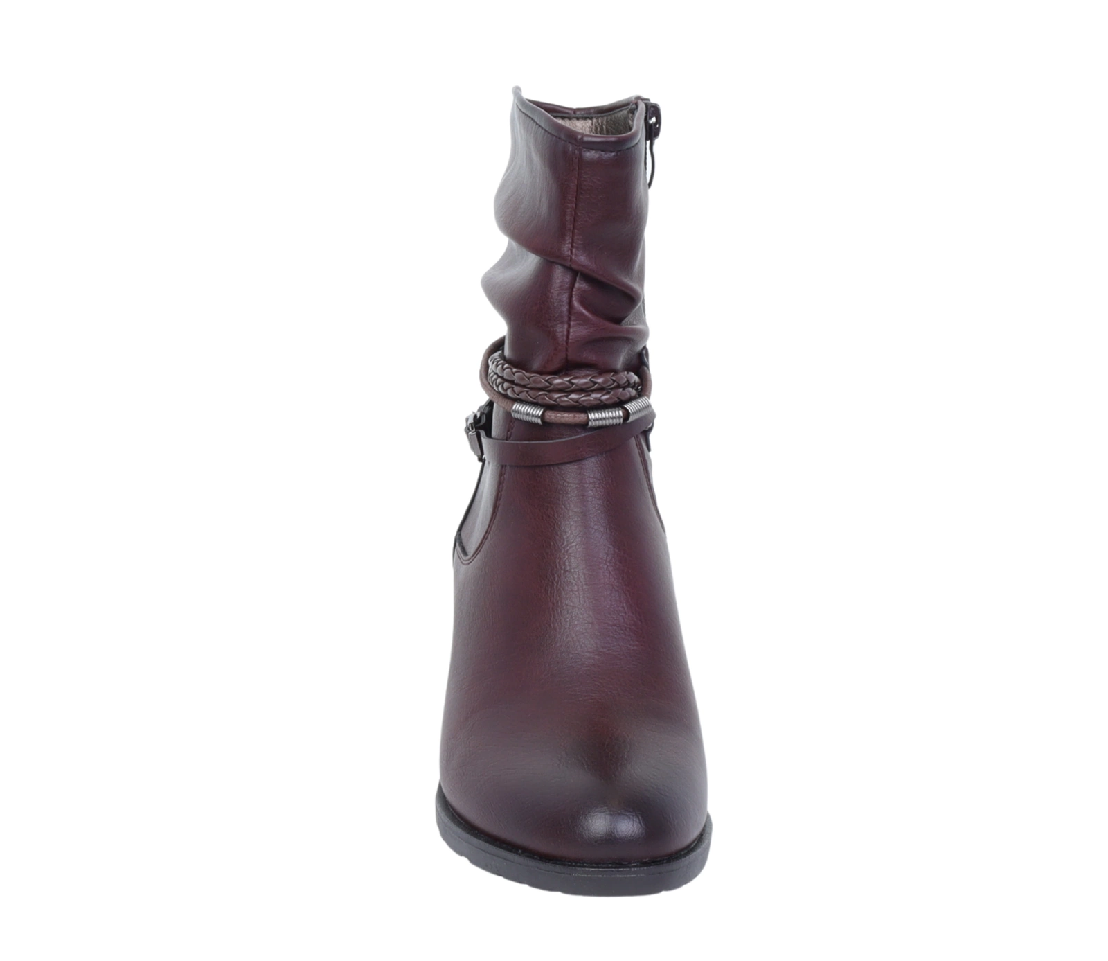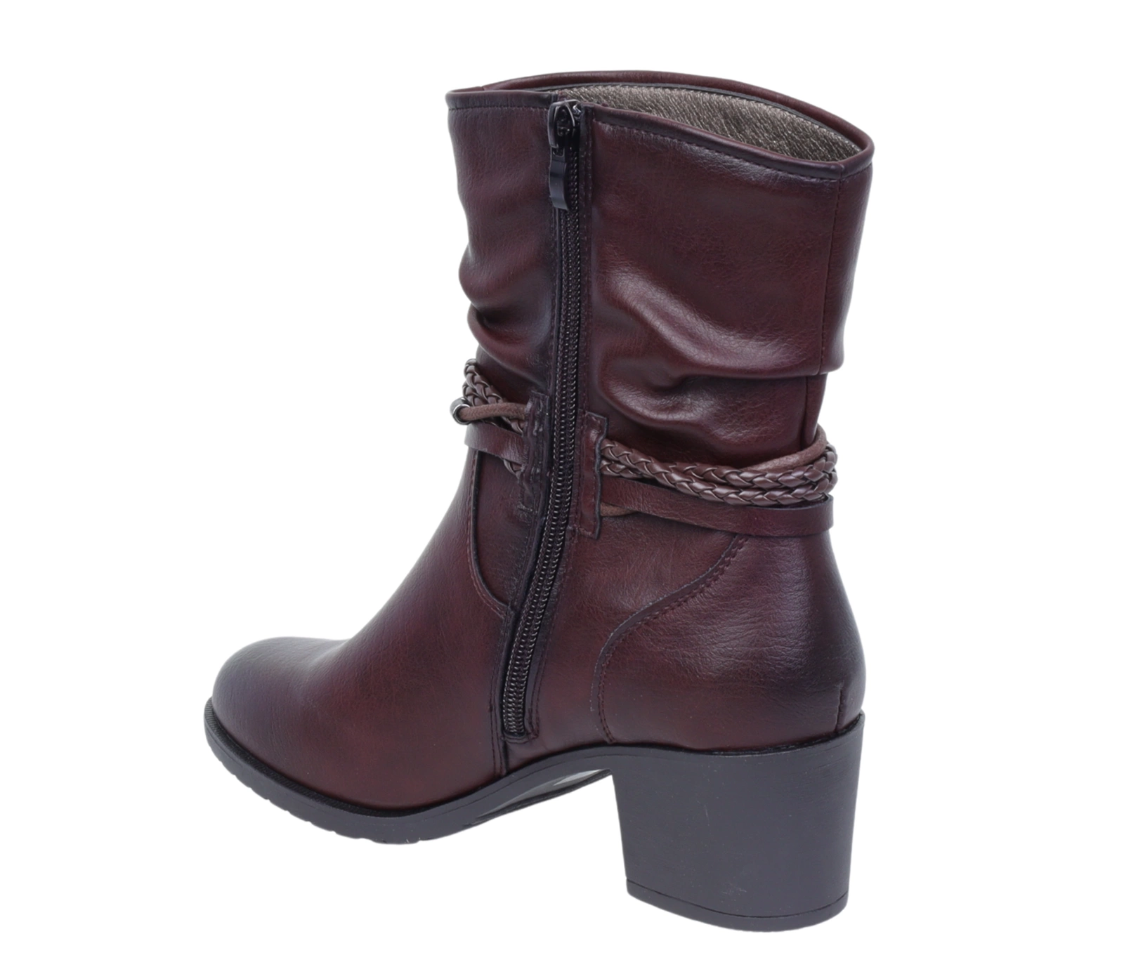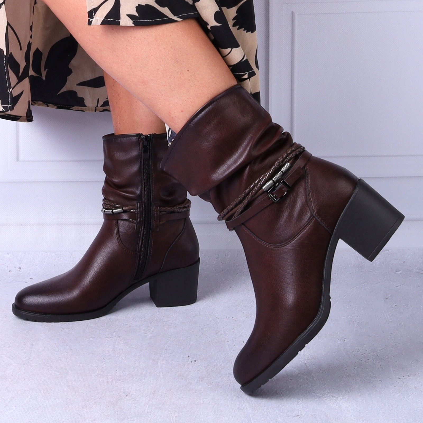Bordowe buty zimowe damskie na obcasie ciepłe na zamek Jezzi