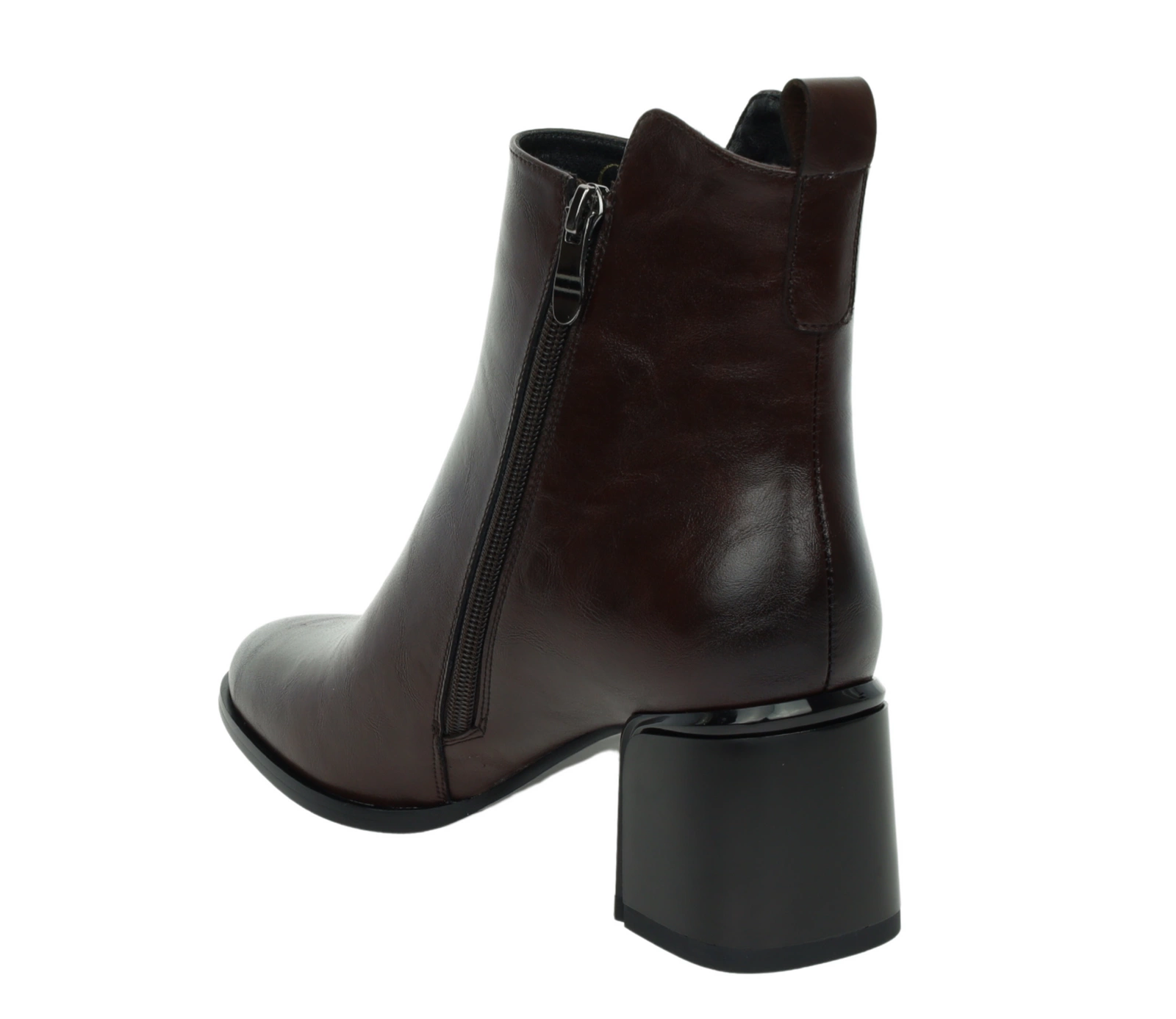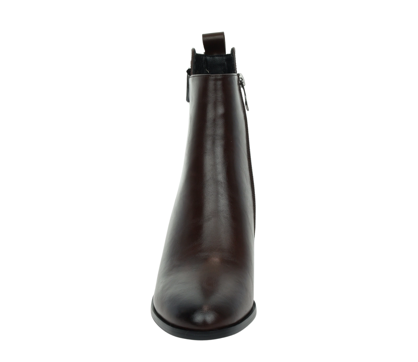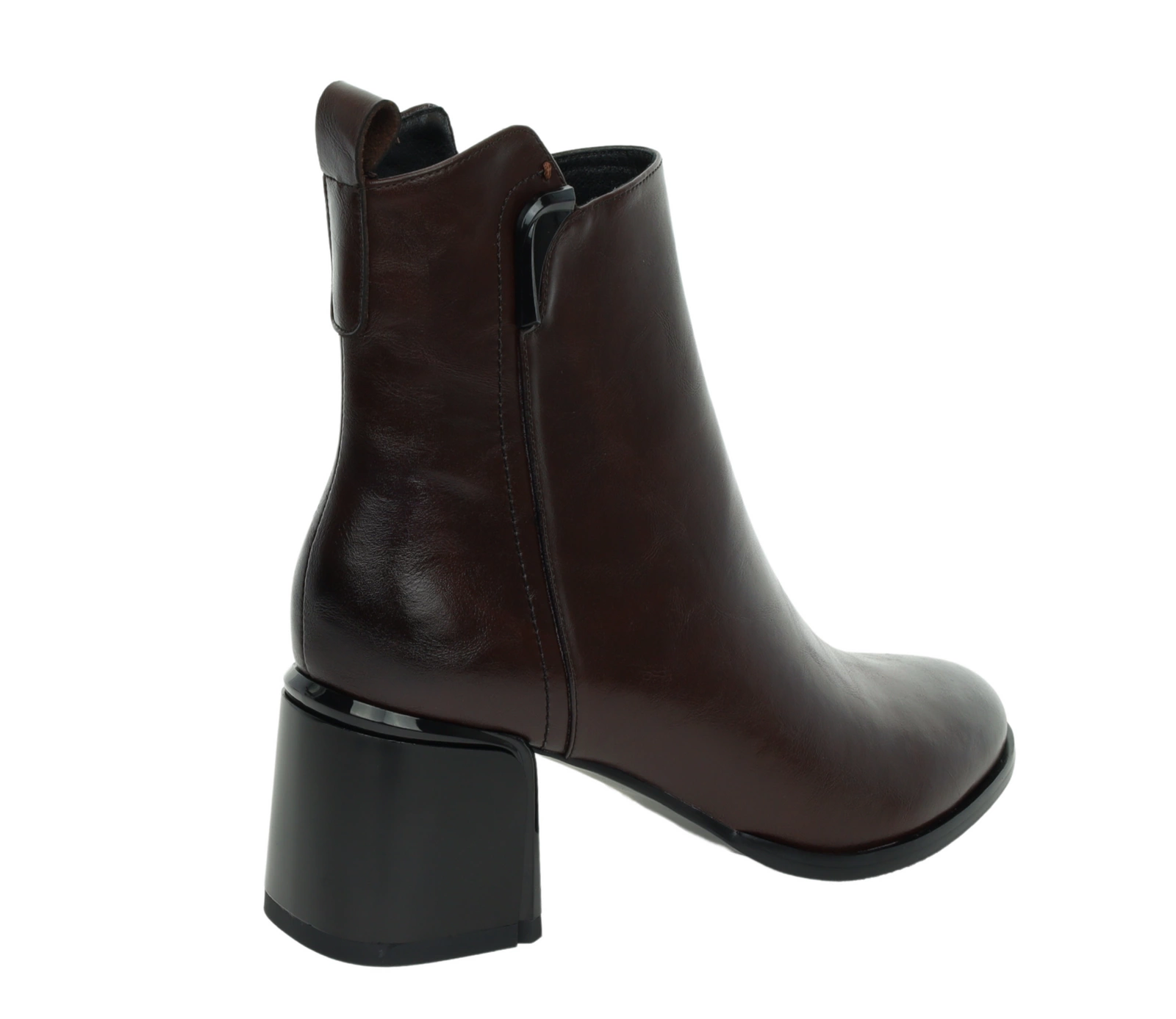 Czekoladowe botki damskie skórzane eleganckie na średnim obcasie Gino Fabiani