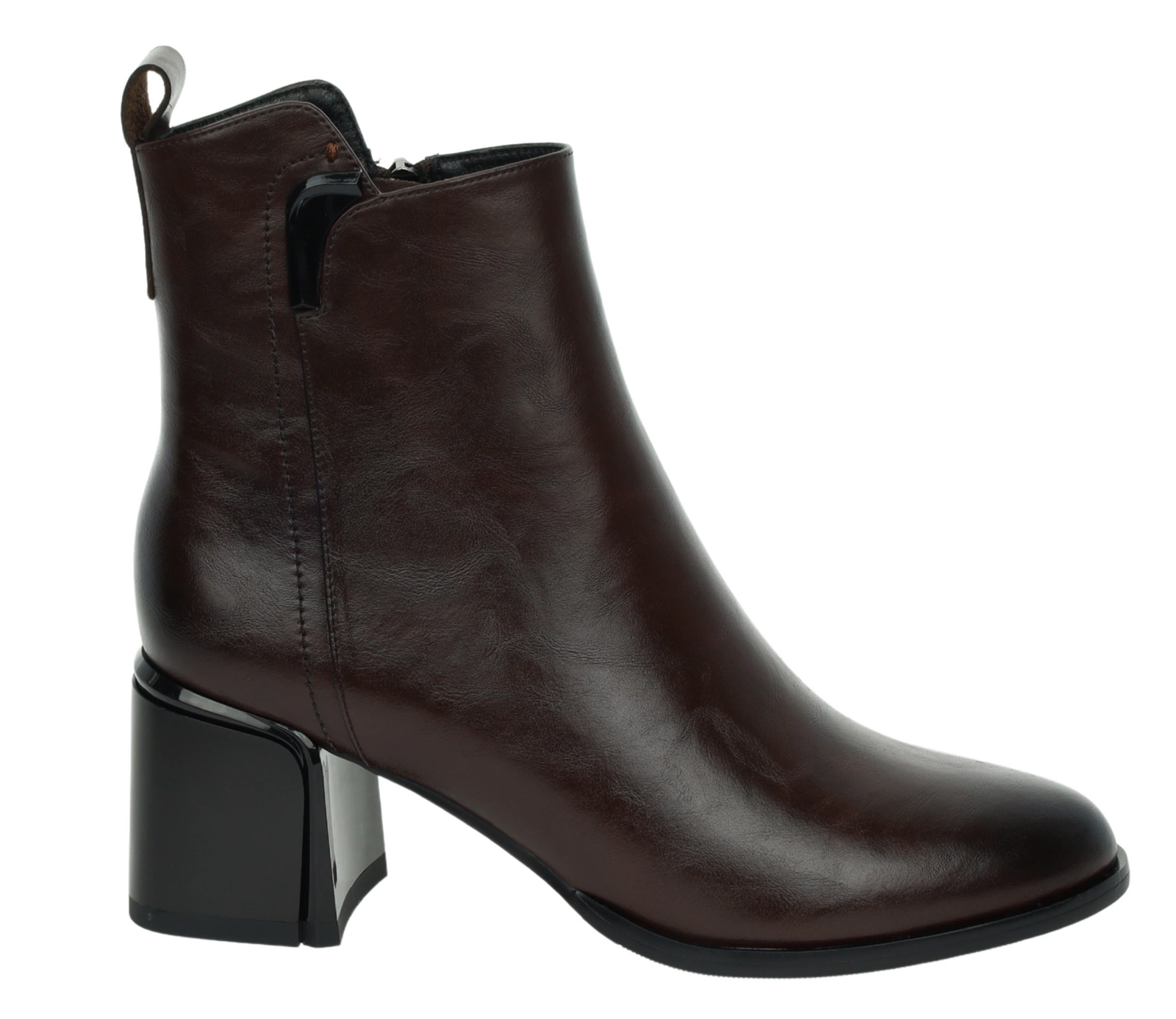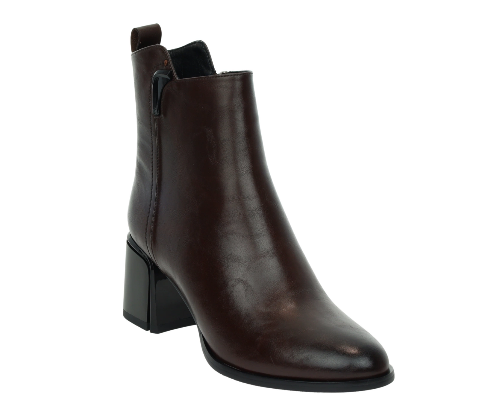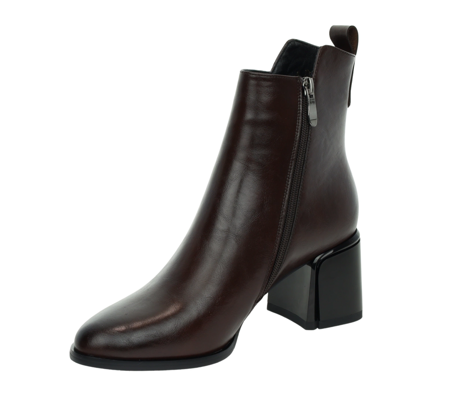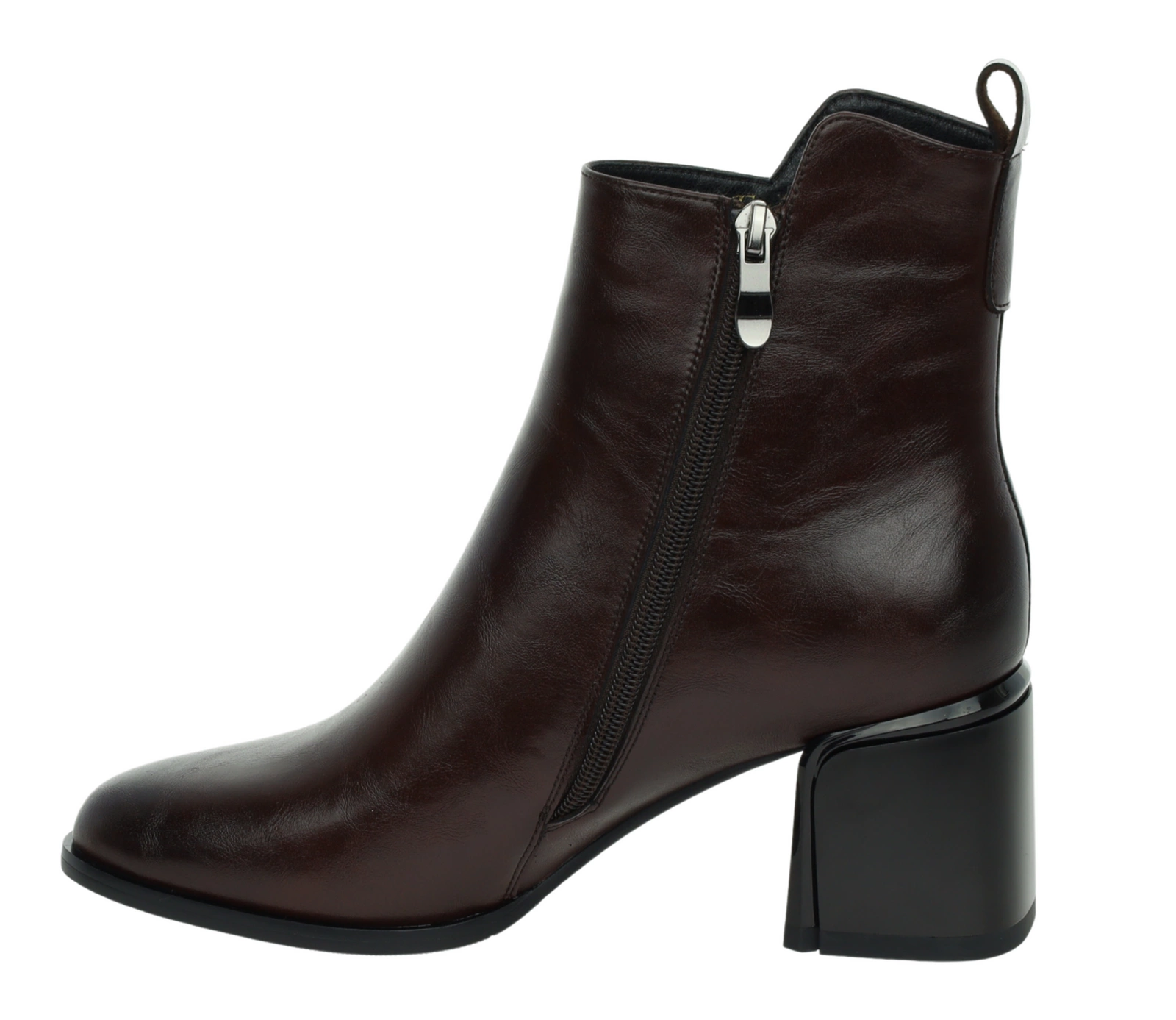 Czekoladowe botki damskie skórzane eleganckie na średnim obcasie Gino Fabiani