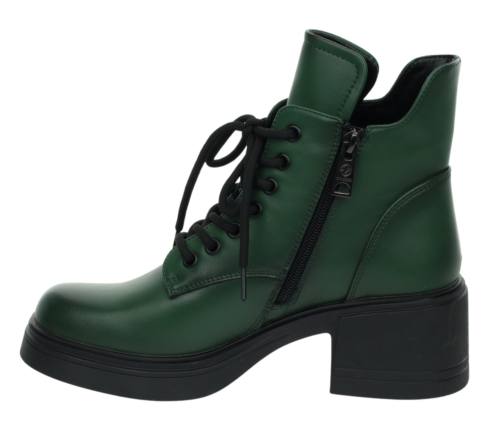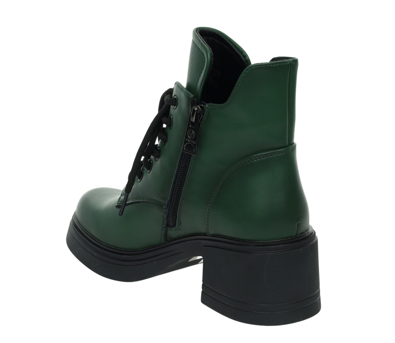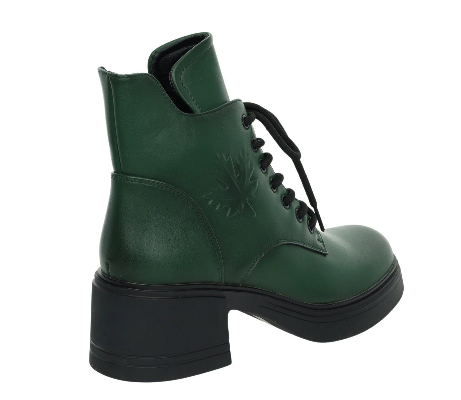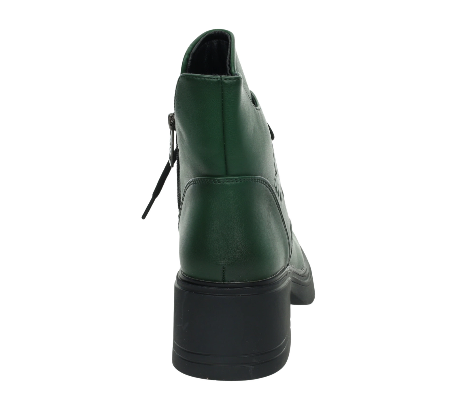 Ciemnozielone botki skórzane na średnim obcasie SEVILA