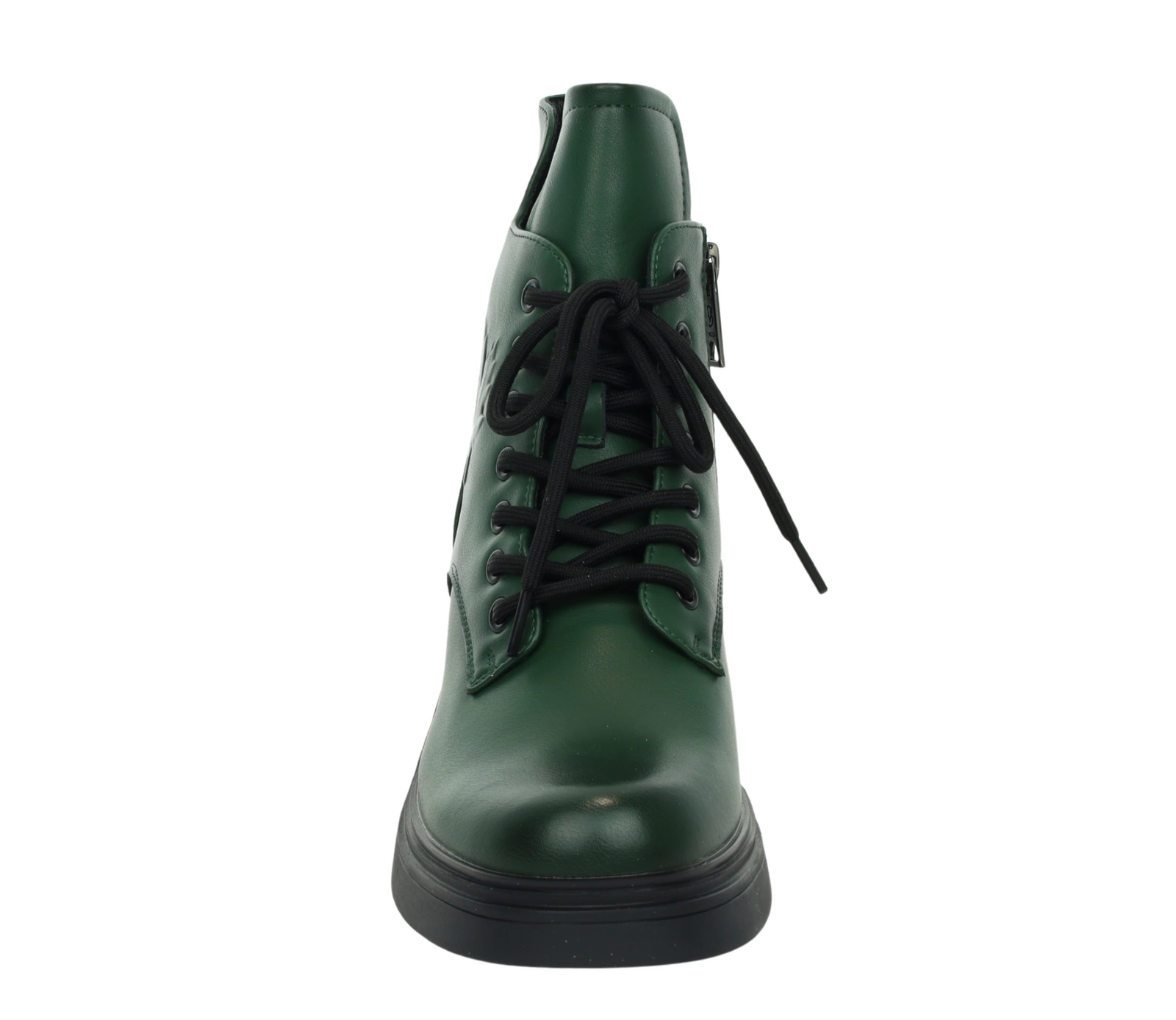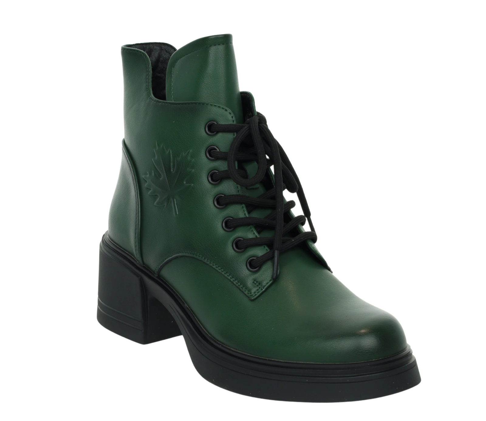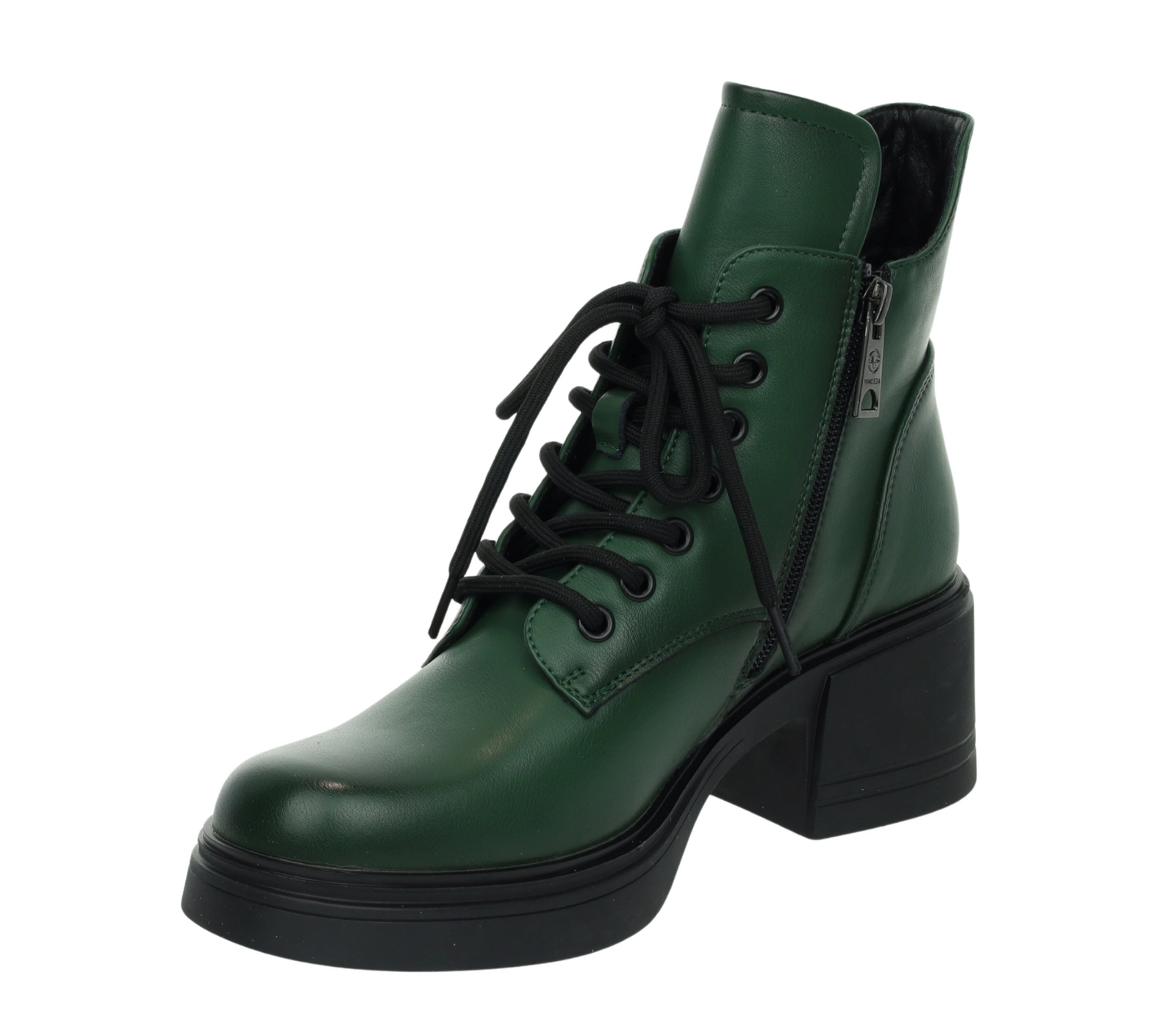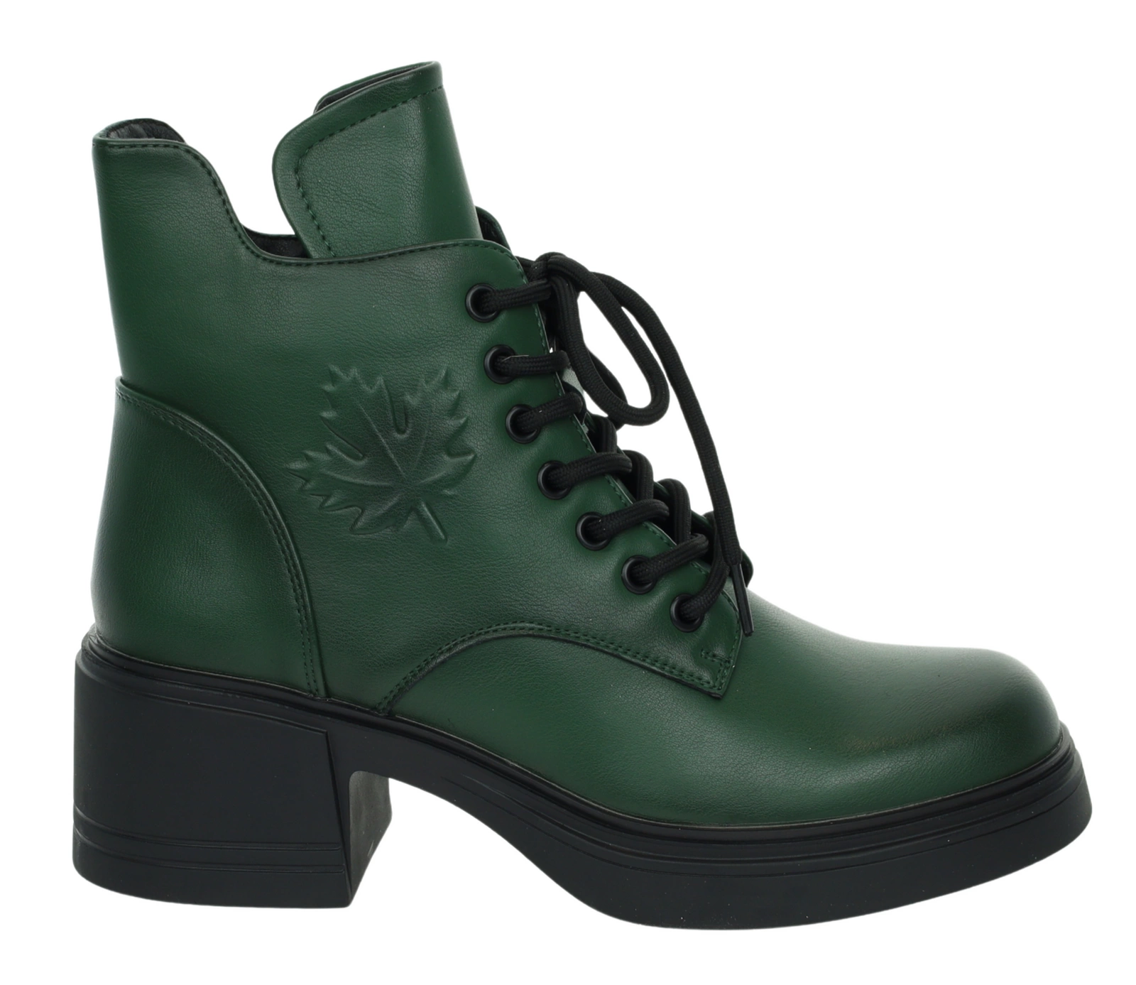Ciemnozielone botki skórzane na średnim obcasie SEVILA