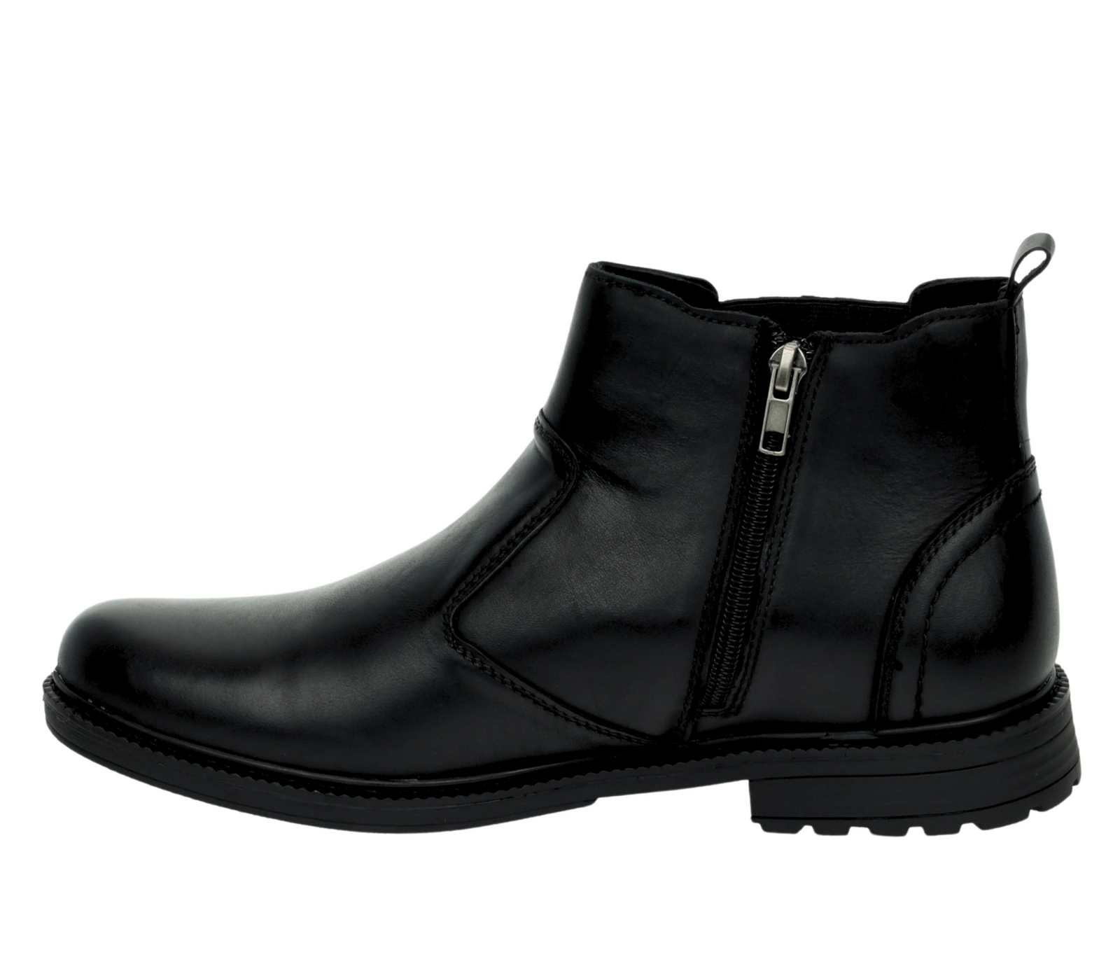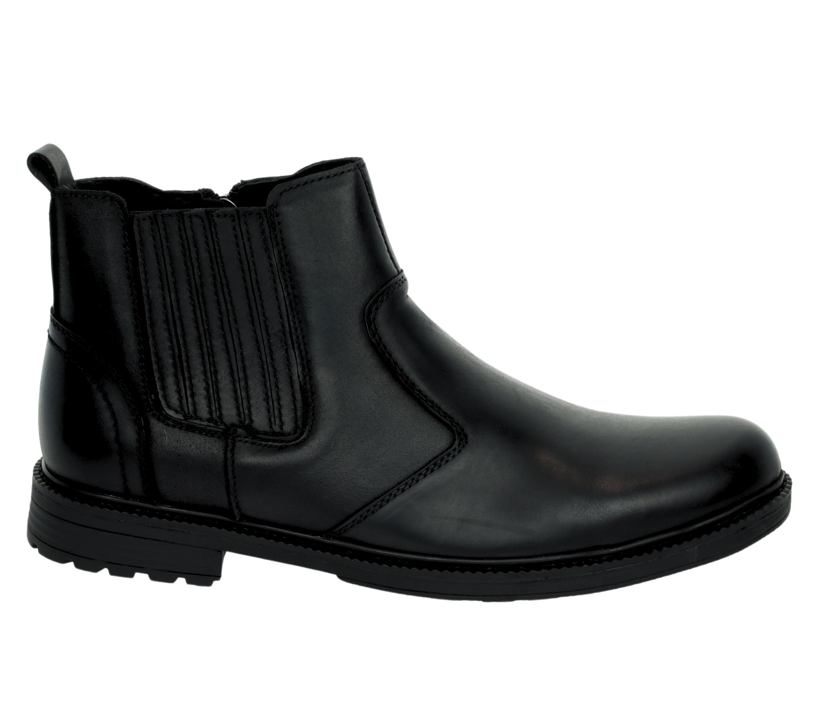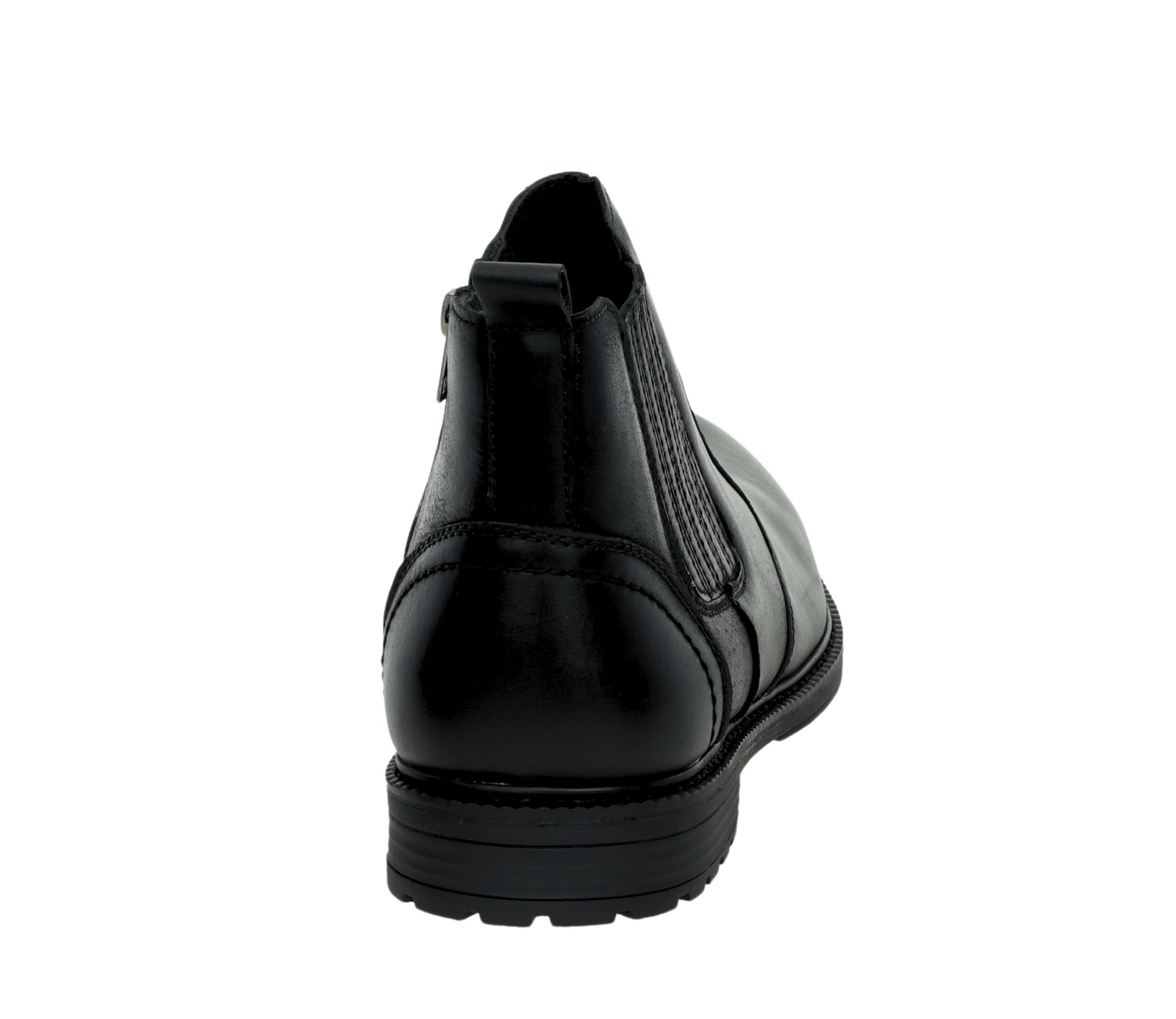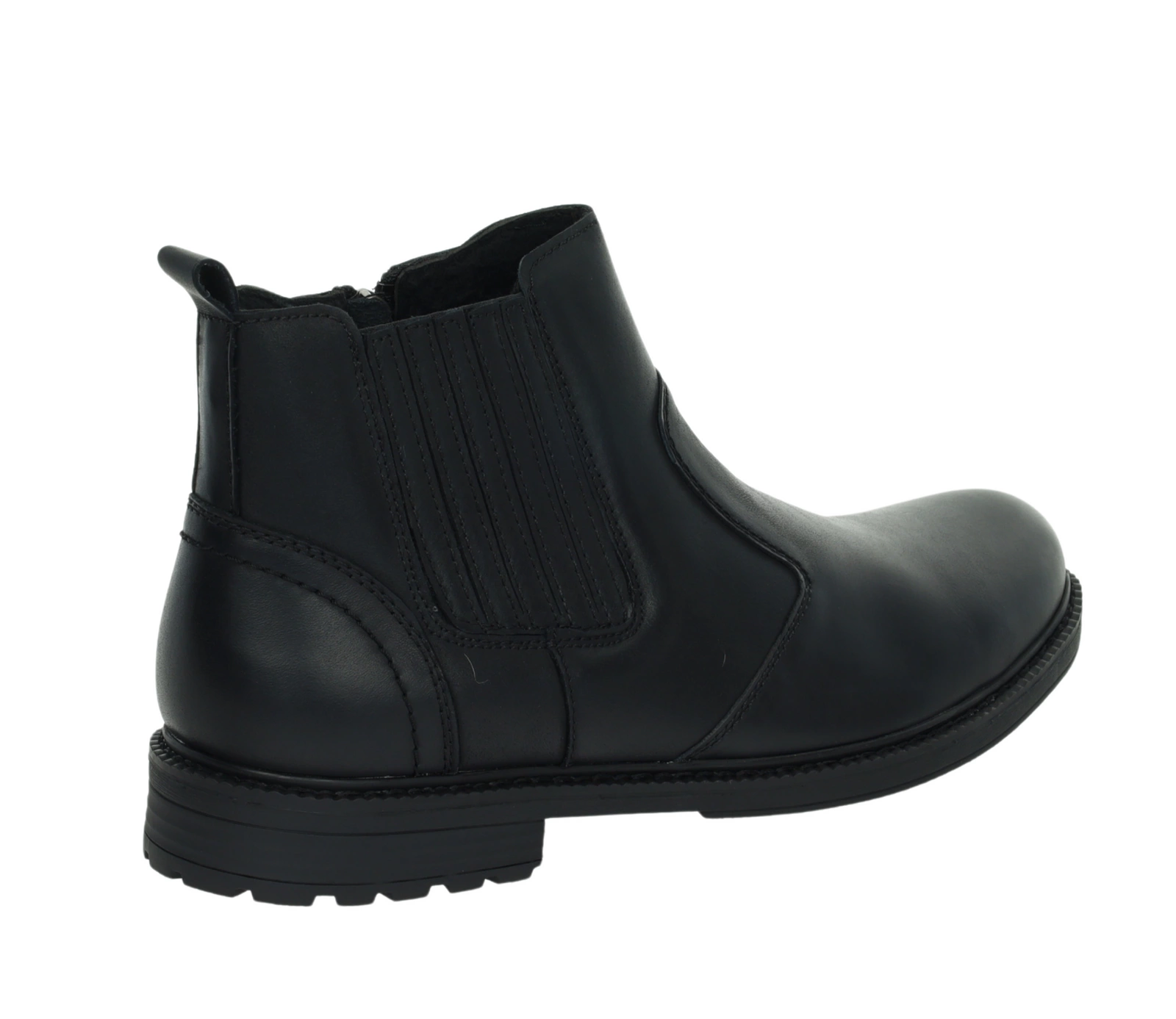 Eleganckie buty zimowe męskie wyposażone są w solidną, antypoślizgową podeszwę, która zapewnia pewność kroku na śliskich nawierzchniach. Wysoka cholewka dodatkowo chroni kostkę, zapewniając ciepło i stabilność nawet w trudniejszych warunkach pogodowych.