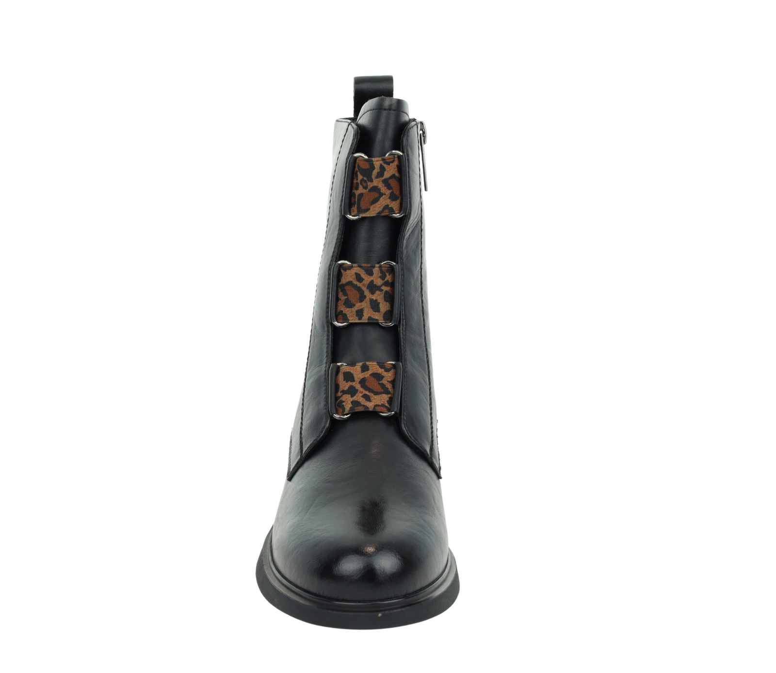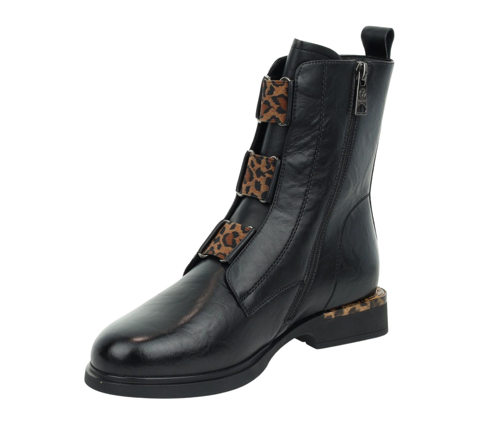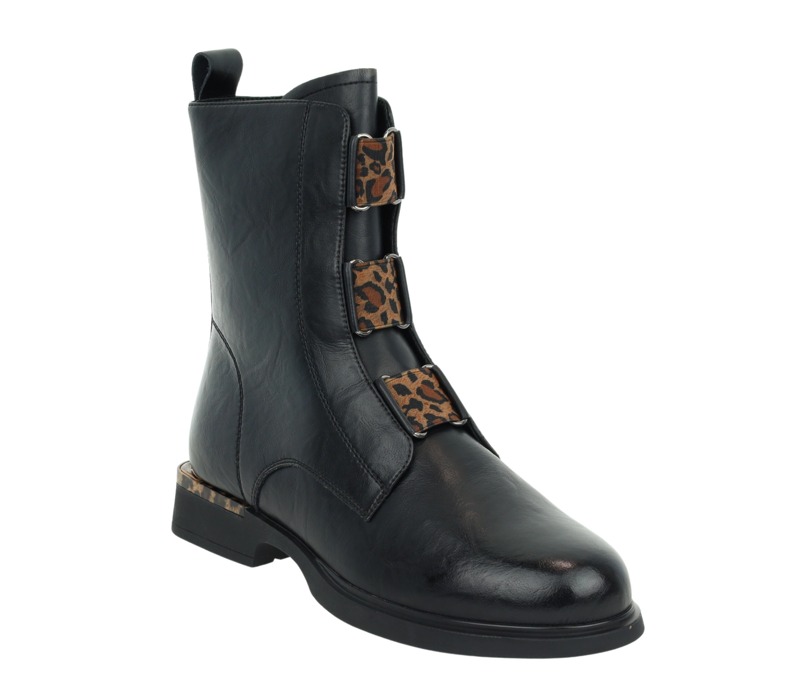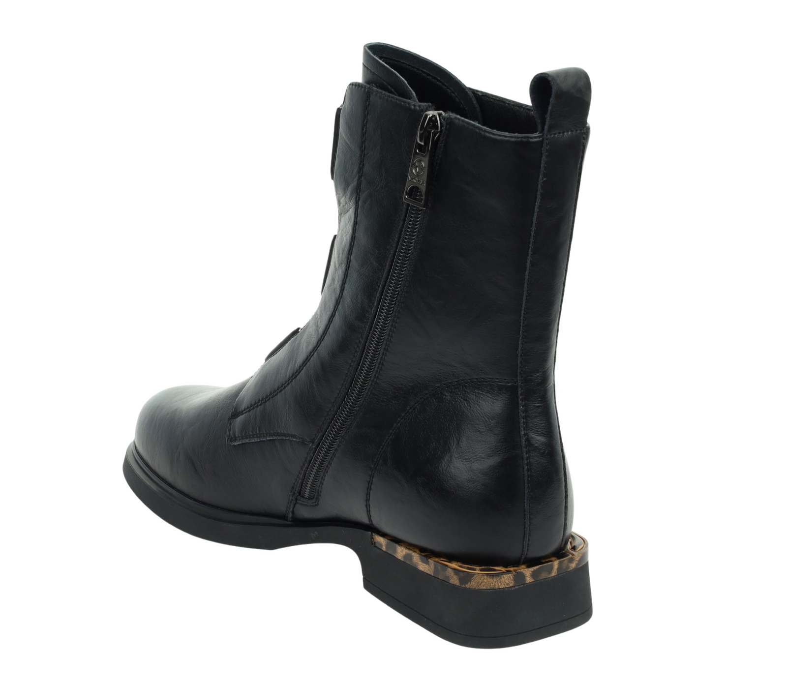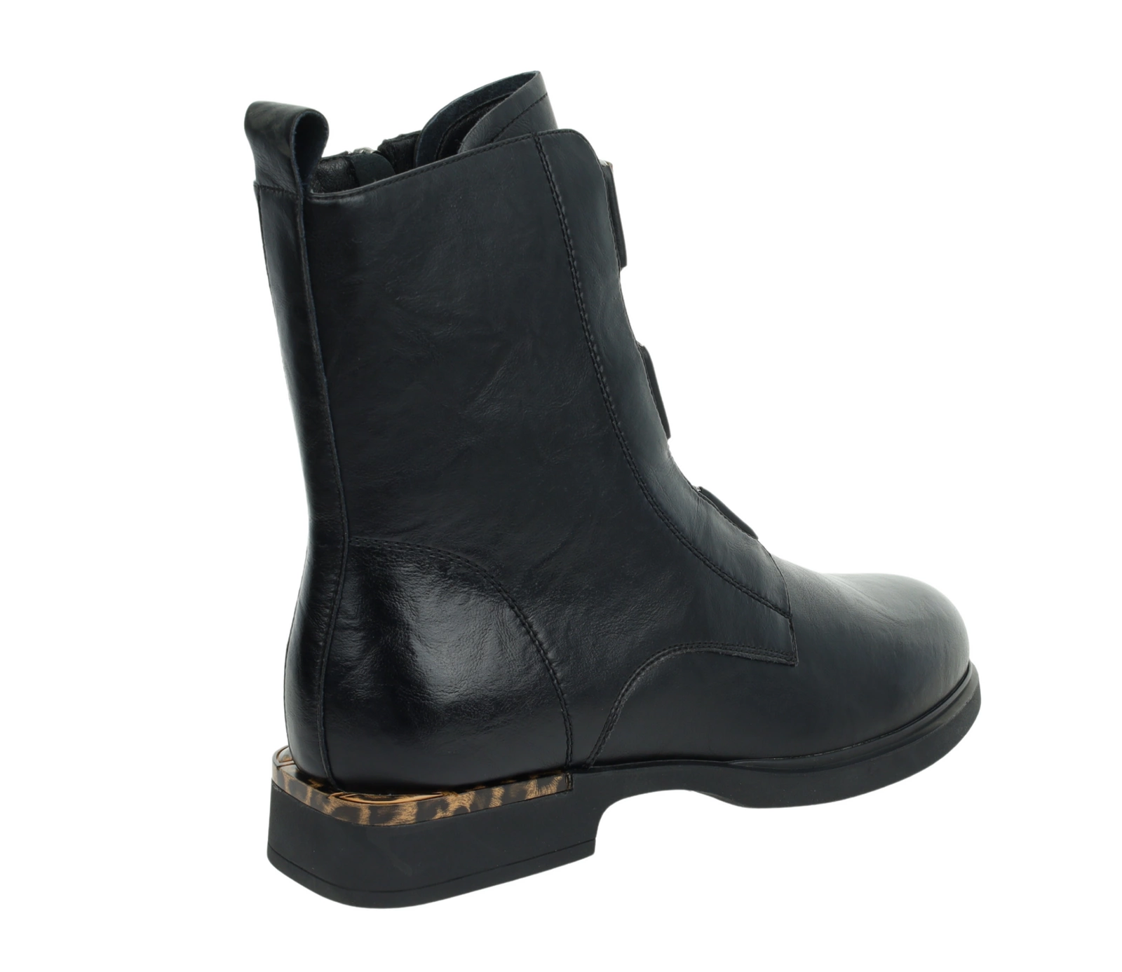 Czarne botki damskie płaskie ze skóry naturalnej z elementami panterki VINCEZA