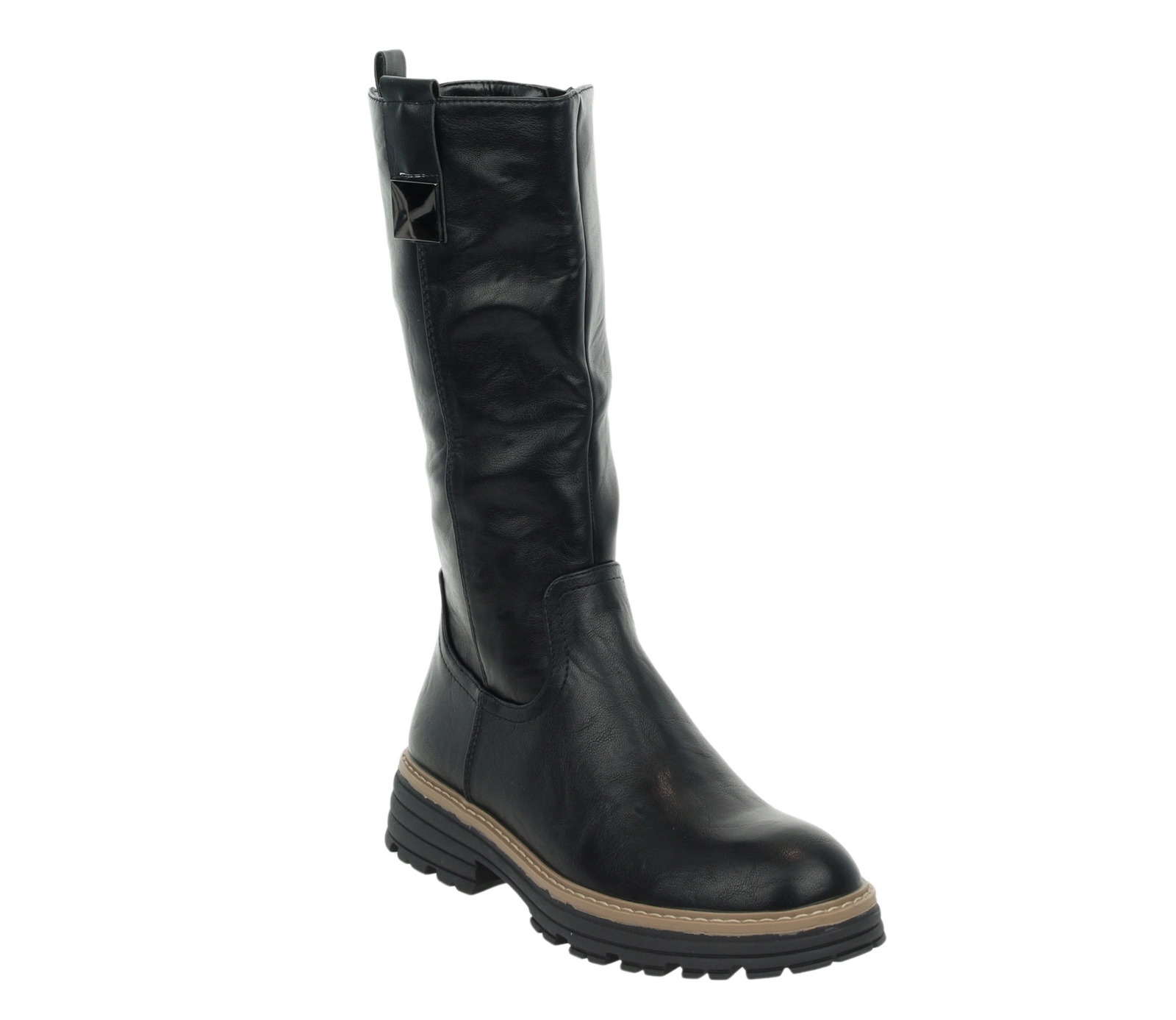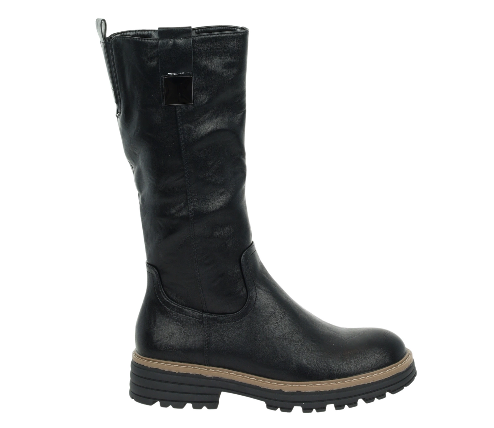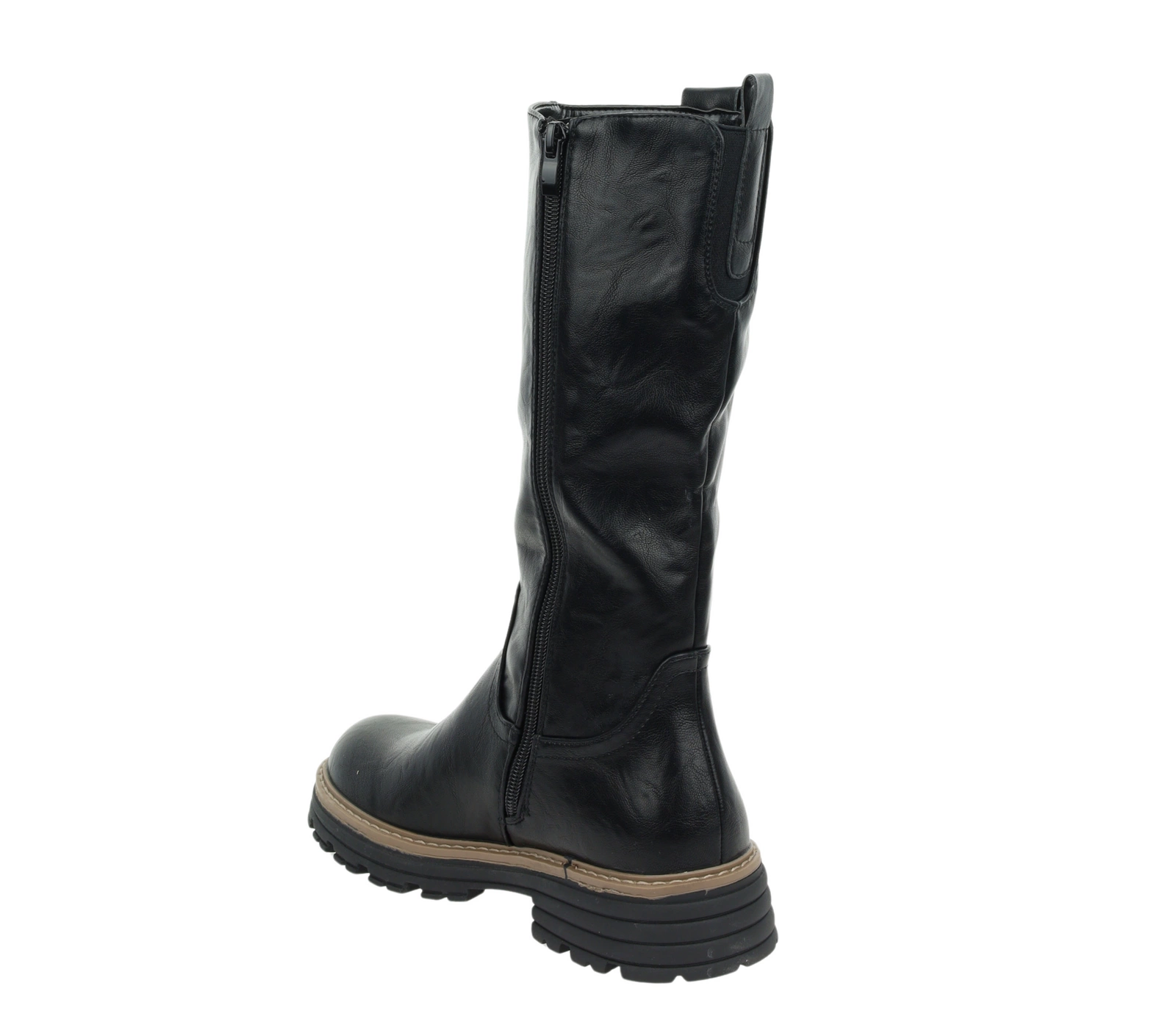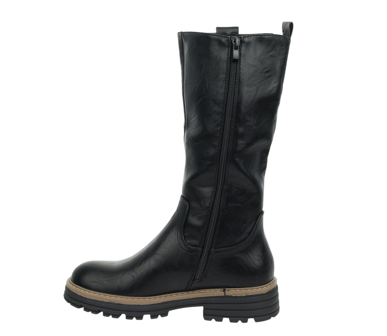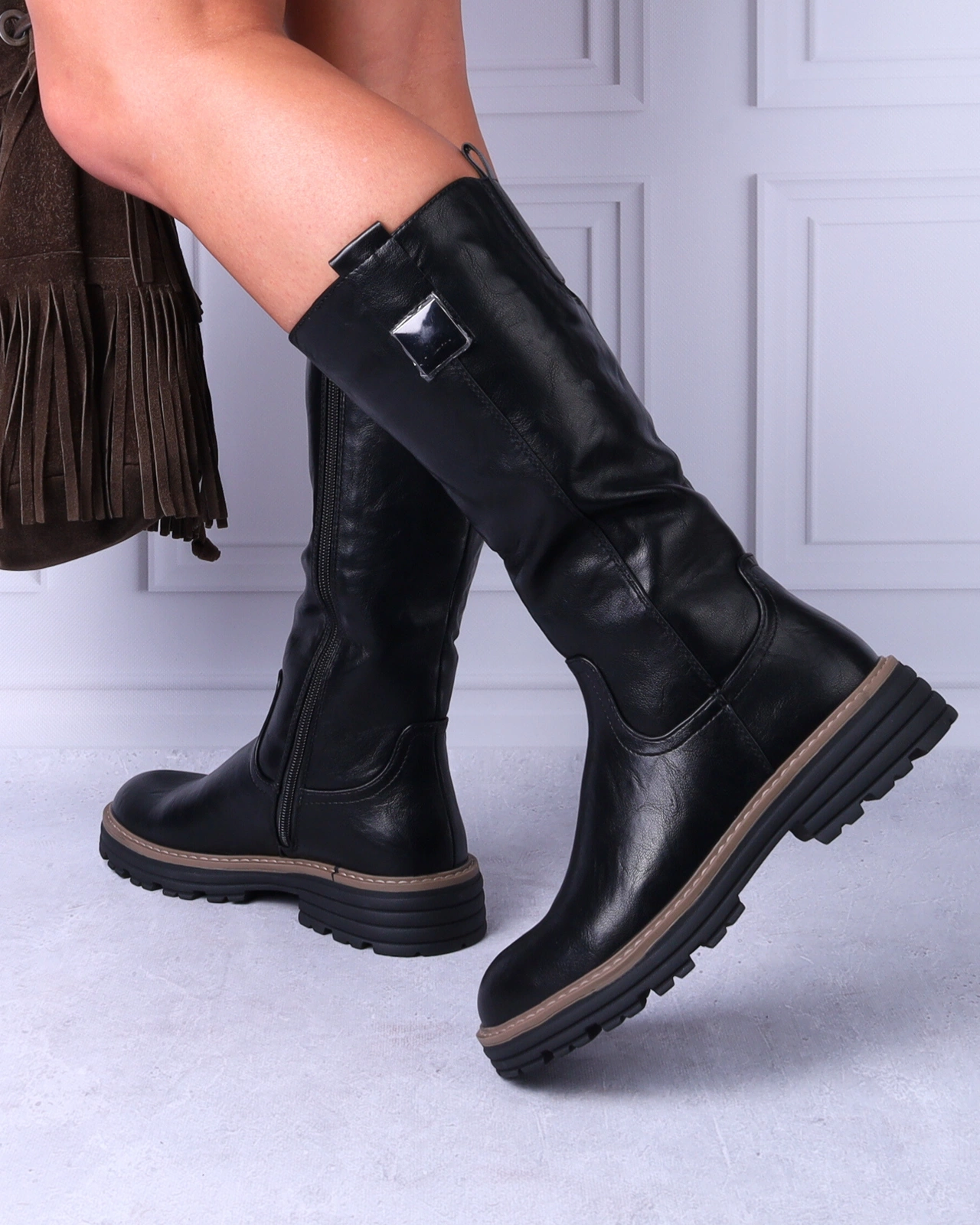 Czarne glany damskie ocieplane botki do połowy łydki Jezzi