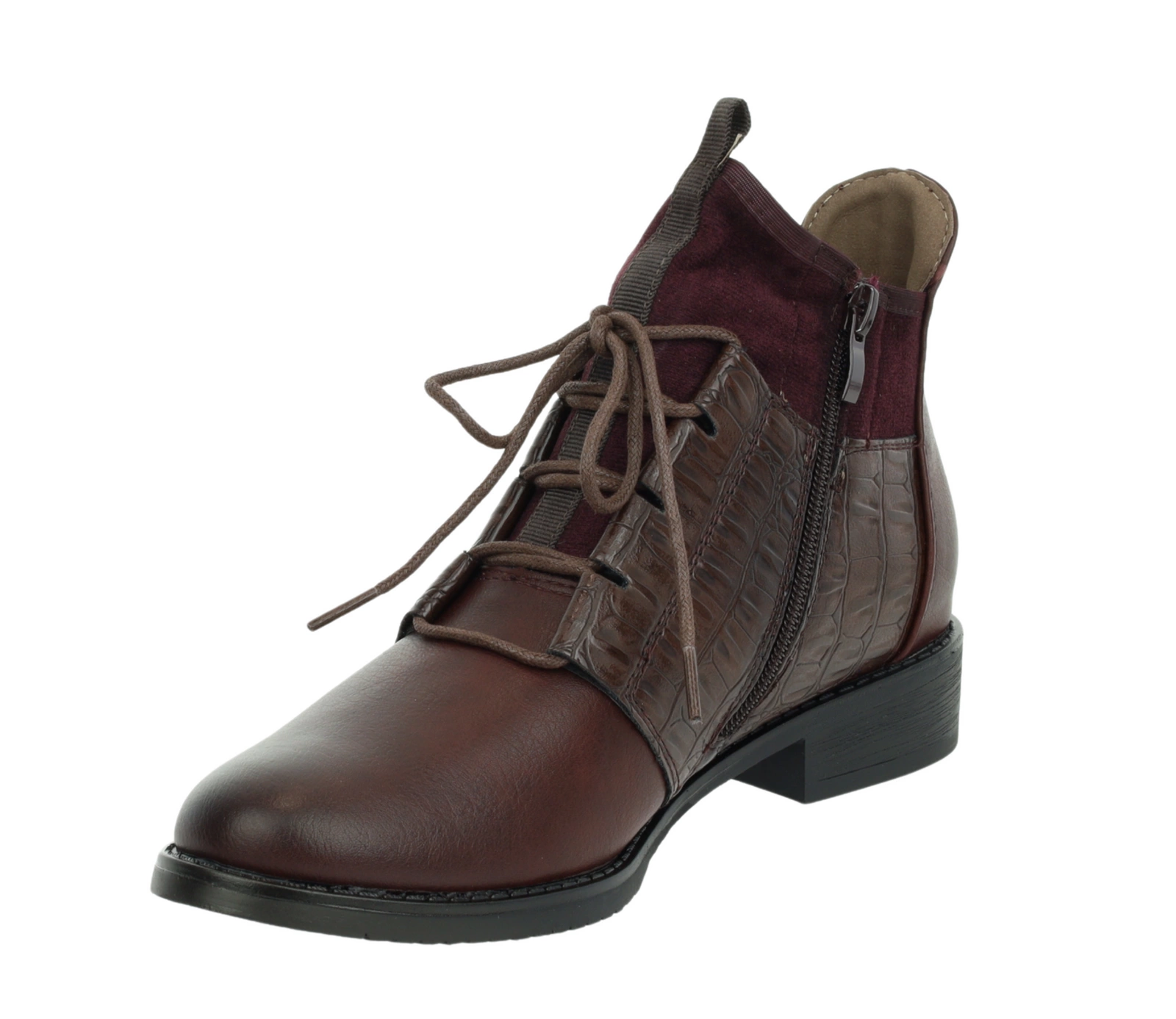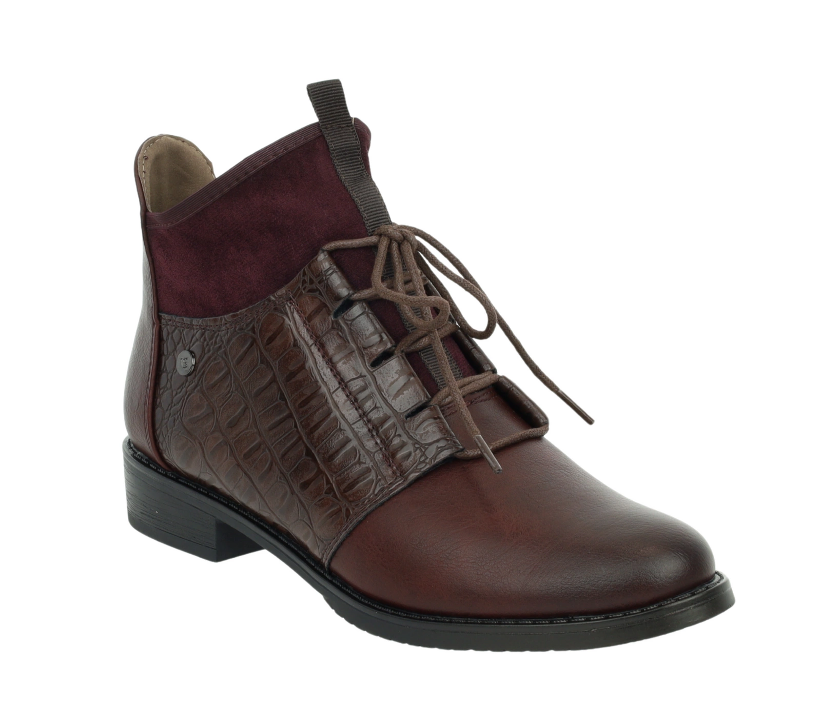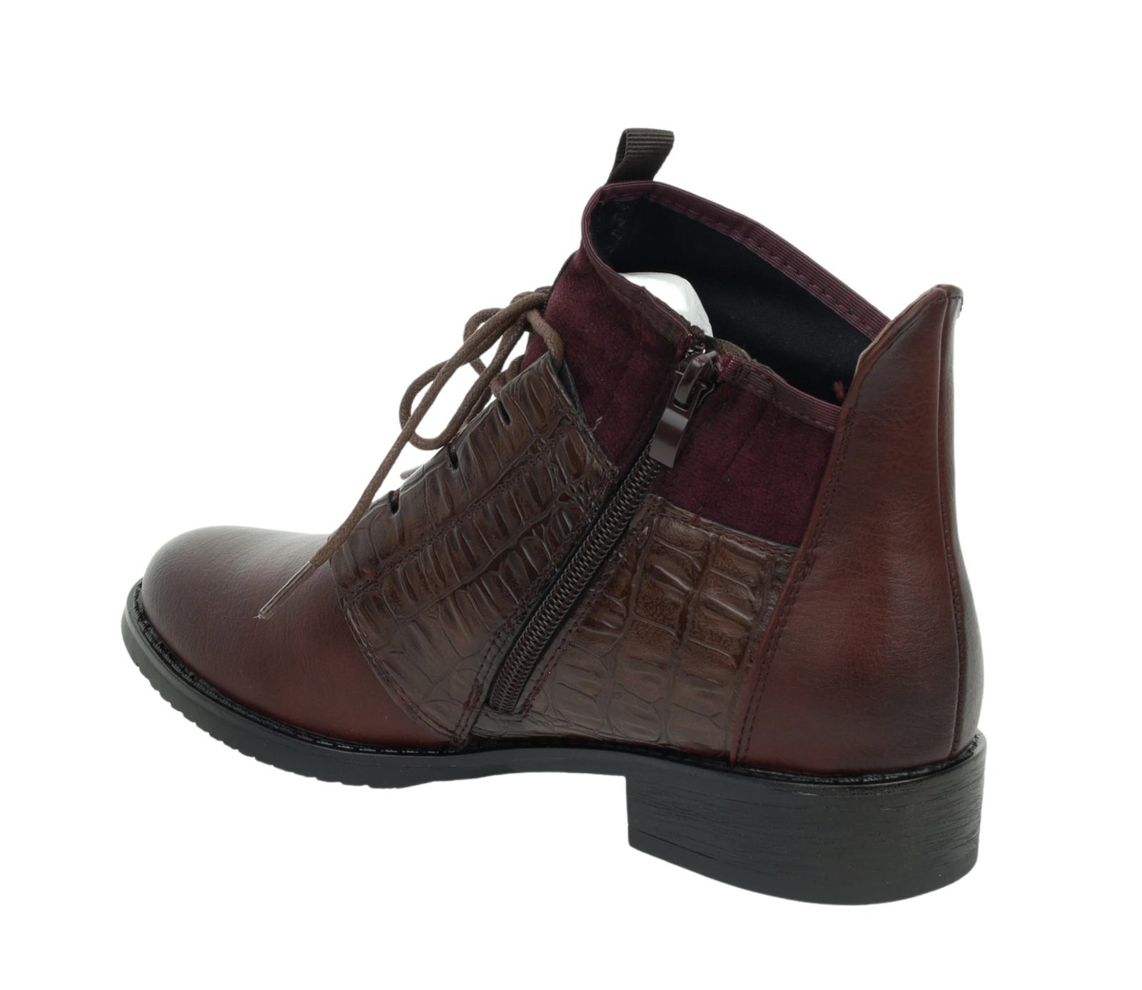 Eleganckie bordowe botki jesienne ocieplane płaskie buty Jezzi