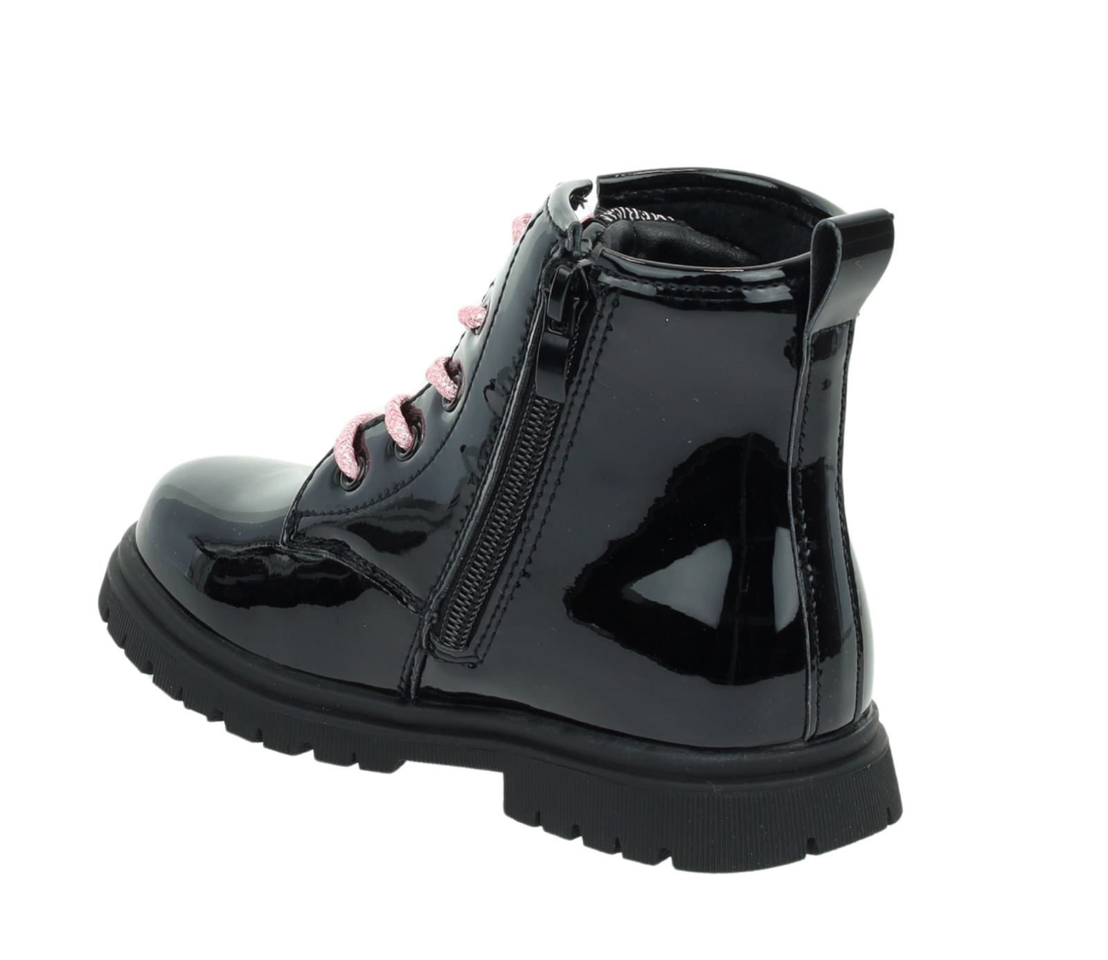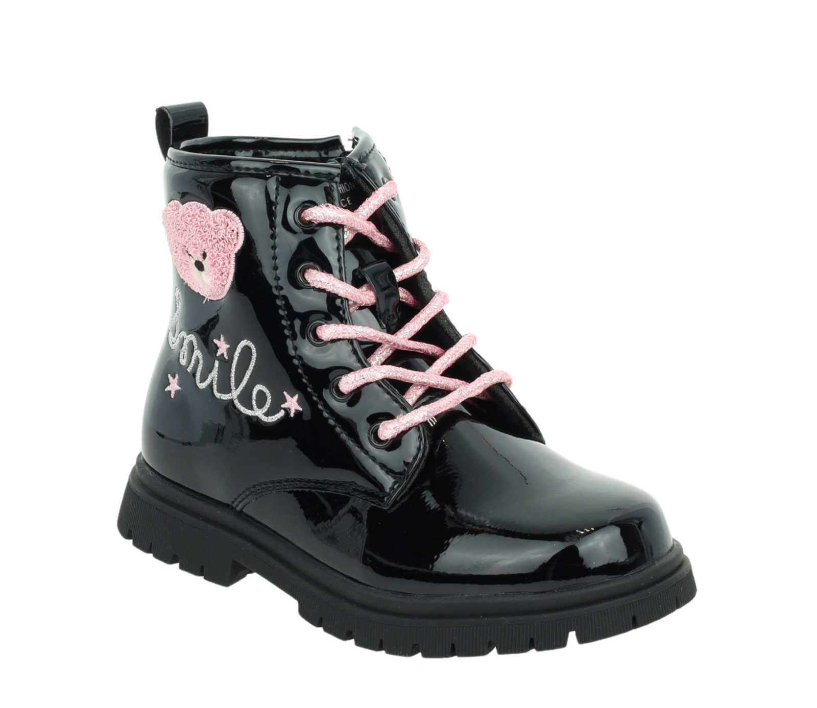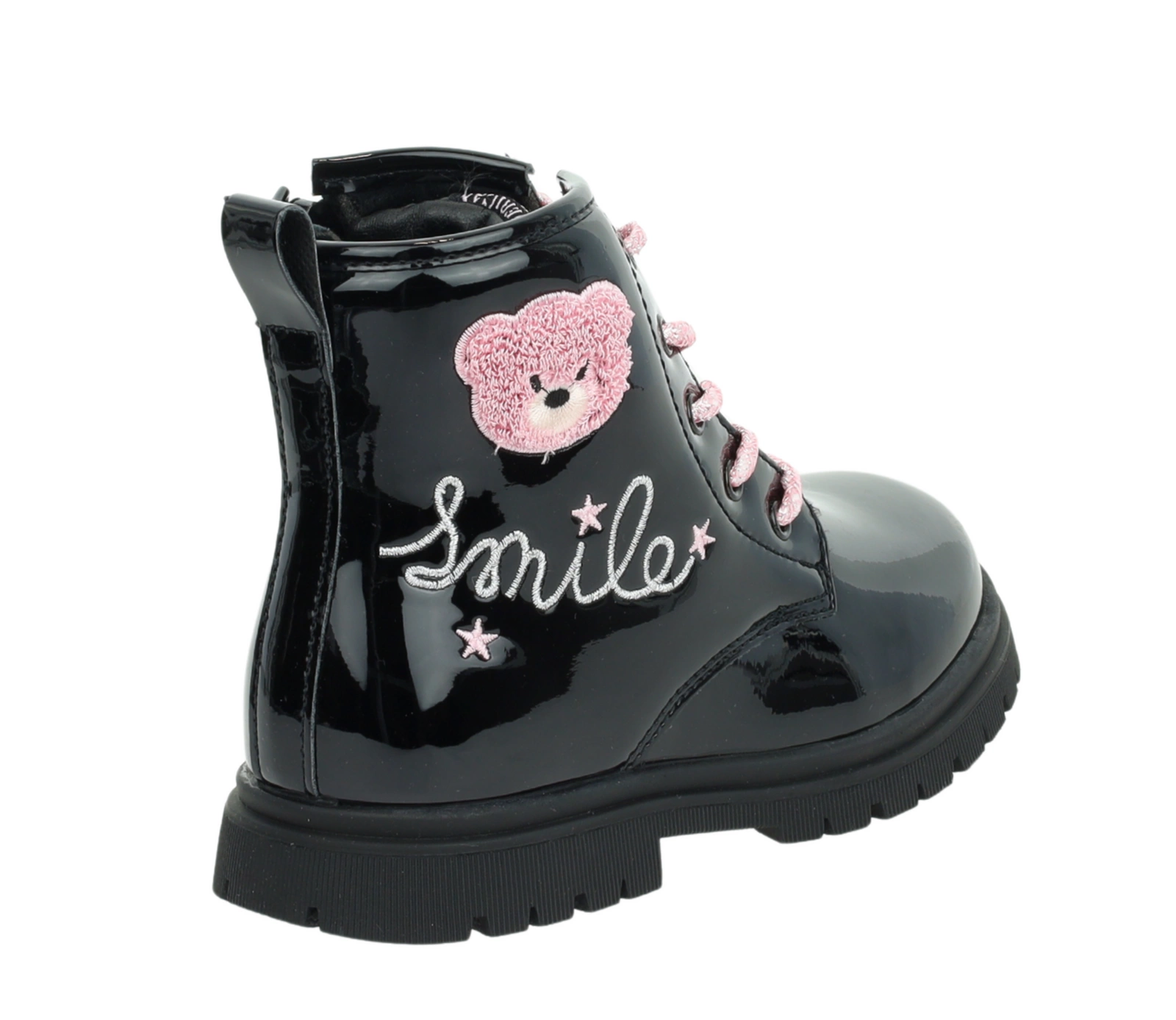 Lakierowane buty zimowe czarne dla dziewczynki botki zimowe na zamek z misiem