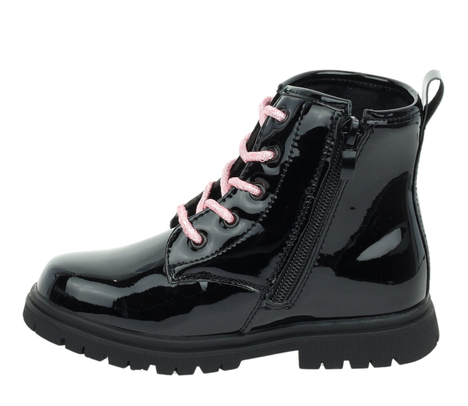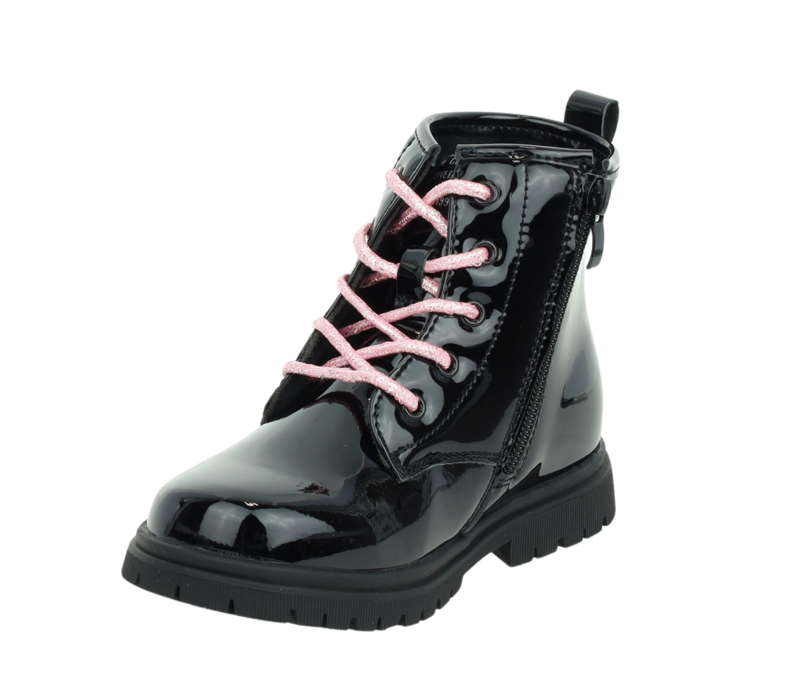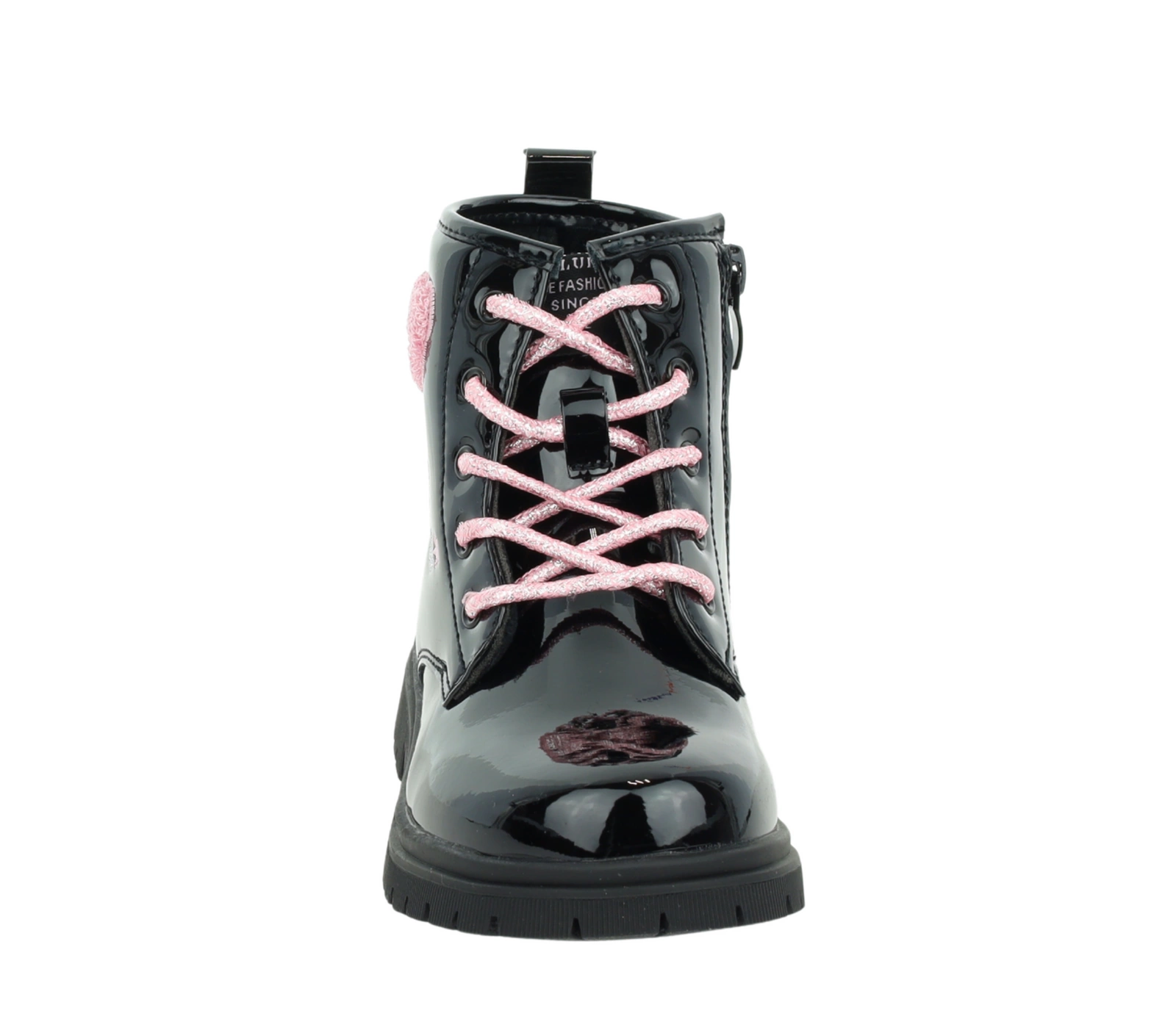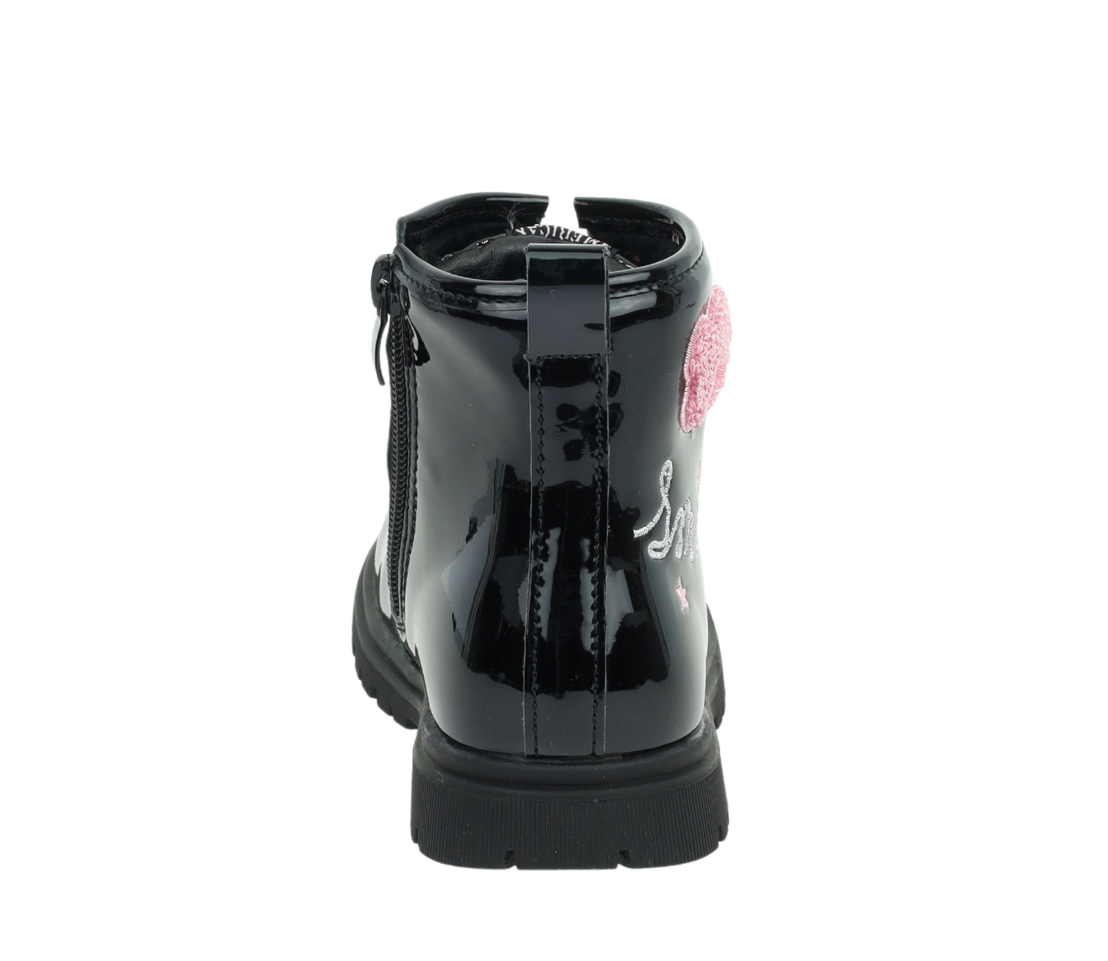 Lakierowane buty zimowe czarne dla dziewczynki botki zimowe na zamek z misiem