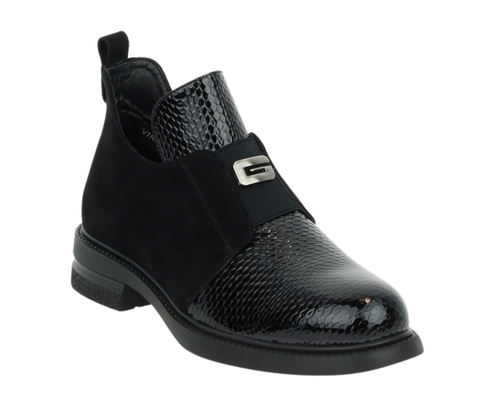 Czarne eleganckie botki niskie na zamek garniturowe ocieplane VINCEZA